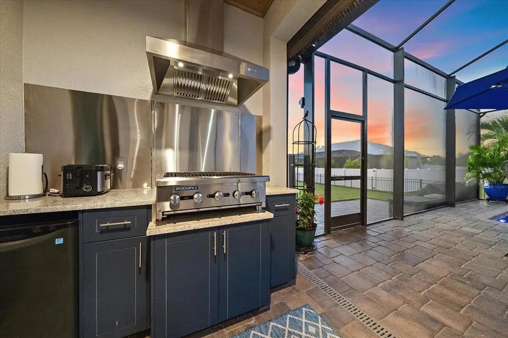 - Exterior FeaturesIrrigation System, Lighting, Outdoor Kitchen, Private Yard, Sliding Doors