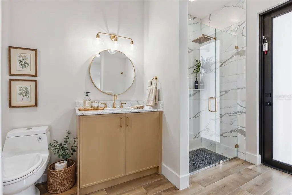 - Exterior FeaturesOutdoor Grill, Outdoor Kitchen, Outdoor Shower, Rain Gutters, Sliding Doors