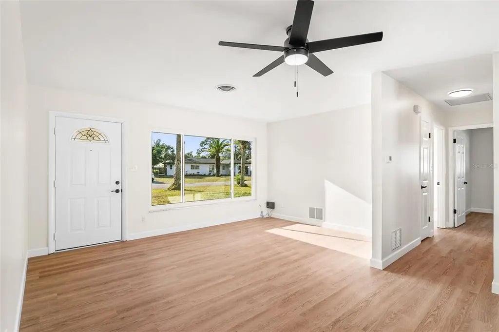 - Interior FeaturesCeiling Fan(s), Eating Space In Kitchen, Kitchen/Family Room Combo, L Dining, Living Room/Dining Room Combo, Open Floorplan, Primary Bedroom Main Floor, Solid Wood Cabinets, Stone Counters, Thermostat, Walk-In Closet(s)