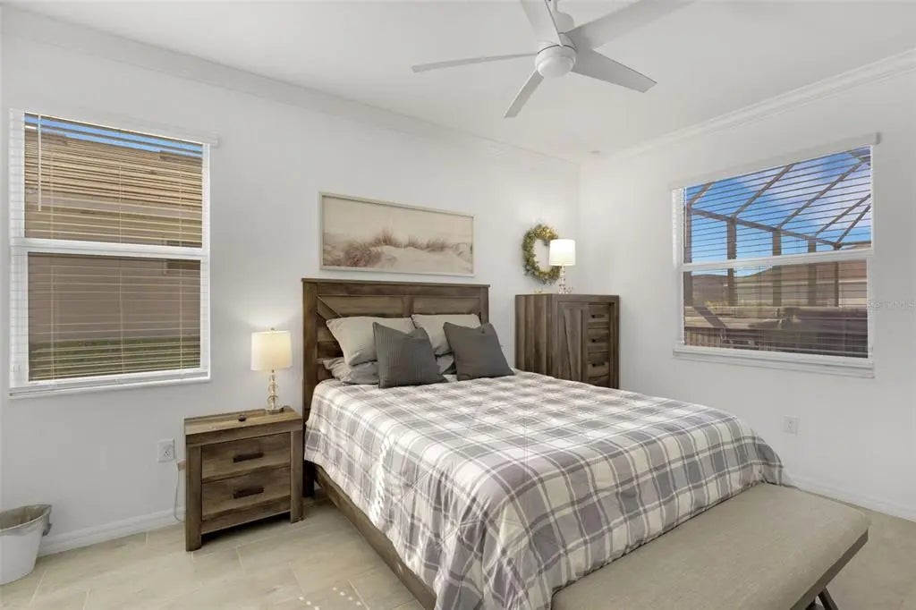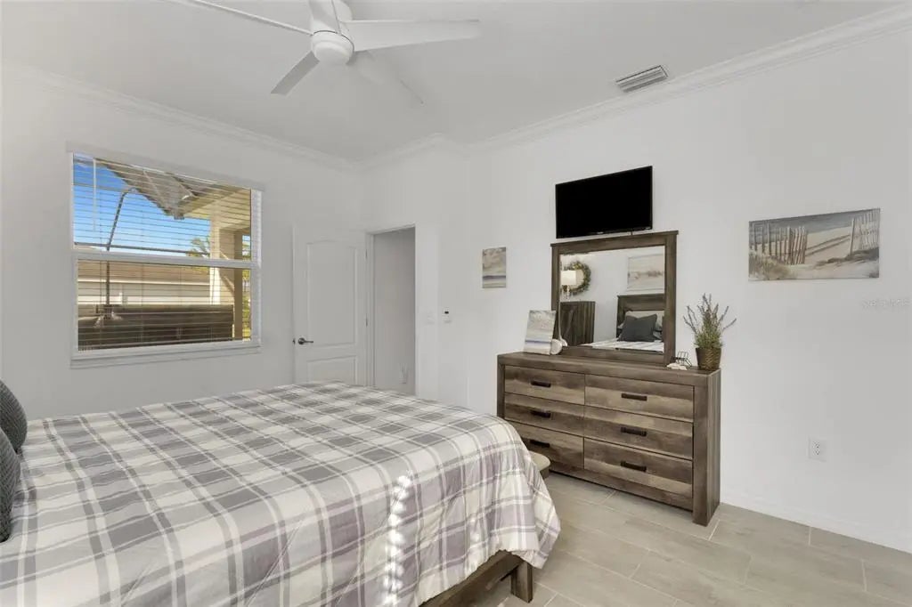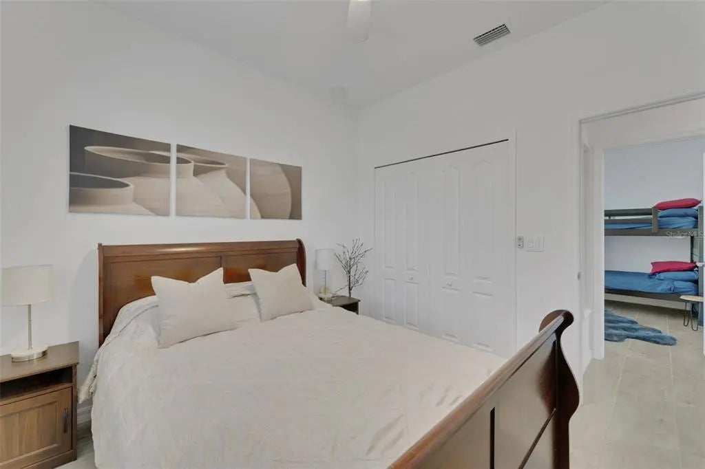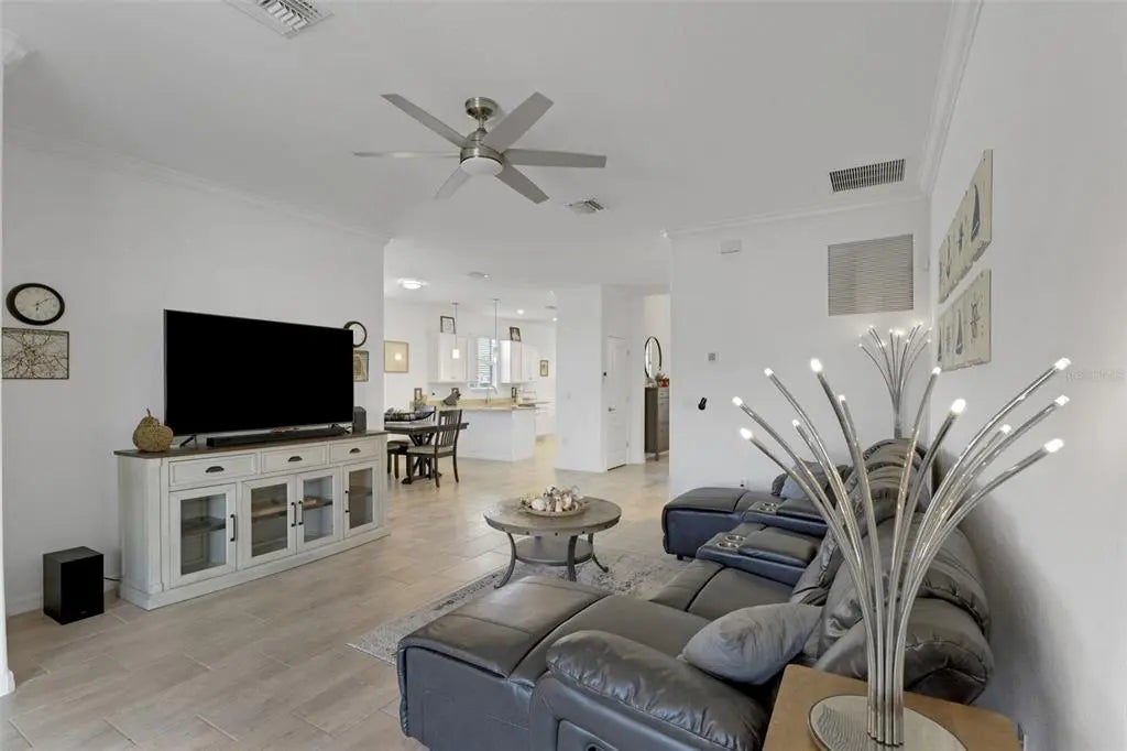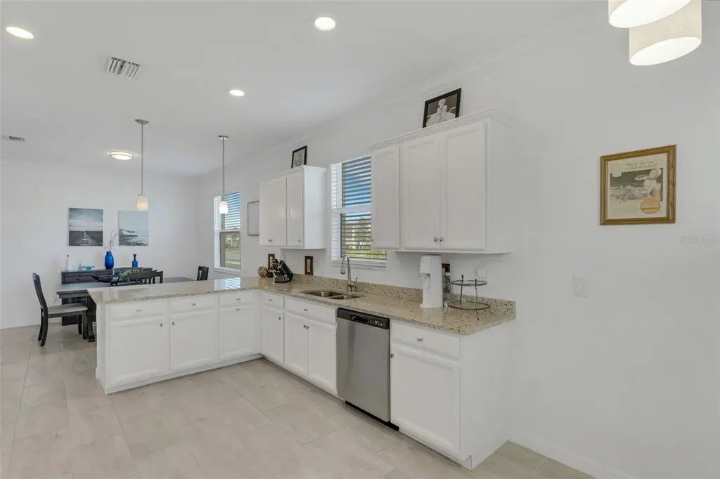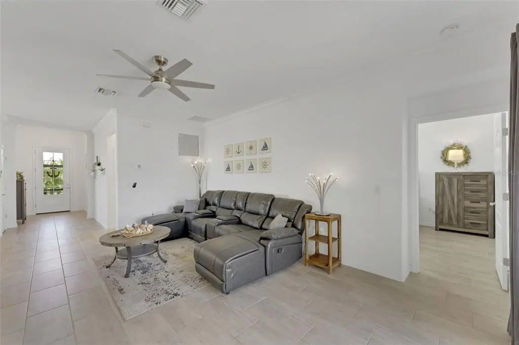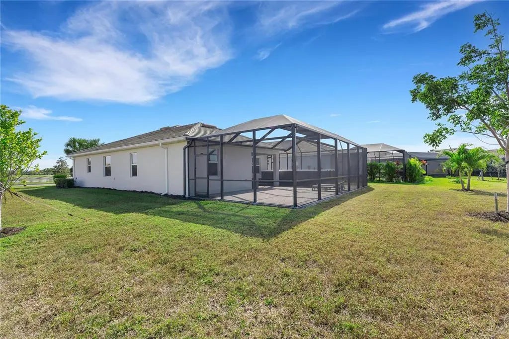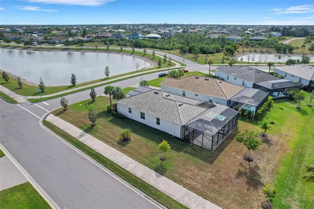 Welcome to Harbor West, the most sought-after gated community in South Gulf Cove! Built in 2022, this beautifully designed Capri model offers 3 bedrooms, 2 bathrooms, and a 2-car garage, combining modern elegance with relaxed Florida living. Priced to sell, this home features approximately 3,000 square feet of total indoor and outdoor living space, thoughtfully designed for both everyday comfort and entertaining. Enjoy peace of mind with impact windows, a tile roof, and a desirable split-bedroom floor plan. Step through the fully screened front porch into a spacious foyer with a convenient coat closet. The open-concept layout seamlessly connects the eat-in kitchen, dining area, and family room. The kitchen boasts granite countertops, stainless steel appliances, a large pantry, and ample cabinetry. High ceilings, crown molding, and designer lighting enhance the home’s sophisticated yet inviting atmosphere. Double sliding glass doors open to an expansive outdoor oasis featuring a covered lanai, newly built extended patio, and an oversized additional lanai—perfect for creating multiple outdoor living and entertaining spaces. Relax and unwind in the heated, jetted swim spa with all the bells and whistles, enjoy alfresco dining, or take in the beautiful sunset views. A serene lake view from the front of the home adds to the peaceful setting. The spacious primary suite is a true retreat, featuring crown molding, a large walk-in closet, and an en-suite bathroom with dual sinks, granite vanities, a large walk-in shower, and abundant storage. Washer and dryer are included for added convenience. Harbor West is a waterfront community of just 165 homes on 99 acres, offering scenic canal and pond views with NO CDD. The low HOA fee includes yard maintenance, two gated entrances, sidewalks, public water and sewer, and an irrigation system drawing from the community lake. Pride of ownership shines throughout this impeccably maintained home. Ideally located, you’re just minutes from Gulf beaches, Boca Grande, Englewood, golf courses, boat ramps, dining, and shopping. Enjoy easy access to the Myakka River, Intracoastal Waterway, and the Gulf of Mexico, as well as I-75, Wellen Park, Sarasota, Tampa, and Fort Myers—making this an ideal year-round residence or seasonal retreat. ~~ Don’t miss this exceptional opportunity ~ call today to schedule your private showing!