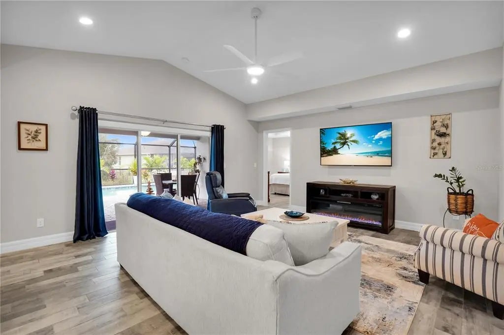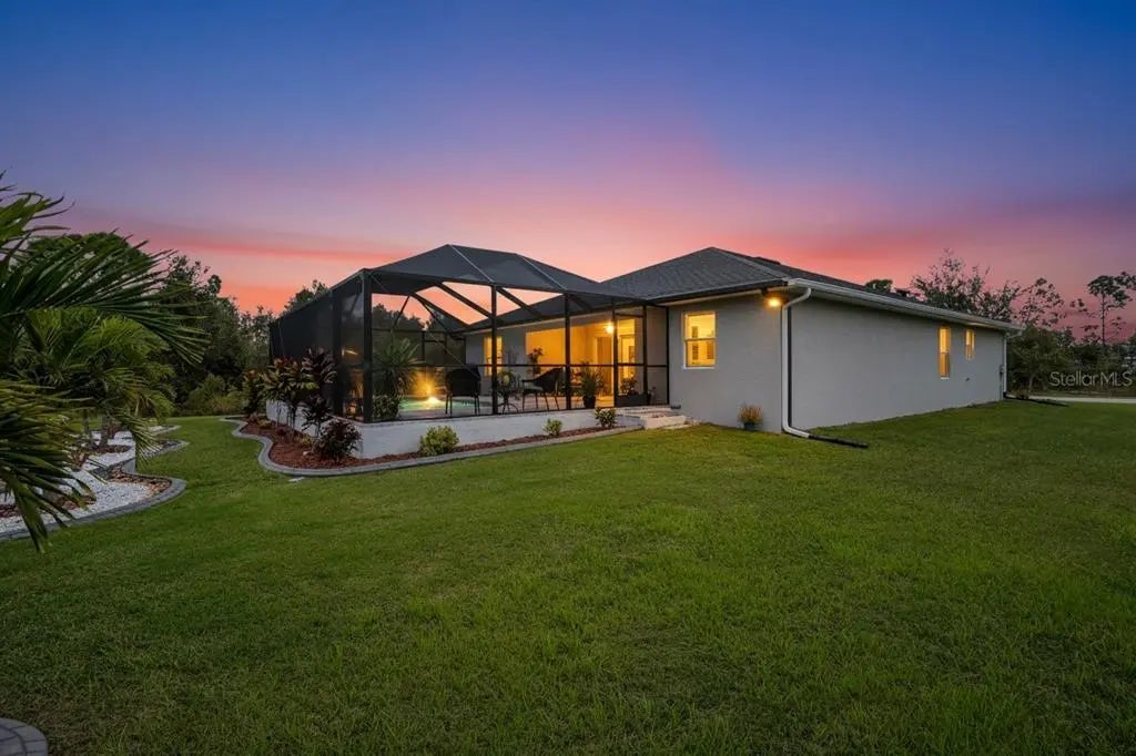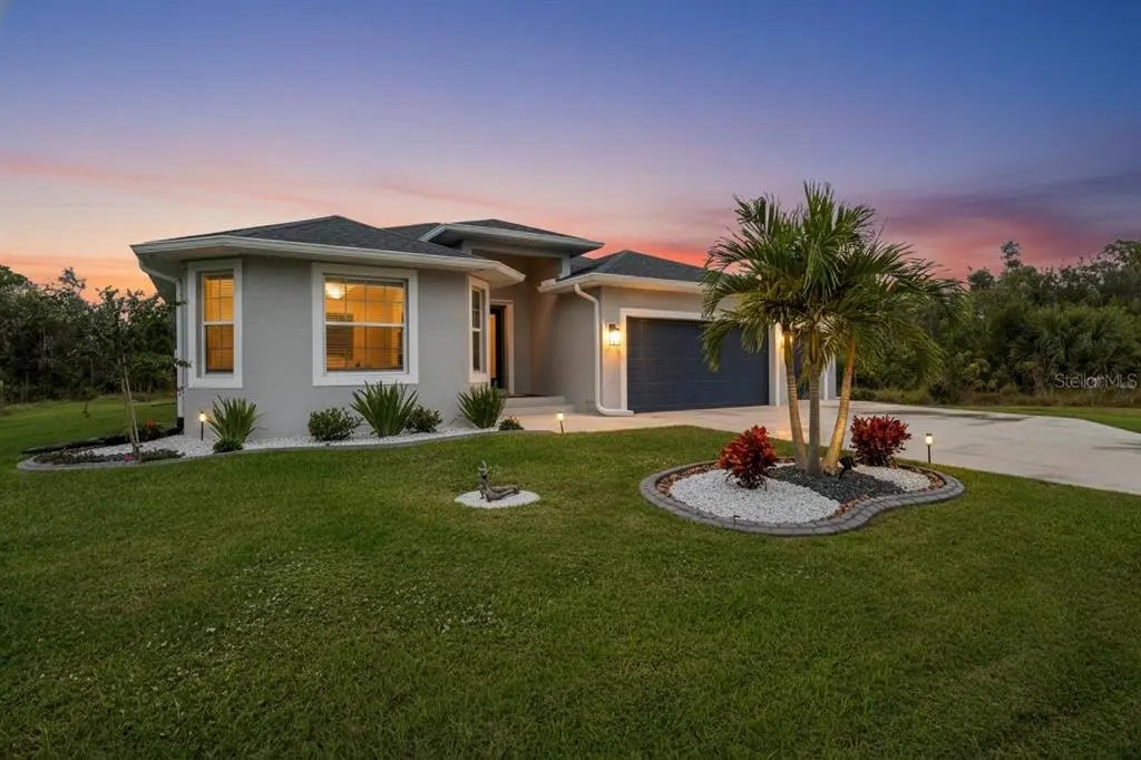 Welcome to a home that truly has it all in the desirable community of South Gulf Cove. Built in 2023 and cared for with exceptional attention and pride, you can feel the quality the moment you arrive. From the beautifully designed landscaping to the inviting curb appeal, this 3-bedroom, 2-bath home—with a spacious 3-car garage and hurricane-rated doors—looks and feels like a model. Every inch has been thoughtfully maintained, upgraded, and loved. Step through the grand glass front door into a dedicated entryway with a tray ceiling and dimmable lighting that instantly sets the tone. To the left, two comfortable guest bedrooms and a full bath offer privacy and flexibility. The heart of the home is the stunning great room, featuring soaring cathedral ceilings, dimmer lighting, and oversized sliders that frame views of the lanai and sparkling pool. The open kitchen offers granite countertops, a large center island with a double sink, dimmable lighting, and a generous walk-in pantry—perfect for cooking, gathering, and entertaining. The dining area, accented by a tray ceiling, overlooks the peaceful backyard and fills the space with natural light. The primary suite is a retreat, featuring a tray ceiling, dimmer lighting, a walk-in closet plus an additional built-in closet, and a beautiful ensuite bath with dual sinks and a walk-in shower. Step outside to a large screened-in lanai and a gorgeous pool area designed for year-round enjoyment. The backyard offers exceptional privacy, lush landscaping, and the unique benefit of being located within a designated bird sanctuary. Occasional wildlife visits add to the serene, picturesque atmosphere that feels worlds away. All of this is just a short drive to water access, Boca Grande/Gasparilla Island, Englewood Beach, Stump Pass Beach, and Manasota Beach. The home is also conveniently close to restaurants, shopping, and everyday necessities. Homes this new, this loved, and this meticulously maintained are rare. Don’t miss your chance—opportunities like this don’t last.