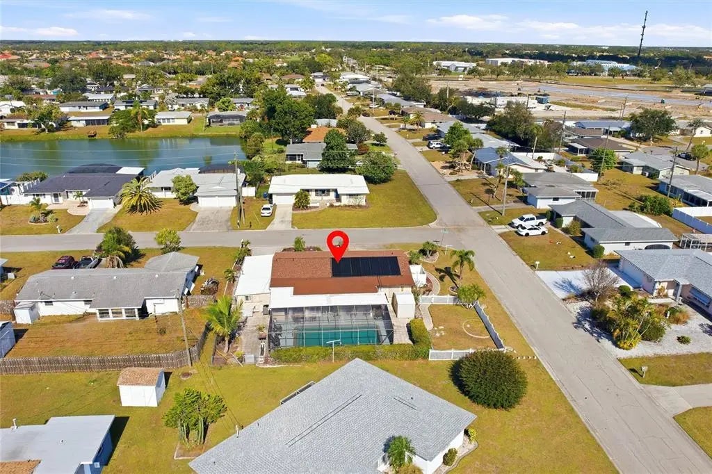 Welcome to your perfect Florida retreat! This beautifully maintained 3/2/1 home sits on a spacious corner lot and features a solar-powered heated pool that you can do laps in, perfect for year-round enjoyment. Also has a whole house generator thats runs on propane gas Inside, you’ll love the split floor plan — two bedrooms and a bath are conveniently located off the living room, while the third bedroom offers extra privacy near the garage and laundry area. Located just 5 miles from the beach, this home is close to shopping, dining, and entertainment. With no HOA and no rental restrictions, it’s ideal as a full-time residence, a vacation getaway, or an income-producing vacation rental.