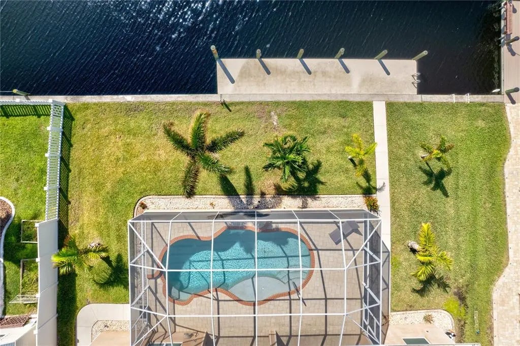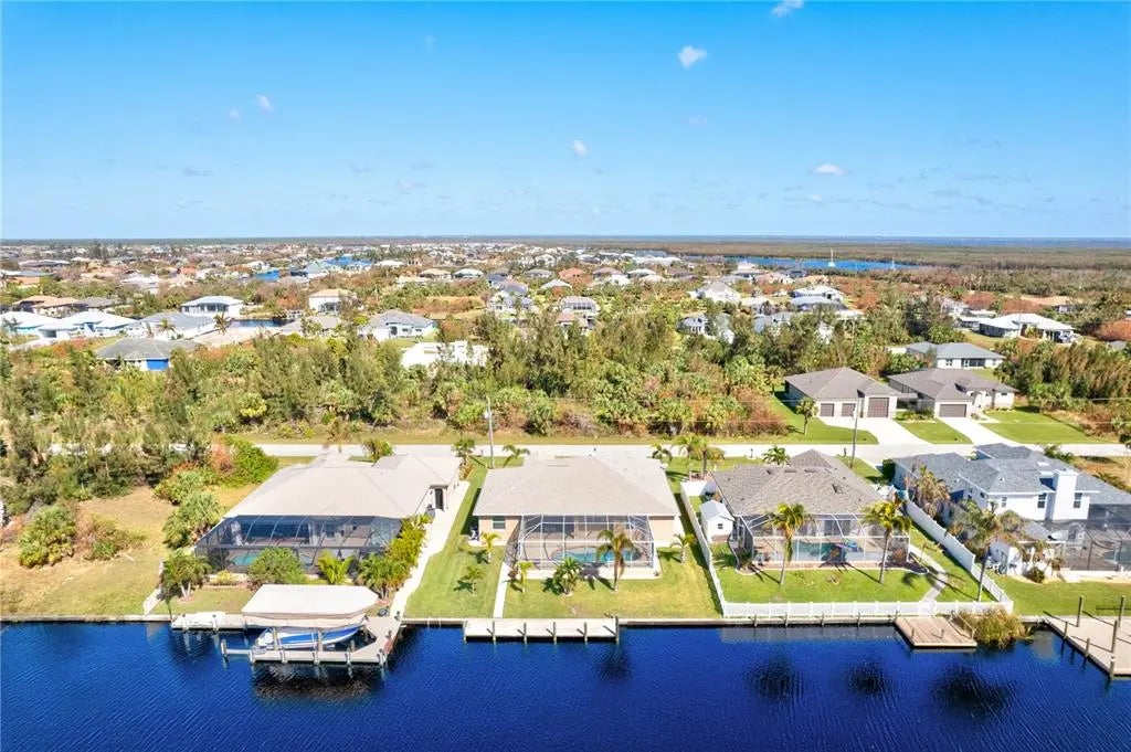 Under contract-accepting backup offers. Motivated Seller and Priced to Sell. Bring any serious OFFERS - GREAT DEAL! Come tour this Move-In Ready Turnkey Home. Experience relaxed waterfront living in this beautifully maintained South Gulf Cove Community pool home with GULF ACCESS (one fixed bridge) in a Deed-Restricted Voluntary HOA $120/Year, and NO CDD. This turnkey home features a 3-bedroom home plus den/office (or 4th bedroom with closet), 2.5 baths, a 3-car garage, and an open, airy floor plan. The Covered Lanai is designed for indoor-outdoor Florida living. Impact-resistant windows throughout, PGT zero-corner 90-degree Impact-Resistant Sliding Glass Doors, Electric Roll-down Storm Screens for shade or privacy, and peace of mind when there is a storm. Hurricane Panels for the Front Door. The open-concept kitchen offers a breakfast bar, pendant lighting, walk-in pantry, eat-in dining area, and NEW Samsung Stainless Steel Kitchen Appliances. A separate dining area off the living room provides space for more formal gatherings, with another dining area overlooking the pool & water from the window just off the kitchen. Volume ceilings, tray ceilings in the living room and primary suite, soft-close wood cabinetry, and granite countertops throughout add a refined touch, while energy-efficient spray foam insulation enhances year-round comfort. The spacious primary suite showcases tranquil water and pool views, private lanai access, dual walk-in closets (one with a keypad for valuables), and a well-appointed bath with dual sinks, soaking tub, and a large walk-in shower with seating and dual shower heads. Enjoy seamless indoor-outdoor living from the living and dining areas, which open to the covered lanai and Southern-Exposure Heated Pool featuring Shell stone pavers, a sun shelf, a waterfall spill-over feature, a child-safe door alarm, a solar cover, and an outdoor shower. The fully irrigated yard is supplied by the canal with a new pump installed in 02/2025. Additional highlights include a Newer Roof (installed in 2022) with a 15-year transferable warranty. Thoughtful upgrades throughout, such as wood columns in the foyer and dining room. Laundry Room has wood cabinets for storage and a stainless steel sink, granite counter and a washer and dryer. This waterfront home truly shines with 80 feet of concrete seawall and a 40-foot concrete dock equipped with water, electric, and ladder, offering easy access through the community boat lock system to the Gulf—perfect for fishing, boating to Boca Grande or Stump Pass, or waterfront dining adventures. Conveniently located near marinas, a public boat slip, shopping, dining, golf courses, Gulf beaches (Englewood, Venice, Siesta Key), and just 15 minutes from Charlotte Sports Park for spring training. A short drive brings you to Sarasota’s renowned St. Armands Circle for entertainment, boutiques, galleries, bars, and dining. Furniture is optional. Builder plans from Capitol Homes are included. Schedule your private showing today and make this exceptional waterfront home yours. PRICED TO SELL!