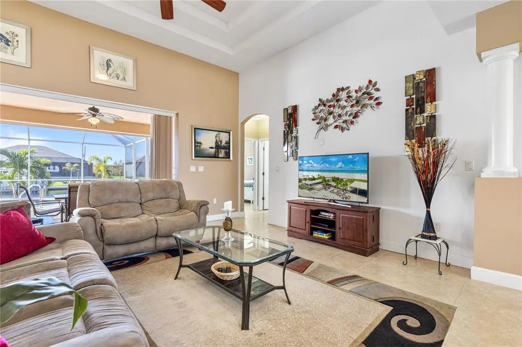 Motivated Seller and Priced to Sell. Come tour this Move-In Ready Turnkey Home. Experience relaxed waterfront living in this beautifully maintained South Gulf Cove Community pool home with GULF ACCESS (one fixed bridge) in a Deed-Restricted Voluntary HOA $120/Year, and NO CDD. This turnkey home features a 3-bedroom home plus den/office (or 4th bedroom with closet), 2.5 baths, a 3-car garage, and an open, airy floor plan. The Covered Lanai is designed for indoor-outdoor Florida living. Impact-resistant windows throughout, PGT zero-corner 90-degree Impact-Resistant Sliding Glass Doors, Electric Roll-down Storm Screens for shade or privacy, and peace of mind when there is a storm. Hurricane Panels for the Front Door. The open-concept kitchen offers a breakfast bar, pendant lighting, walk-in pantry, eat-in dining area, and BRAND NEW Samsung Stainless Steel Kitchen Appliances. A separate dining area off the living room provides space for more formal gatherings, with another dining area overlooking the pool & water from the window just off the kitchen. Volume ceilings, tray ceilings in the living room and primary suite, soft-close wood cabinetry, and granite countertops throughout add a refined touch, while energy-efficient spray foam insulation enhances year-round comfort. The spacious primary suite showcases tranquil water and pool views, private lanai access, dual walk-in closets (one with a keypad for valuables), and a well-appointed bath with dual sinks, soaking tub, and a large walk-in shower with seating and dual shower heads. Enjoy seamless indoor-outdoor living from the living and dining areas, which open to the covered lanai and Southern-Exposure Heated Pool featuring Shell stone pavers, a sun shelf, a waterfall spill-over feature, a child-safe door alarm, a solar cover, and an outdoor shower. The fully irrigated yard is supplied by the canal with a new pump installed in 02/2025. Additional highlights include a Newer Roof (installed in 2022) with a 15-year transferable warranty. Thoughtful upgrades throughout, such as wood columns in the foyer and dining room. Laundry Room has wood cabinets for storage and a stainless steel sink, granite counter and a washer and dryer. This waterfront home truly shines with 80 feet of concrete seawall and a 40-foot concrete dock equipped with water, electric, and ladder, offering easy access through the community boat lock system to the Gulf—perfect for fishing, boating to Boca Grande or Stump Pass, or waterfront dining adventures. Conveniently located near marinas, a public boat slip, shopping, dining, golf courses, Gulf beaches (Englewood, Venice, Siesta Key), and just 15 minutes from Charlotte Sports Park for spring training. A short drive brings you to Sarasota’s renowned St. Armands Circle for entertainment, boutiques, galleries, bars, and dining. Furniture is optional. Builder plans from Capitol Homes are included. Schedule your private showing today and make this exceptional waterfront home yours. PRICED TO SELL! Seller financing is available with a low interest rate for qualified buyers.