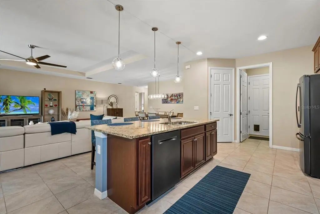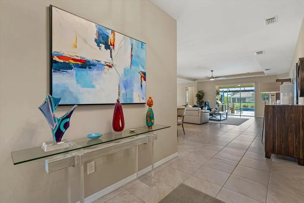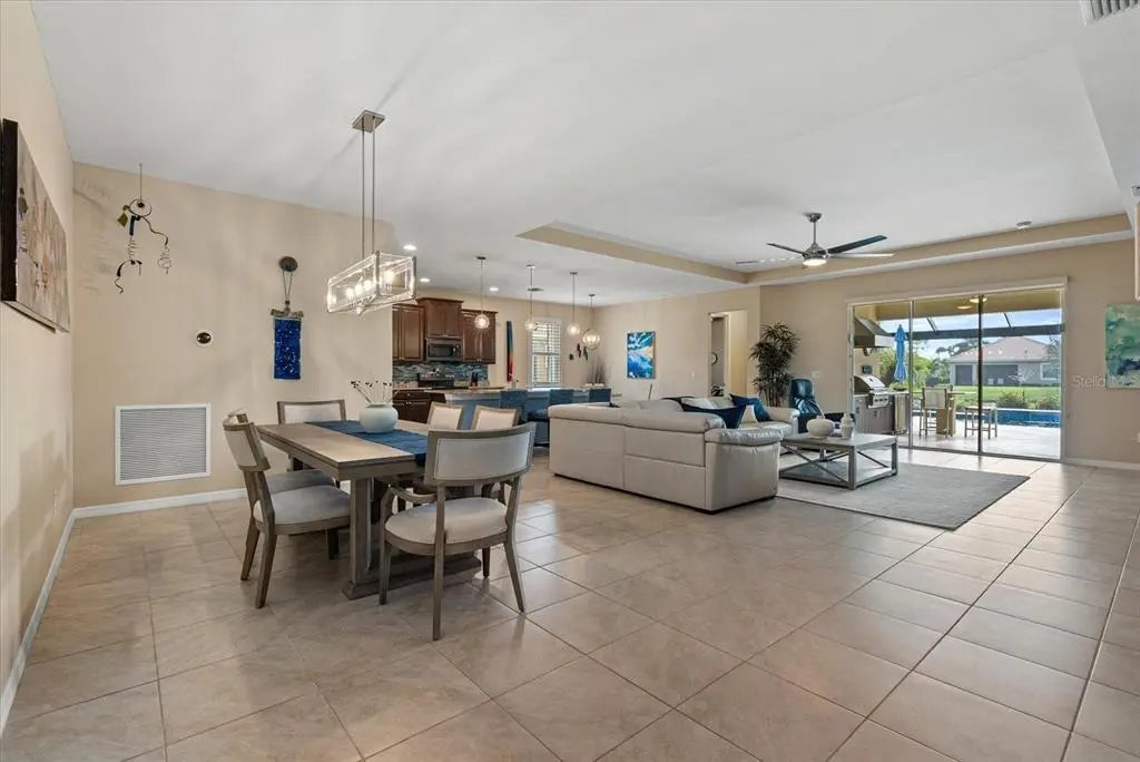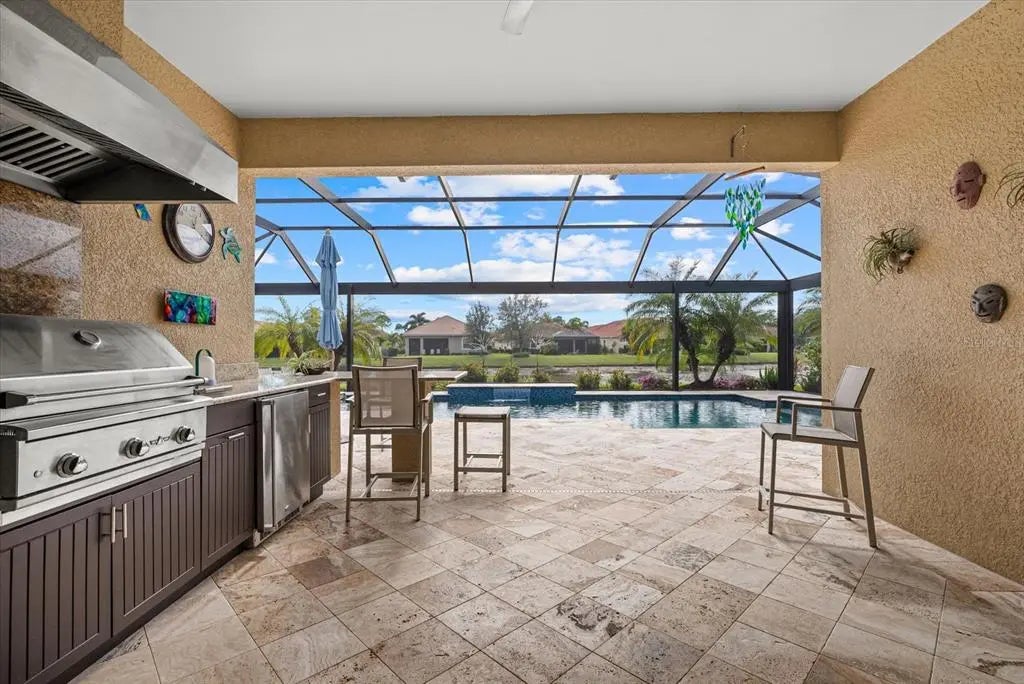 Welcome to your Florida dream home!! This beautifully designed 4-bedroom, 3-bath, 3-car garage POOL HOME offers 2,369 sq ft of spacious, light-filled living on a serene pond-view lot in the gated community of Caribbean Village, just minutes from Venice’s beaches, shopping, dining, and I-75. The open-concept floor plan is ideal for both everyday living and entertaining, with the kitchen seamlessly connecting to the great room, café, and dining area. The chef’s kitchen features granite countertops, 42" cabinetry, upgraded modern appliances and lighting, complemented by abundant natural light and thoughtfully designed living spaces throughout the home. The primary suite serves as a peaceful retreat featuring a tray ceiling with a private en-suite bath including a soaker tub and walk-in shower and a generous upgraded closet space. The split floor plan with three additional bedrooms and two full baths provides flexibility for family, guests, or a home office. A three-car garage offers ample room for vehicles, storage, and hobbies. Step outside to your PRIVATE BACKYARD OASIS, where a CUSTOM POOL with a built-in outdoor kitchen takes center stage. Enjoy an upgraded travertine pool deck, a sun shelf with bubbler and umbrella holder, LED pool lighting, a custom built-in outdoor kitchen with a granite table extension and plenty of cabinets, and an open-view pool cage that maximizes the tranquil pond views making it perfect for relaxing or entertaining year-round in true Florida style. Enjoy peace of mind with the upgraded Accordion Hurricane Shutters, 7500W generator, water softener, new HVAC installed in July 2024 with a transferable warranty, new water heater installed in December 2025 with a transferable warranty, whole house surge protector at the main electrical panel, and ADT Security System. Residents of Caribbean Village enjoy access to Resort-Style amenities, including a heated community pool, fitness center, and clubhouse, with lawn maintenance included. Built in 2017, this home blends modern comfort, quality construction, and an exceptional location, offering the ultimate Florida lifestyle. This home is being sold partially furnished. For a list of all of the furnishings and upgrades, please reach out to the listing agent.