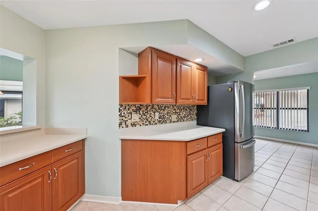 One or more photo(s) has been virtually staged. Welcome to this delightful villa, perfectly situated on a picturesque street lined with a canopy of mature oak trees. This home offers a spacious and versatile floor plan, featuring two primary suites, two full baths, and a convenient two-car garage. Step inside to a welcoming foyer that leads into a bright living room with soaring cathedral ceilings. The generous bonus room provides the ideal space for a home office, den, or creative retreat. At the rear of the house, the sunlit Florida Room invites relaxation and enjoyment year-round. The updated kitchen is a chef’s dream, boasting solid surface countertops, a stylish tile backsplash, raised wood panel cabinetry with pull-out shelves, and modern stainless steel appliances. NEW refrigerator will please the cook of the house. Recent upgrades include a newer AC unit has recently been serviced and an updated electrical panel (2014), and a NEW hot water heater ensuring comfort and peace of mind. Association is currently installing new metal roofs throughout the community adding beauty and safety for many years to come with NO assessment. Residents of Myrtle Trace enjoy a vibrant community lifestyle, with access to a nearby clubhouse hosting a variety of activities and a heated community pool. For those seeking even more amenities, an optional membership to The Plantation Golf & Country Club is available, offering two 18-hole championship golf courses, a fitness center, tennis courts, a heated Jr Olympic-size pool, diverse dining options, and a wide range of activities.