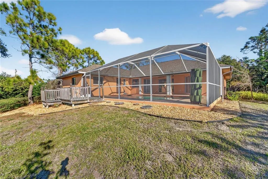Under contract-accepting backup offers. Discover the perfect blend of privacy, space, and opportunity on this beautifully wooded 3.14-acre estate just minutes from the heart of Venice and less than two miles to the beach. Tucked behind a gated entrance, this serene country retreat offers over 2,000 square feet of comfortable living with three bedrooms and two bathrooms, thoughtfully designed for both everyday living and entertaining. Inside, enjoy the warmth and charm of a wood-burning fireplace, while multiple sliding glass doors throughout the home open directly to the heated pool, creating a true indoor-outdoor lifestyle. Surrounded by mature trees and natural beauty, the property features a peaceful pond, providing a tranquil backdrop for relaxation and outdoor living. The home has been built up higher for added peace of mind regarding flooding, has hurricane shutters on the screened in lanai and is zoned to allow for subdividing, offering exceptional flexibility for a multi-home compound, future investment, or long-term planning. Major updates include a 2018 roof with transferrable warranty, 2025 air conditioning system, and 2024 hot water heater, delivering confidence and reduced maintenance. With well and septic in place, this private oasis offers the freedom of country living without sacrificing proximity to shopping, dining, and the Gulf beaches nearby. A rare opportunity to own a gated acreage property where privacy, lifestyle, and long-term potential come together—just minutes from Venice and the gulf coast.