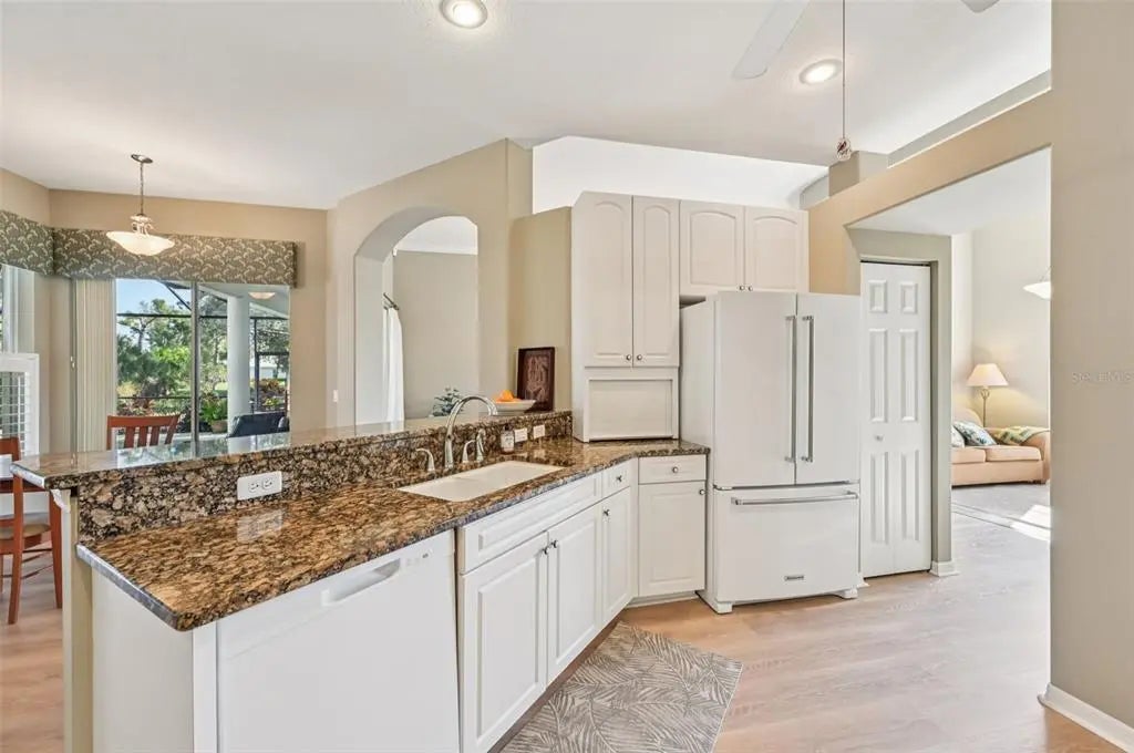 Beautiful, well-maintained three-bedroom, two-bath pool home is now available. Meticulously cared for as a seasonal residence for over twenty years, this property features a thoughtful split floor plan that provides excellent privacy for both the primary suite and the guest wing. The primary suite includes two large walk-in closets and an ensuite bath with separate vanities, a walk-in shower, and a garden tub, along with direct access to the pool and spa area on the lanai. The updated guest area offers two comfortable bedrooms and a modern bathroom. The main living spaces, including the dining room and dinette, feature newly updated luxury laminate flooring and provide ample space for entertaining. Home offers a spacious and open floor plan making this home feel grand. The outdoor living area is set within a tropical garden atmosphere on an oversized lot, featuring a private pool, spa, and grilling station. Recent structural updates include a new pool cage installed in 2016 and a new roof replaced in 2017. Location is amazing with an an oversized private lot and a low traffic pattern and an abundance of privacy with water views from the lanai. Pool cage replaced in 2016 and roof in 2017 making this one a must see! VG&CC is financially sound, Member owned and a wonderful place to live with an abundance of social activities! Who wouldn't want this one! VGCC is a private, member-owned country club offering an 18-hole championship golf course that is as challenging as it is beautiful. But it's not just about golf! The club also boasts top-notch Har-tru tennis courts, a State of the Art "Wellness Center" that offers equipment that can track your workout, an onsite physical therapist, an onsite message therapist and onsite personal trainer(s) and an Olympic Jr. sized pool and spa area. The dining options are exquisite, with a variety of cuisines to satisfy every palate and newly expanded outside ding area. The community spirit here is strong, with members often gathering for social events and activities. The staff is friendly and attentive, ensuring a memorable experience every time. So, whether you're a golf enthusiast or someone who enjoys a leisurely lifestyle in a luxurious setting, Venice Golf and Country Club is the place to be! The location is ideal, with proximity to shopping, dining, and the beautiful beaches of Venice. Make your appt TODAY before this one is GONE! This one is perfect for full or part-time owner and awaiting its new forever owner! ALL PROPERTY OWNERS IN VGCC MUST BE A MEMBER OF THE COUNTRY CLUB. PLEASE ASK ABOUT FEES PRIOR TO VIEWING THIS PROPERTY! THERE IS A MANDATORY REQUIREMENT, THANK YOU.