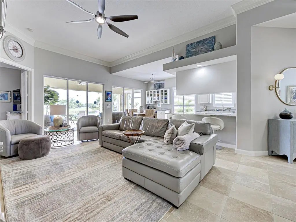 Move right in to this beautifully maintained and immaculate home where everything has been done for you! Experience relaxed Florida luxury in this beautifully designed 2,000-square-foot Oakmont floor plan home, located in the community of Island Walk which has a 24 hr guard. This home offers 3 bedrooms and 3 baths. You will enjoy a stunning water view and an expansive extended lanai with a new panoramic screen. perfect for enjoying Florida’s indoor-outdoor lifestyle. Enjoy tile flooring thruout the home, no carpeting. The open floor plan, high ceilings and natural light thruout make it comfortable for having guests and entertaining. Recent upgrades include Plantation Shutters in 2024, New roof w double underlayment in 2024, New Lanai cage and clear view screen, all outside lights, new sink in kitchen, guest bath and laundry room, new quartz kitchen countertops and kitchen coffee/Beverage bar with cooler, crown molding, new shower heads in baths, new exhaust fan in guest bathroom 2025, new refrigerator 2023, new washer and dryer 2024, Generac generator and electrical hookup 2025, storm smart shutters back of home in lanai. Island Walk is a resort-style community offering an active and social lifestyle with 2 resort-style pools & spas, lap pool, fitness centers, 8Har-Tru tennis and 12 lighted pickleball courts, bocce courts, clubhouse, walking trails, dog park, fire pits, and a full-time activities director with a wide variety of planned events. Island Walk offers unmatched resort-style amenities, providing a lifestyle you will enjoy! The community is conveniently located near the Atlanta Braves spring training stadium and Wellen Park. The amenities continue with 12 lighted pickleball courts, 8 Har-Tru tennis courts, bocce ball courts, fire pits, grilling areas, a dog park, and scenic, golf cart-friendly pathways. Just beyond the community gates, you’re only minutes from Manasota and Venice Beaches, the shops and restaurants of historic Downtown Venice, and the vibrant Wellen Park area—home to Cool Today Park, the spring training stadium of the Atlanta Braves, as well as a variety of dining, events, and entertainment options. With a full-time activities director, an ever-growing list of clubs and events, and an HOA that includes internet and cable, Island Walk stands out as one of Venice’s most active and engaging communities. Don't miss your opportunity to enjoy resort-style living in one of the area’s most sought-after locations. This is the Florida lifestyle at its best. Don't miss your chance to live in paradise!