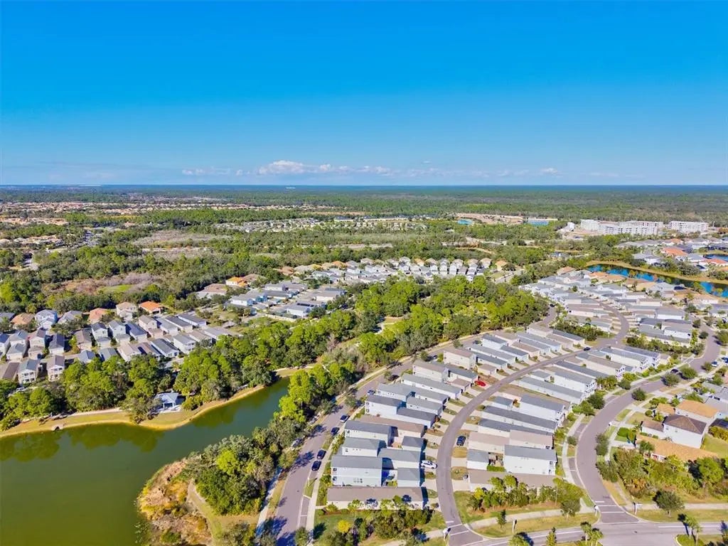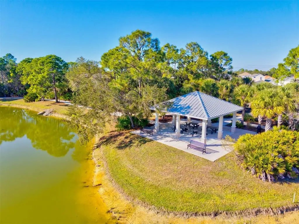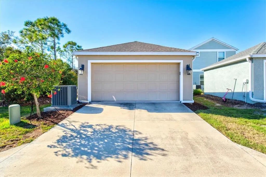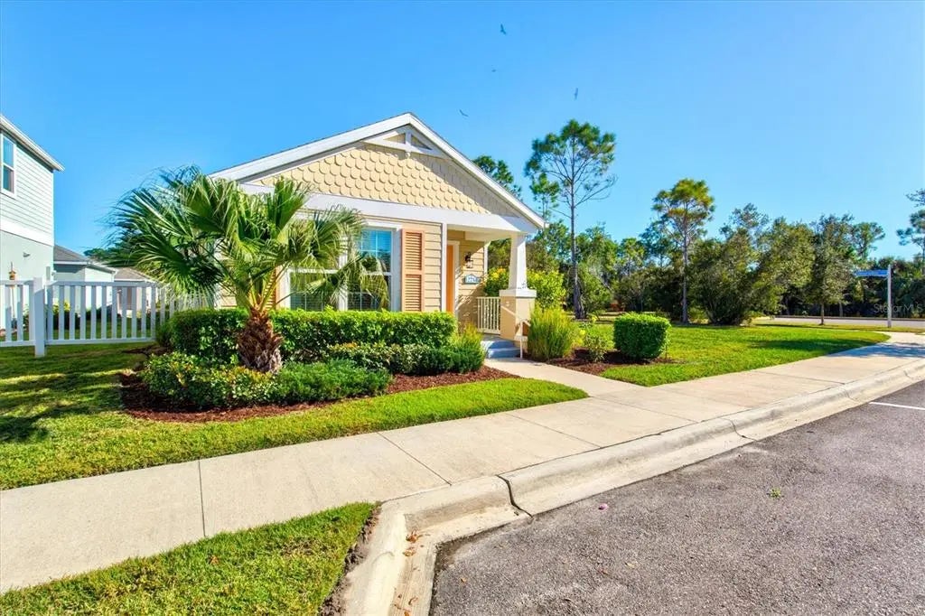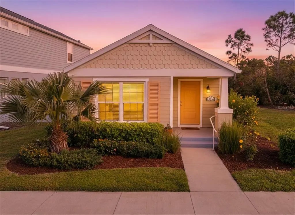 Enjoy peaceful pond views and glowing sunsets from the front porch of this picture-perfect cottage, ideally situated on a desirable corner lot within the gated, resort-style Grand Palm community. This impeccably maintained two-bedroom, two-bath home with an attached two-car garage is spotless, move-in ready, and filled with abundant natural light throughout. Inside, the open and airy floor plan seamlessly connects the great room, dining area, and kitchen, creating an inviting space ideal for both everyday living and entertaining. The bright kitchen features granite slab countertops, a stone backsplash, stainless steel appliances, a closet pantry, and a spacious breakfast bar with pendant lighting. Maple cabinetry with crown molding adds warmth and timeless appeal. The spacious owner’s suite offers room for a sitting area, a walk-in closet, and a well-appointed ensuite bath. A second bedroom and full bath provide comfort and flexibility for guests or a home office. Additional highlights include volume ceilings, neutral tile in the main living areas, brand new carpet in the bedrooms, faux wood blinds, fresh interior paint, and breathtaking front-facing views of the water and surrounding natural landscape. The attached two-car garage offers direct access to the home and features charming exterior coach lighting, while the interior laundry room includes shelving for added convenience. Located just a short walk from the clubhouse, this home provides easy access to Grand Palm’s exceptional amenities, including a resort-style pool, splash park, tot lot, fitness center, and an on-site activities director offering year-round programming. Outdoor enthusiasts will love the adventure lake with kayak and canoe launch, miles of scenic walking and biking trails, multiple dog parks, and beautifully maintained lakes and green spaces throughout the community. Flood zone X. Enjoy true maintenance-free living in one of the area’s most sought-after communities, where location, lifestyle, and comfort come together beautifully.