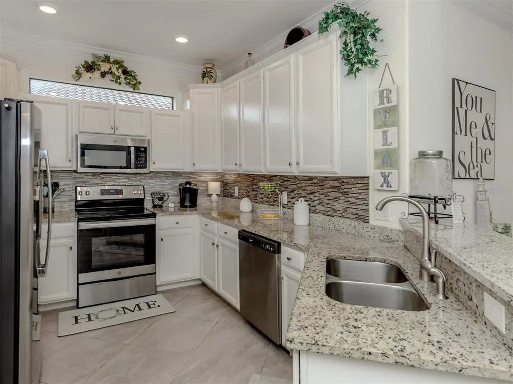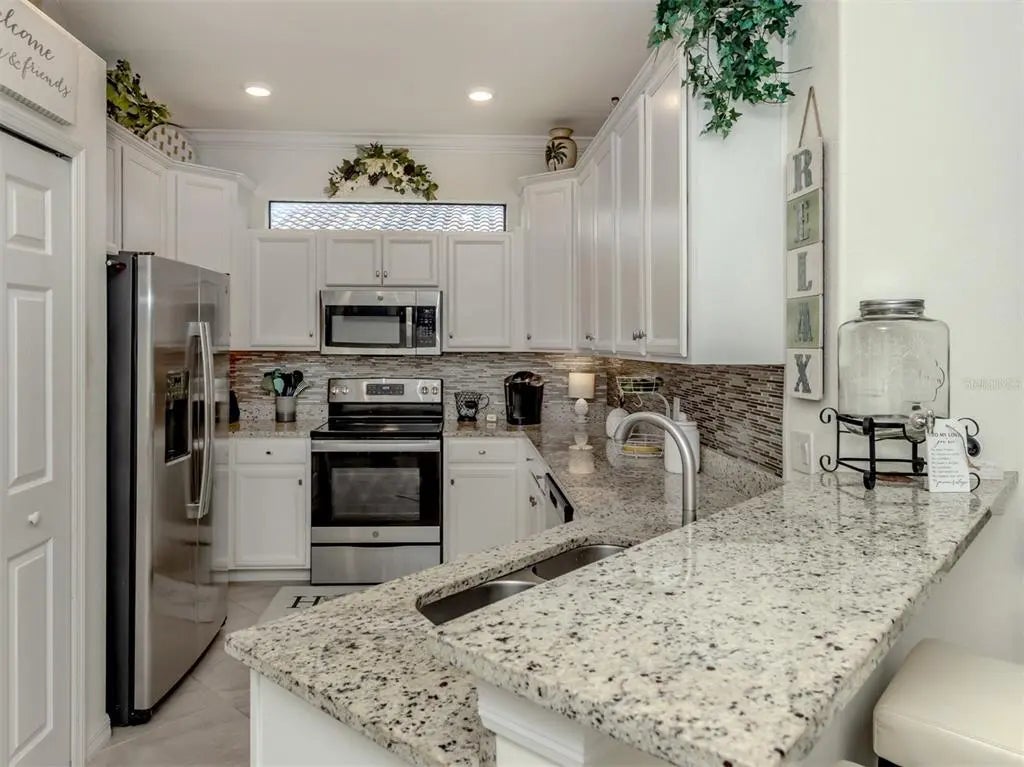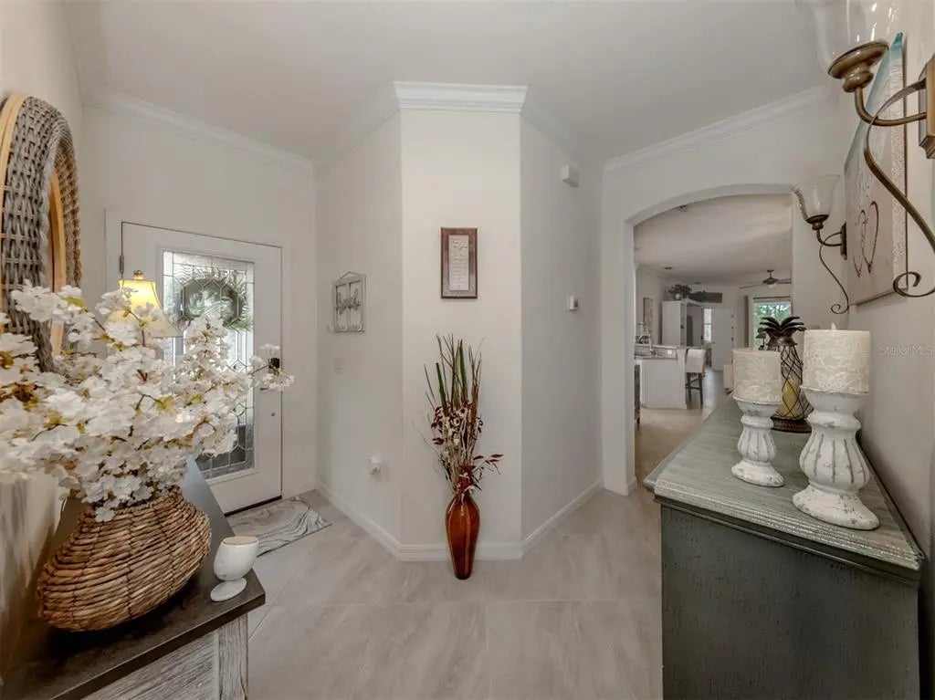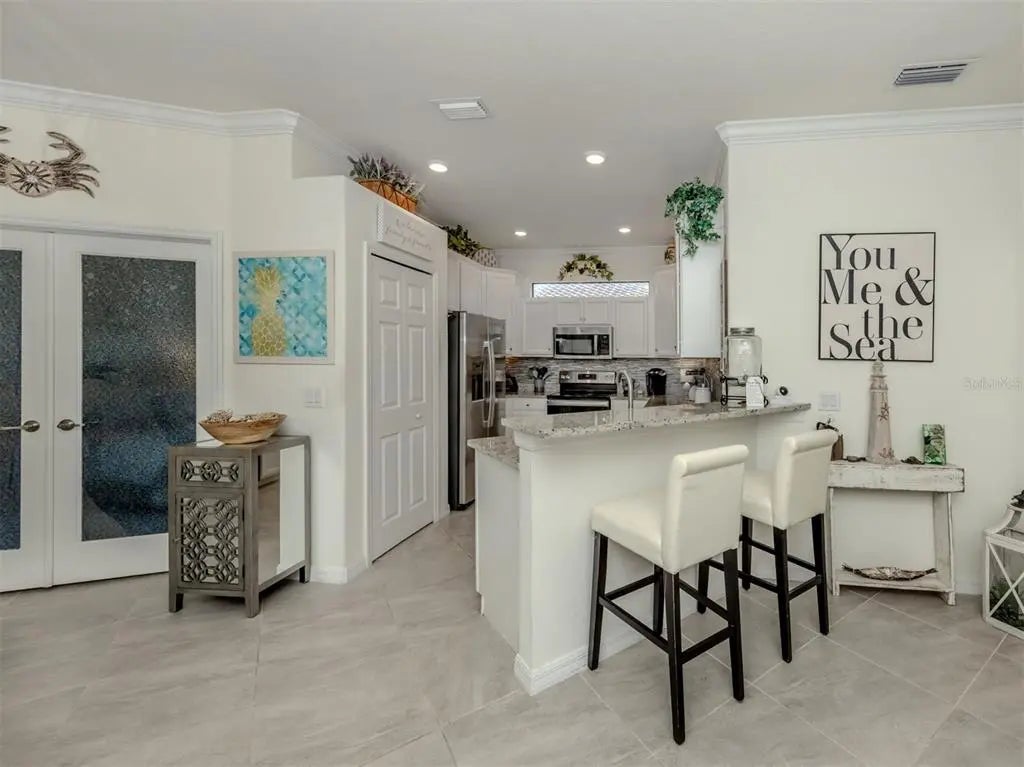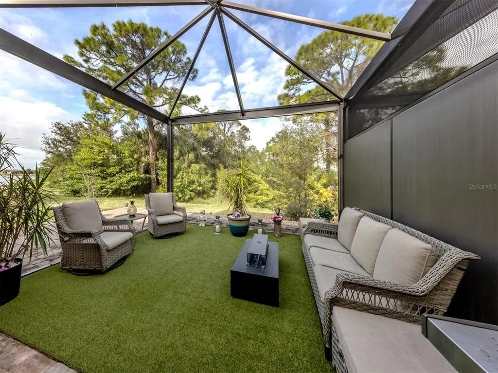 Seller says "Bring Offers!" Freshly painted (3/5/26), and just Minutes to Wellen Park! Largest oversized grandfathered in lanai and outdoor patio. Maximum number of upgrades. Chefs Kitchen! Last villa built in this style (2021). Premium green-spaced lot with plenty of privacy. Water views. Screened lanai and entryway which provide unmatched breezes . Diagonal tile floor in entire unit. No carpet. Granite countertops in kitchens and baths. Crown molding. Painted garage floor. Pavered Driveway. Country club-style living and amenities. Includes yard maintenance as part of the HOA. Low-maintenance lifestyle. This two-bedroom, two-bath home comes with an additional flex room which can be used as a third bedroom or office. Gran Paradiso is a resort-style, gated community offering amenities which include a 24-hour fitness center, with sauna and locker rooms, a heated resort-style pool and spa, pickleball, tennis courts and basketball courts. There are plenty of trails for walking and biking, along with a full-time activities director. The community is conveniently near Wellen Park and the Atlanta Braves spring training ballpark, historic downtown Venice, and Venice and Manasota beaches.