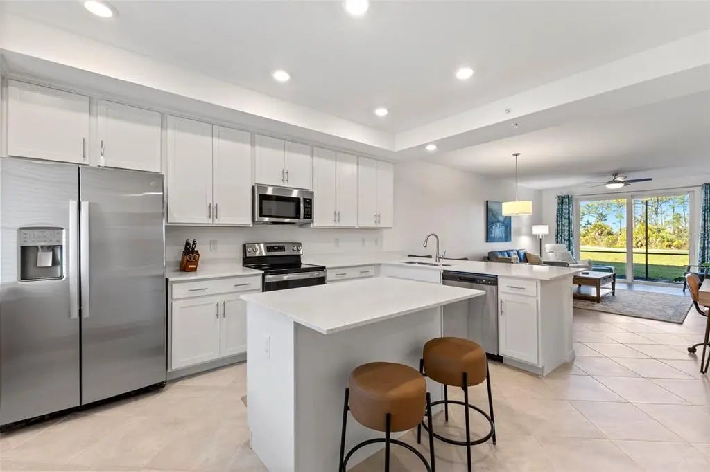 GOLF DEEDED with beautiful views with incredible amenities. This condo is situated within the thoughtfully planned community of Wellen Park, this refined residence at 12240 Wellen Golf Street, Unit 104, offers a harmonious blend of contemporary design, comfort, and low-maintenance living in one of Venice’s most desirable settings. This well-appointed ground-floor condominium (ideal for pets and no stairs to worry about) features a spacious and open layout designed for both everyday living and entertaining. The kitchen serves as the heart of the home, showcasing modern cabinetry, quality countertops, and a generous island that flows seamlessly into the main living and dining areas. Natural light enhances the clean architectural lines, creating a bright and welcoming atmosphere throughout. The primary suite is a private retreat, offering ample space, a walk-in closet, and a well-finished en suite bath and a walk-in shower. A thoughtfully designed secondary bedroom and additional full bath provide flexibility for guests, home office use, or extended stays. Finishes and fixtures throughout the residence reflect a commitment to quality and understated elegance. Enjoy Florida living with easy access to outdoor spaces, including nearby walking paths, green spaces, and community amenities that complement an active and relaxed lifestyle. Wellen Park is known for its cohesive design, convenient access to shopping, dining, and recreational opportunities, and its proximity to Venice beaches, golf courses, and major roadways. This residence presents an exceptional opportunity to enjoy a modern condominium in a master-planned environment that balances convenience, aesthetics, and lifestyle. Whether used as a primary residence or seasonal retreat, Unit 104 at 12240 Wellen Golf Street offers a polished and inviting place to call home in Southwest Florida.