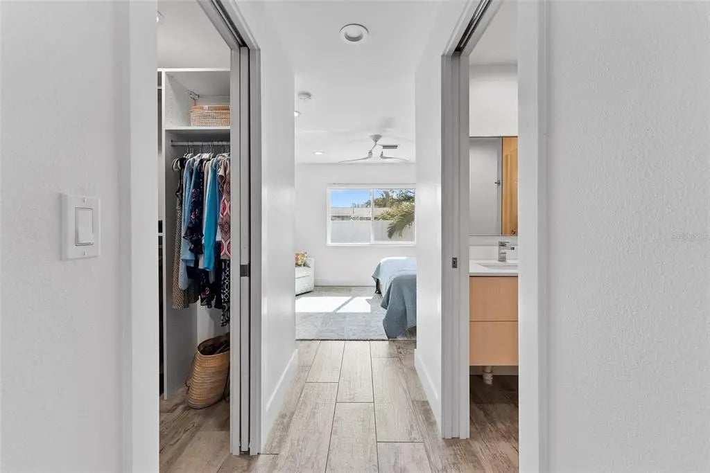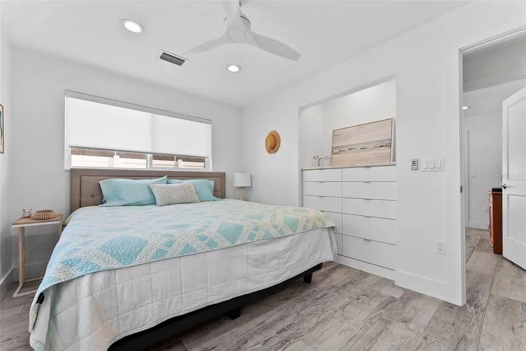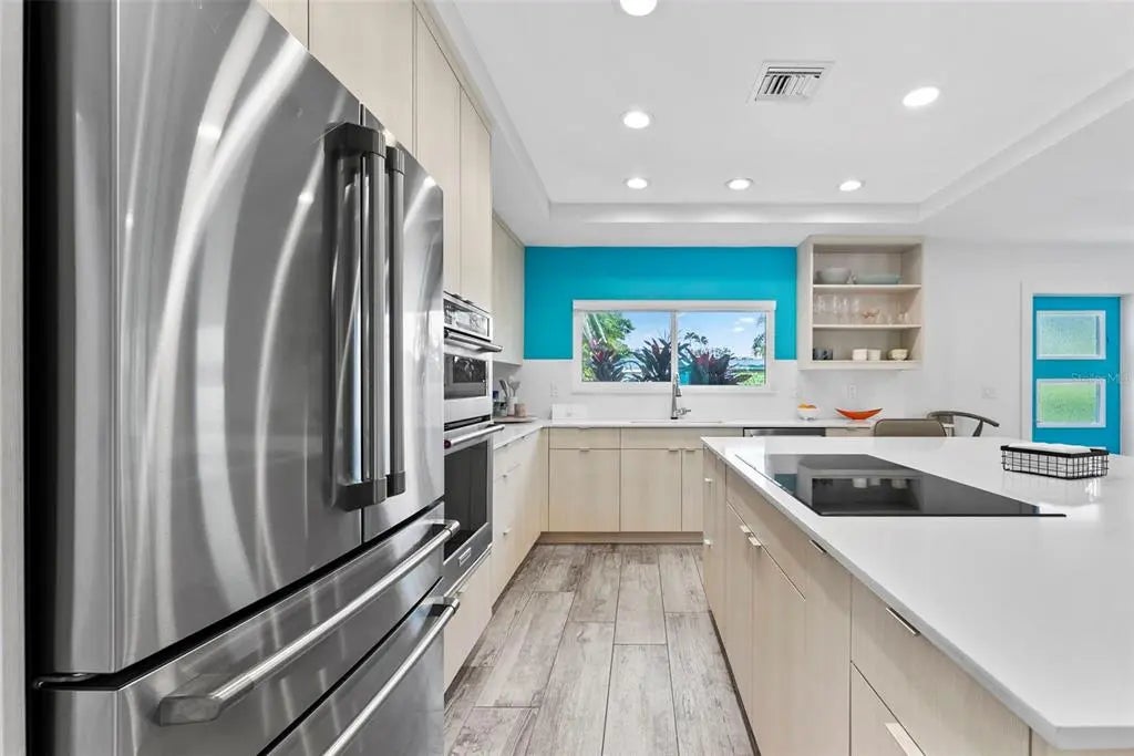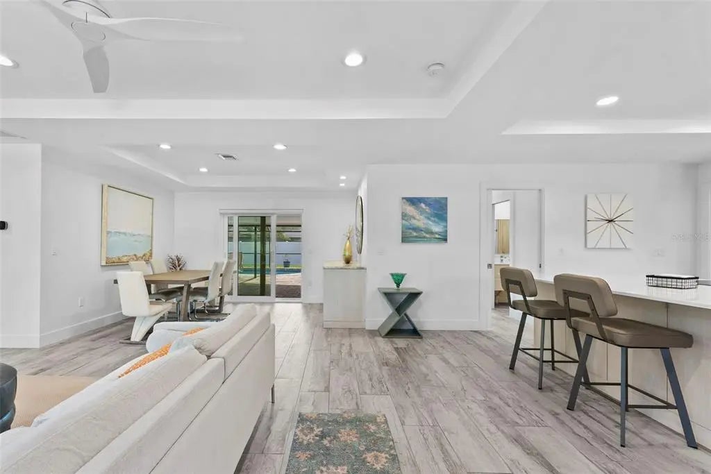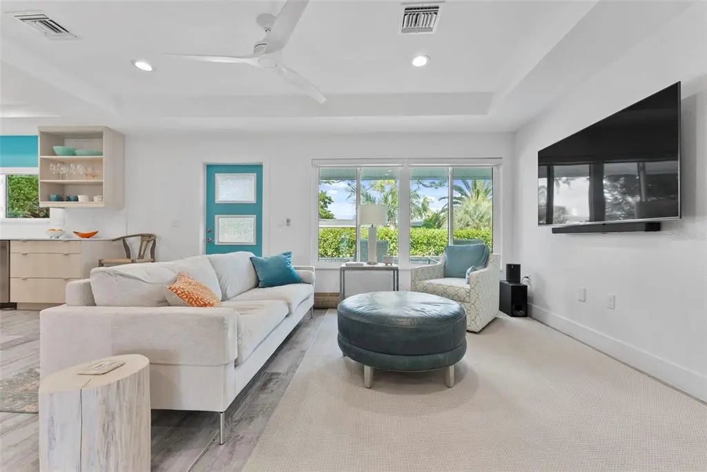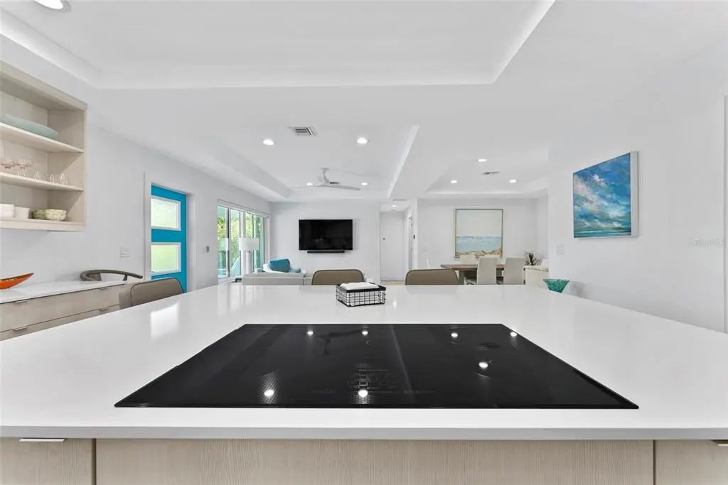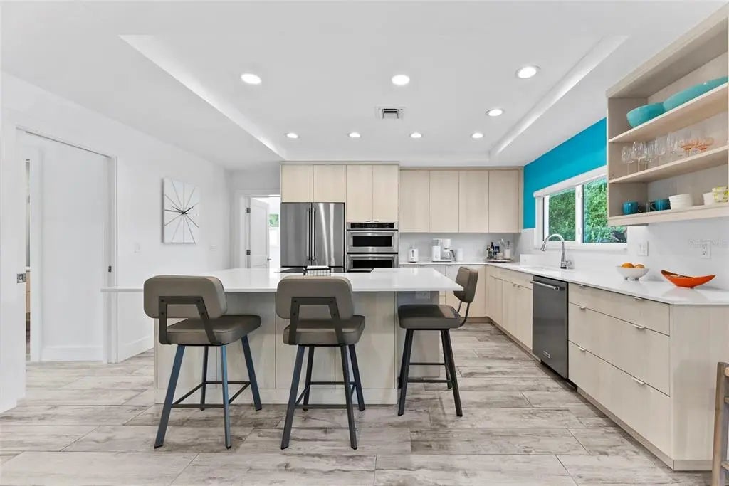 This stunning modern home on Venice Island was completely transformed in 2019 with a comprehensive redesign and major renovations, delivering a turn-key, low-maintenance coastal retreat that perfectly blends sophistication with relaxed beach living. Nearly every major system has been updated or replaced, including all-new plumbing, electrical and HVAC, plus impact resistant windows and sliders throughout, and a pool-and-deck complete renovation. This is a rare opportunity to own a freshly reimagined, modern beach home with minimal deferred maintenance. Step inside an open and airy floor plan featuring raised ceilings, an abundance of large windows, custom cabinetry & built-ins, and premium appliances (including a year-old Café French door refrigerator). A brand-new pool heater (2025) ensures year-round enjoyment, complemented by a hot-and-cold outdoor shower for ultimate convenience after beach days. The pool area is enhanced by a large overhang that provides ample shaded outdoor space. Located in the highly desirable Venice Island neighborhood, this home offers the ultimate Florida lifestyle: a short walk to the beach for morning strolls and sunsets, and easy walking distance to vibrant Downtown Venice with its shops, restaurants, and events. Live the island dream—beach access, downtown convenience, and contemporary style, all wrapped in one exceptional package. Welcome home!