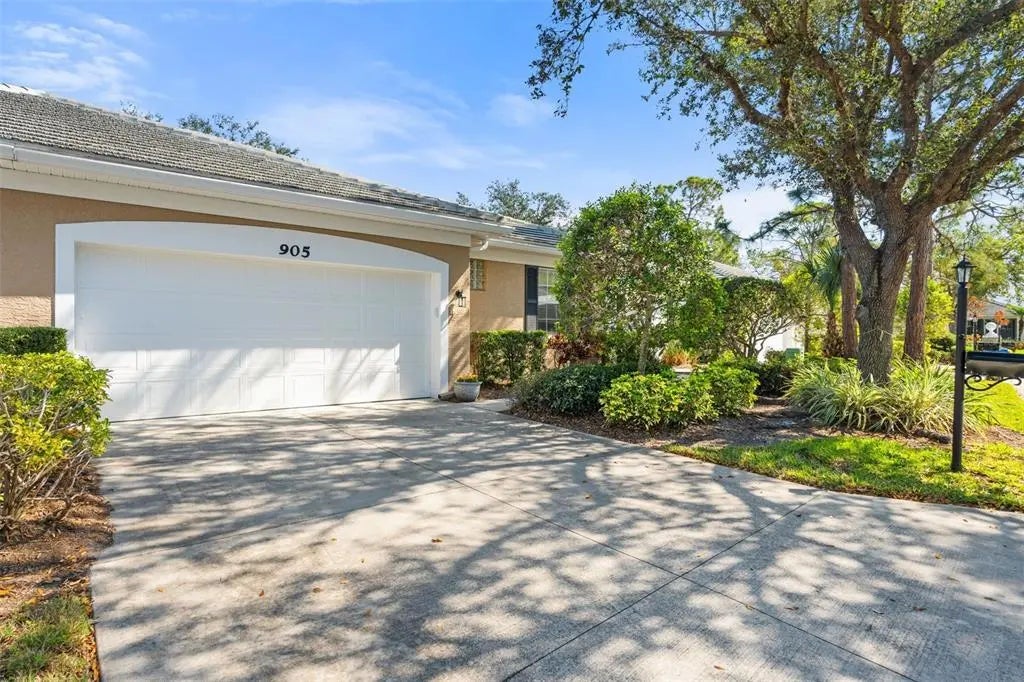 Welcome to 905 Barclay Court, where you can live and play in a resort-style golf community in the heart of Venice, Florida—with access to three community pools! This beautifully maintained 3-bedroom, 2-bath Villa with a 2-car garage is located within the highly desirable Plantation Golf & Country Club. The bright, open floor plan offers generous indoor and outdoor living spaces filled with natural light. The kitchen features ample cabinetry and a charming breakfast nook overlooking the screened lanai and private, landscaped backyard—perfect for morning coffee or evening relaxation. Enjoy the Florida lifestyle with two private screened lanais, ideal for soaking up the sunshine year-round. The spacious primary suite includes a walk-in closet and an en-suite bath with dual sinks and a walk-in shower. Two additional bedrooms provide flexibility for overnight guests, a home office, or hobby space. Major updates provide peace of mind, including a tile roof (2022), new lanai screens (2022), garage door opener (2022), tile flooring in the living room (2020), water heater (2020), air conditioner (2017), and washer/dryer (2023). Built with solid block construction and not located in a flood zone, this home offers comfort and security whether you’re here seasonally or full-time. The St. Andrews neighborhood location places you minutes from shopping, churches, parks, top medical facilities, and everyday conveniences. You’re also just a short drive to Historic Downtown Venice, pristine Gulf beaches, Dog Beach, Wellen Park, dining, and entertainment. With easy access to I-75 and five nearby airports, travel is effortless. Optional Plantation Golf & Country Club memberships are available, offering championship golf, tennis, pickleball, dining, and a vibrant social calendar. Don’t miss this opportunity to own a low-maintenance Villa in one of Venice’s most sought-after communities—your piece of paradise awaits!