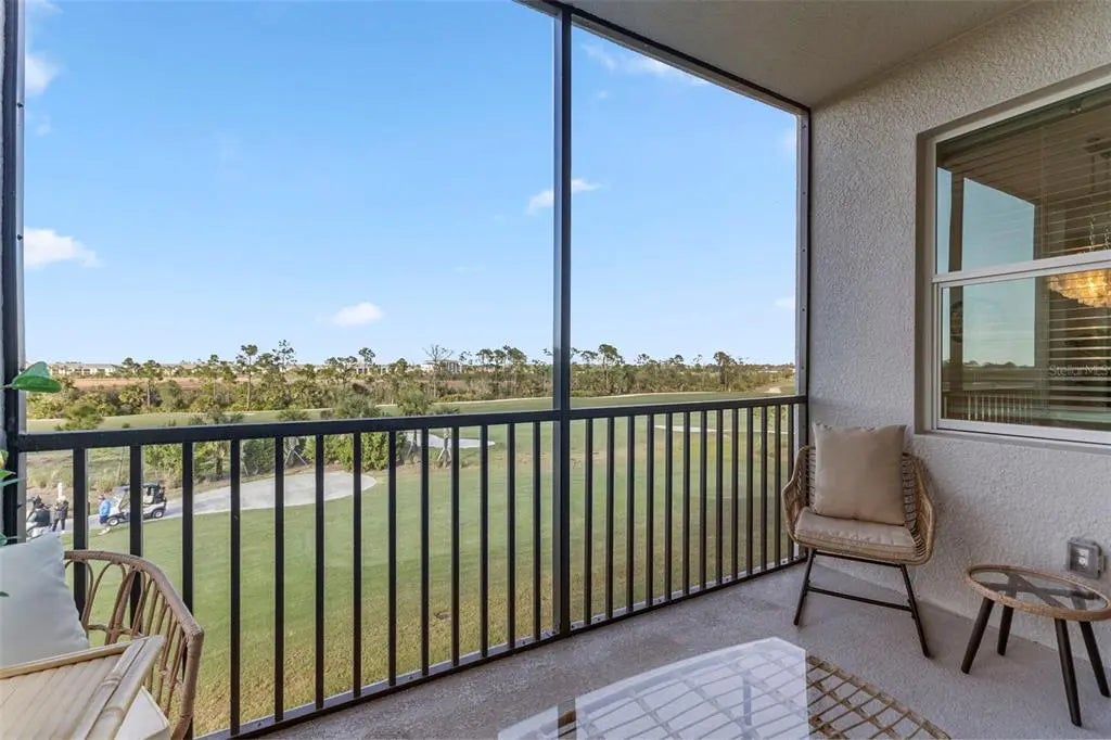 Located within the thoughtfully designed Wellen Park Golf and Country Club community, this GOLF DEEDED 2 bedroom and 2 bathroom condo, offers a refined condominium residence that balances modern design with low-maintenance living. Positioned on an upper floor, it has BEAUTIFUL VIEWS of the golf course. The unit also benefits from enhanced privacy and natural light, creating a bright and inviting interior. The open-concept floor plan is well suited for condominium living, with living and dining areas flowing seamlessly into the kitchen. Neutral finishes and clean architectural lines provide a cohesive and timeless aesthetic. The kitchen features contemporary cabinetry, generous counter space, and efficient workspace, accommodating both everyday use and casual entertaining. The main living area opens to a private outdoor space through sliding glass doors, extending the interior footprint and offering a comfortable setting for relaxation. Windows throughout the unit contribute to an airy feel while framing views of the surrounding community. The primary suite is designed for comfort and functionality, featuring ample closet storage and an en-suite bath with quality finishes. Additional sleeping and flex spaces are thoughtfully proportioned, allowing for guest accommodations or a home office. Bathrooms reflect a consistent design palette, contributing to the residence’s overall sense of cohesion. This condominium offers the convenience of maintenance-friendly ownership within a master-planned setting. Residents enjoy proximity to Wellen Park’s retail, dining, recreational paths, and community amenities, all integrated into the surrounding neighborhood. The location provides straightforward access to Venice beaches, downtown Venice, and major roadways. Whether intended for full-time occupancy or seasonal use, Unit 302 at 12320 Wellen Golf Street presents an opportunity to own a well-appointed condominium in a carefully planned community known for its connectivity and design. The residence delivers a practical layout, modern finishes, and an appealing setting that supports a variety of living needs.