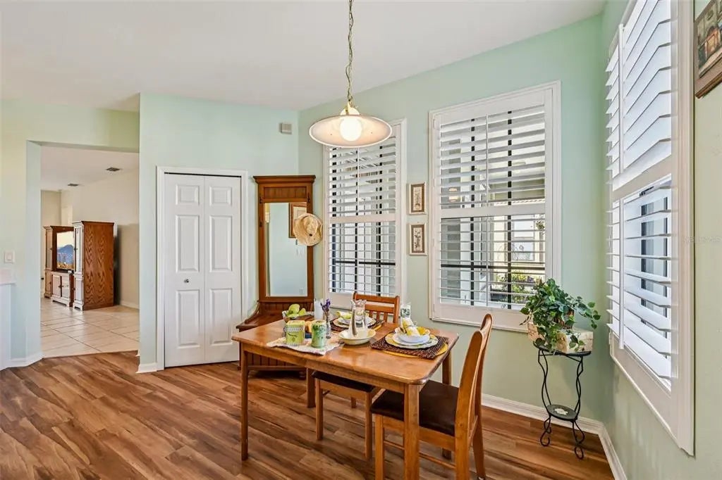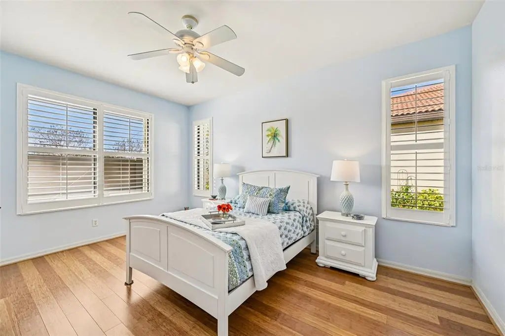 A 55+ community, all the activities and amenities you could imagine in this well maintained gated community! Charming two bed, two bath duplex with bonus room offering full hurricane protection and fabulous natural lighting provided by three gorgeous designer tub lighting to please its homeowner Florida’s natural light! This one will spoil the owner with its highly maintained property with a desirable sideload garage adding amazing curb appeal and an adorable welcoming screened in front porch area. Nothing was missed in this one and is the perfect seasonal home for peace of mind or full time with the extras already added for hurricane season. No worries here, just pull the accordion shutters together and lock them for safety…easy as it gets! Lanai has pebble tech and fabulous as it stretches across the back of the home. Primary bedroom offers two amazing walk-in closets and an ensuite bathroom. Primary bath is grand with natural lighting in the grand walk-in shower and double sinks and double walk-in closets! This one is special! Home offers THREE designer skylights making natural lighting abundant; one in the guest bath, one in the dining room and one in the kitchen……ENJOY the amazing Florida sunlight everyday naturally and amazingly! Bonus room offers space for a den or office or make it a special “whatever you want room”…..YOUR choice! Join in the many social program at community and make this your home with so much to do! NO CDD in this neighborhood! Close shopping, restaurants and the beach!! Historic downtown Venice and the New Downtown, Wellen Park and the Cool Today Baseball stadium within minutes to enjoy. Venetian Falls has a sprawling clubhouse and entertainment area that features heated lap pool and spa, unique resistance walking pool, exercise and fitness area, billiard room and social program! A full time activities director and on site management office make for ease of a fun lifestyle! Irrigation, lawn care, roof cleaning, exterior paint, cable tv and internet are all included in the modest monthly fee. NO CDD which is huge! Lots of close by shopping, restaurants and the beach!! Historic downtown Venice and the New growing Downtown area, Wellen Park and the Cool Today Baseball stadium offering a multitude of events within minutes of Venetian Falls!