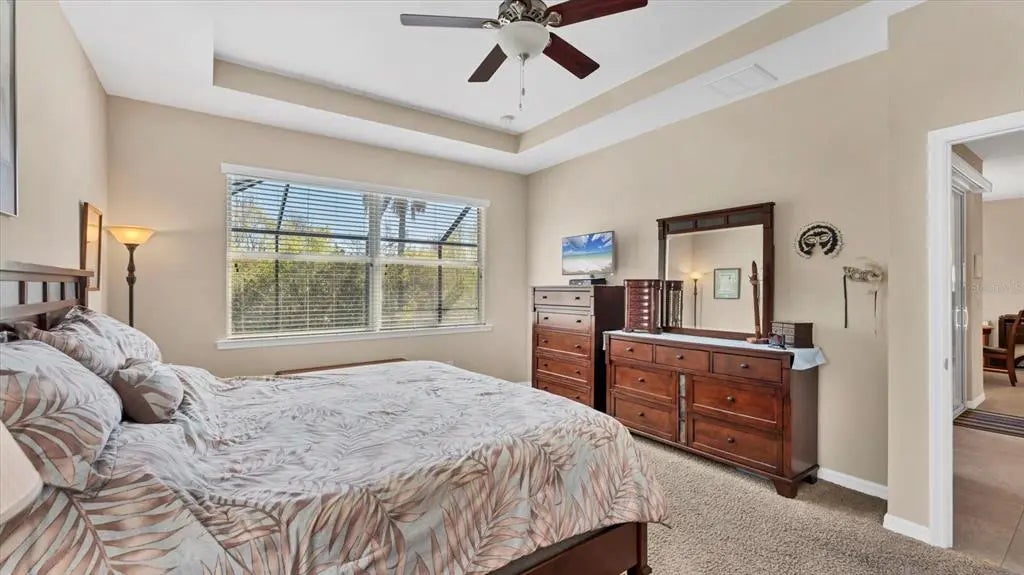 - Interior FeaturesCeiling Fan(s), High Ceilings, Open Floorplan, Primary Bedroom Main Floor, Split Bedroom, Thermostat, Tray Ceiling(s), Walk-In Closet(s), Window Treatments