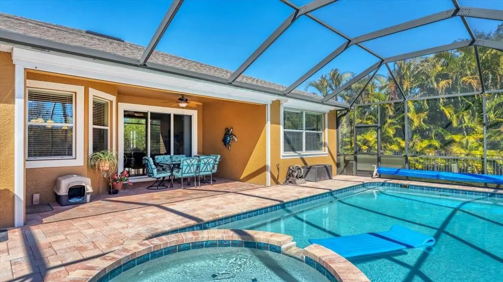 Welcome to your private Florida retreat in the gated community of Ventura Village. This beautifully maintained single-family home offers 2,426 square feet of living space, featuring 4 bedrooms, 3 full bathrooms, and a versatile office/den, ideal for today’s flexible lifestyles. A 3-car garage provides ample storage for vehicles, beach gear, and more. The heart of the home opens to a stunning outdoor oasis with a large saltwater swimming pool and spa, recently refinished and enhanced by a new pool pump, all set against a peaceful preserve backdrop that offers privacy and a serene natural setting. Beautiful wrought iron fencing surrounds the home, enhancing both security and curb appeal. Additional highlights include a newer roof, very low HOA dues (under $100/month), no CDD fees, and the peace of mind of a gated community. For beach lovers, Ventura Village is ideally located just minutes from Manasota Beach, Venice Beach, and Englewood Beach, and close to historic downtown Venice and Englewood, with easy access to restaurants, shopping, and local businesses. This home perfectly blends space, privacy, resort-style outdoor living, and an unbeatable location—an exceptional opportunity to enjoy the very best of Southwest Florida living.