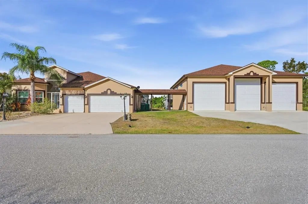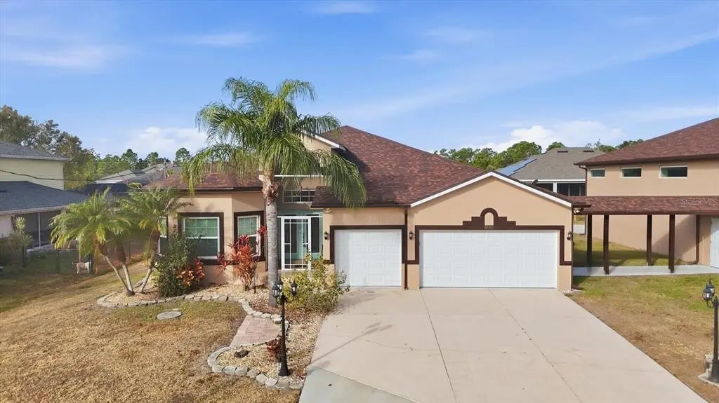 Attention home business owners, scar enthusiasts, collectors, and hobbyists. Located in desirable South Gulf Cove within Port Charlotte, this exceptional 4-bedroom, 3-bath, 3-car garage saltwaterpool home offers over 2,500 square feet of open-concept living plus a rare 2,500 sq ft detached workshop! Diagonal tile flows throughout the home, featuring a flexible dining/office space and a beautifully upgraded kitchen with custom cabinetry, under-cabinet lighting, a pot filler, an expansive island with a sink and dishwasher, a reverse osmosis system, and all appliances replaced in 2023. The split-bedroom layout provides privacy, while the primary suite includes dual quartz vanities and a spa-inspired sauna-style shower. Step outside to a 29-foot saltwater pool with waterfalls, app-controlled lighting, hurricane screens, and space for a future hot tub — designed for year-round Florida living. The 50x50 concrete block workshop is a true standout and a car collector’s dream, offering 15-foot ceilings, commercial hurricane-rated doors, epoxy flooring, welding outlets, reinforced vehicle paths, and RV/trailer parking. Ideal for car enthusiasts, hobbyists, business owners, or investors seeking secure storage and flexible workspace — including buyers relocating from northern climates. Minutes to boating and fishing in Charlotte Harbor, historic Boca Grande, and Gulf beaches. A rare opportunity combining lifestyle, functionality, and long-term value. Call for your private showing of this unique home today! MUST-SEE FEATURE SHEET.