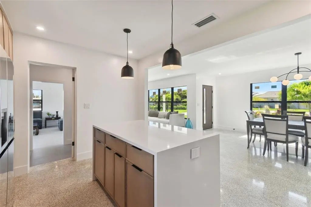 Indulge in the coastal allure of this exceptional 3-bedroom, 2-bathroom, home, ideally located on Venice Island just moments away from the sandy shores of Venice Beach. Immerse yourself in the laid-back elegance of this meticulously upgraded residence, where every detail reflects a commitment to quality and style. Approaching the property, you'll be captivated by the landscaping that sets the stage for a warm welcome. Step inside to experience the offering both an expansive and well-connected layout that is perfect for entertaining or just relaxing. The kitchen boasts high-end designer white oak cabinets, quarts counter tops, water fall island with seating, under-cabinet lighting, a quarts sink, full height glass tile backsplash, LG refrigerator with dual ice maker that makes round craft ice, Built in trash cans, magic blind corner cabinet, light rail, riser molding & high end cabinet hardware that is simple but elegant. Enjoy the convenience of new appliances throughout this well executed remodel all within an expanded layout that maximizes counter space & storage. Enjoy a good book or conversation with friends & family by the wood burning fire place in your living room. The large family room has a high-end white oak wet bar with floating shelves and a beverage & wine cooler that has a double door leading to 1000 sq. ft. paver patio creating a harmonious blend of indoor and outdoor living. Discover the master suite & Immerse yourself in luxury within the spa-like bathroom creating a serene and stylish atmosphere. The guest bedrooms, offer cozy retreats, while the updated guest bathroom provides modern amenities and style. The exterior area has undergone a stunning transformation with Florida friendly plants, Bismarck palm, Sylvester palm, Christmas palm, Foxtail palms trees, St. Augustine grass, new sprinkler system with a new pump for the well. The new Claudia hedge around the entire property will provide complete privacy with in a years time. Over the top outdoor lighting is new & lights up the property to enhance the beautiful landscape & key features of the building so you can enjoy the outdoor space at all hours. New hot tub and expanded lanai to add to the outdoor experience. This home is versatile & beyond luxury & prioritizes practicality. Updates include a aluminum new roof , all new electric wires & electric panel with led lights. Electric put under ground, Low E hurricane-rated doors & ESW Low E hurricane-rated windows. In a X zone, meaning no flood insurance is required. Sensonic ceiling bathroom exhaust fans with bluetooth speakers. New AC, New Hot water heater. New modern door hardware with smart locks. New LG front loader washer & Dryer. This residence embodies a perfect blend of style and safety. Located just blocks from Sharky's pier, 1 mile to service club park with beach access, and historic downtown Venice, this property positions you at the nexus of coastal living. Enjoy proximity to golf courses, the shimmering Gulf of Mexico, and the lively atmosphere of Venice's historic district. This home is a distinctive gem, offering a unique living experience in a coveted coastal destination.
