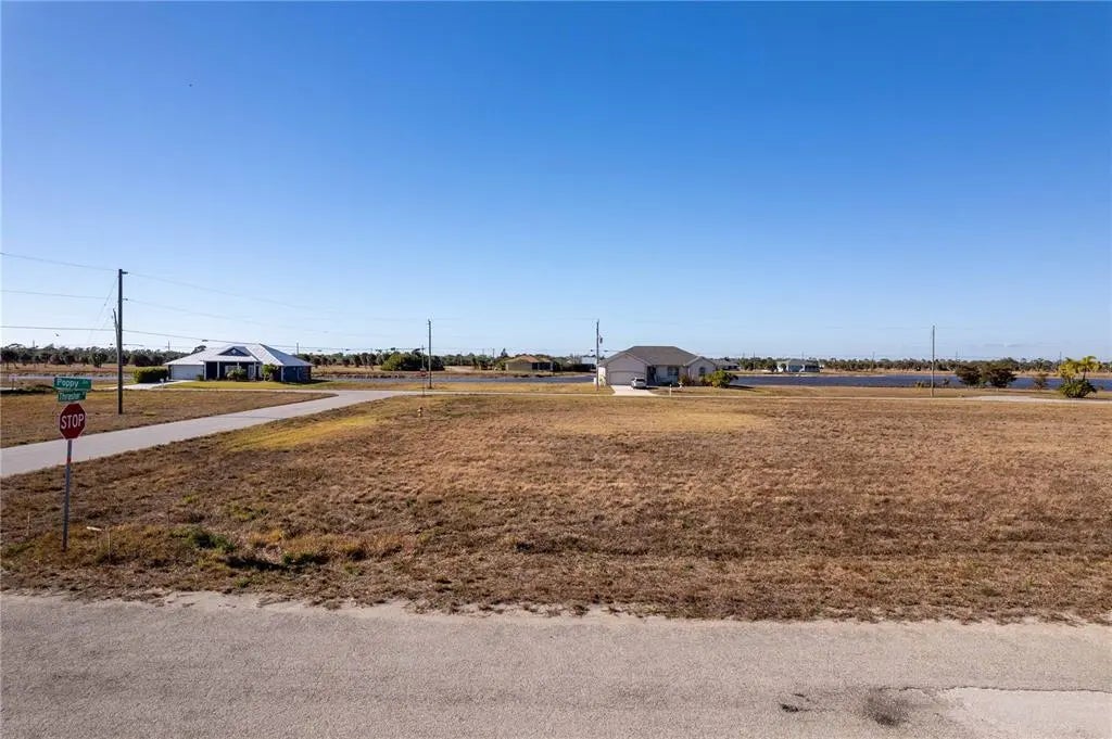 Build your custom Florida dream home on this cleared 0.192-acre, oversized corner lot at 1 Poppy Ln in Rotonda Meadows, Placida, showcasing expanded frontage and impressive street presence that sets it apart from standard interior homesites. The wider buildable area provides outstanding flexibility for larger floor plans, side-load or 3-car garage options, an extended driveway, and enhanced architectural design. A corner location also means only one immediate neighbor, more natural light, improved airflow, and easier access for your future pool or outdoor living construction. The generous size allows you to create a true resort-style backyard oasis with a pool, screened lanai, outdoor kitchen, fire pit, and tropical landscaping while still maintaining comfortable spacing and privacy. Enjoy the highly desirable NW rear exposure, delivering golden afternoon sun and breathtaking Southwest Florida sunsets over your future outdoor retreat. Located in one of SWFL’s growing communities, this corner property offers both presence and possibilities for your custom coastal lifestyle. Public water and sewer are available, and new construction throughout the community supports strong future value. City water and sewer are available and serviced by Charlotte County and electricity as well while serviced by Florida Power & Light. All public roads are paved by Count Government. No Scrub Jay permit is required. Rotonda Meadows is a deed-restricted community with a low HOA fee of approximately $145 per year, offering a clean, well-maintained neighborhood while still allowing flexibility in home design. Surrounded by six nearby golf courses and renowned for world-class tarpon fishing, this location offers unforgettable sunsets, abundant outdoor recreation, and an active Southwest Florida lifestyle year-round. Comparable homes in the area average around half million dollars, making this a strategic opportunity in a growing market. Enjoy the Southwest Florida lifestyle just minutes from Boca Grande, Gasparilla Island, Don Pedro Island, Manasota Key, and Stump Pass Beach State Park. Nearby amenities include boating, fishing, kayaking, golf courses, marinas, shopping, dining, and medical facilities. Easy access to Gasparilla Road, FL-776, I-41, and I-75 connects you quickly to Venice, Sarasota, Fort Myers, Tampa, and Southwest Florida International Airport. This is a true blank canvas in a peaceful, growing coastal community. Secure your slice of Southwest Florida paradise today and start planning your custom coastal retreat!