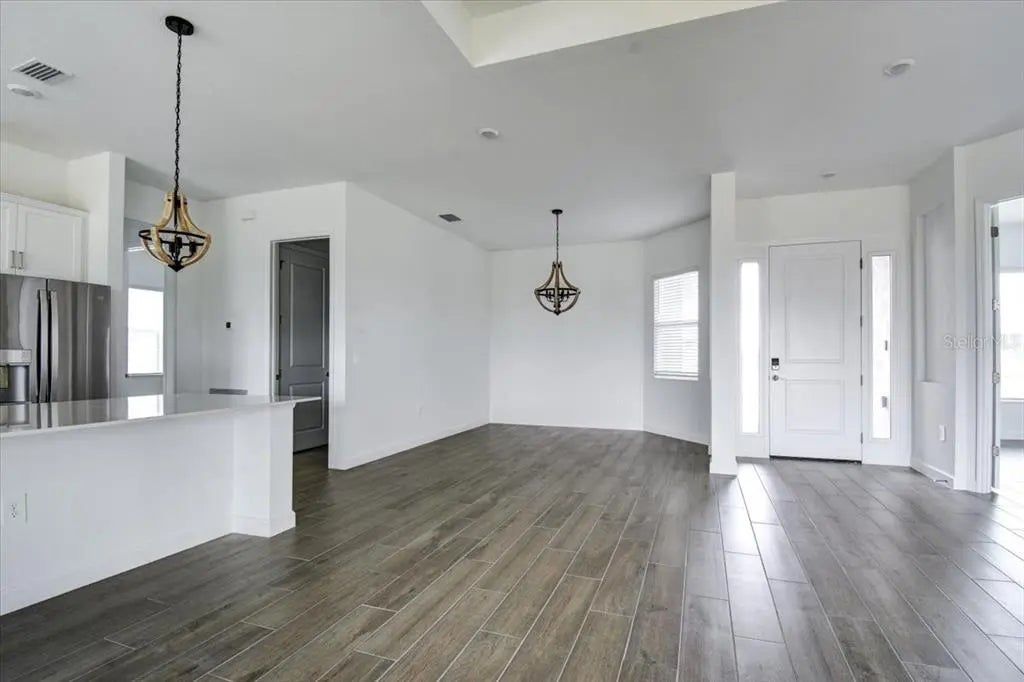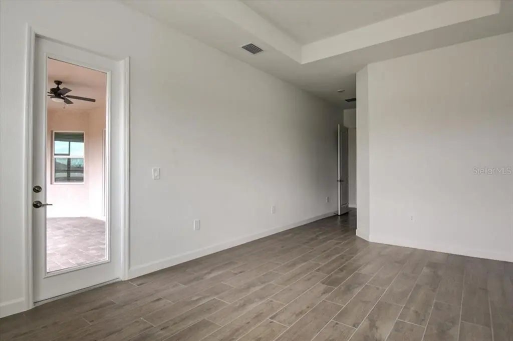 - Interior FeaturesEating Space In Kitchen, High Ceilings, Kitchen/Family Room Combo, Solid Surface Counters, Split Bedroom, Tray Ceiling(s), Walk-In Closet(s)