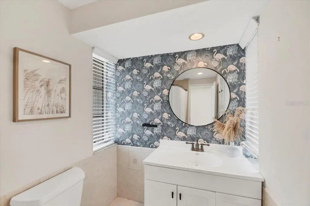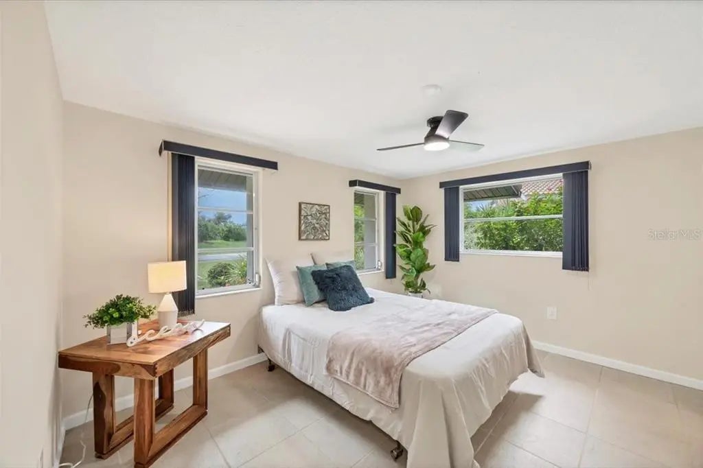 - Interior FeaturesCeiling Fan(s), Solid Surface Counters, Solid Wood Cabinets, Thermostat, Walk-In Closet(s), Window Treatments
