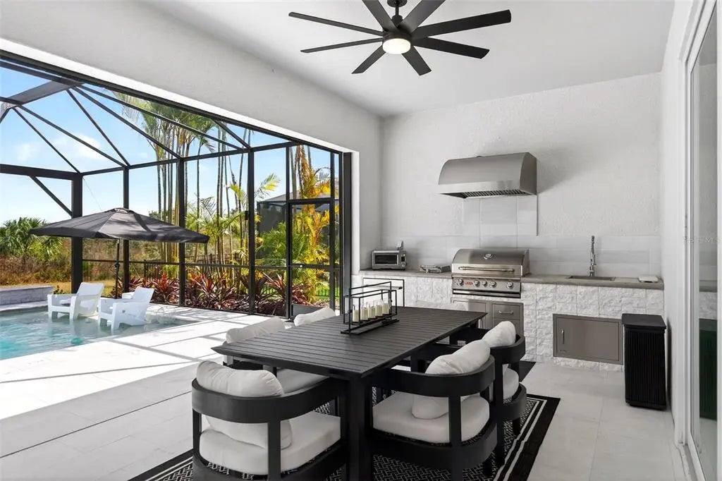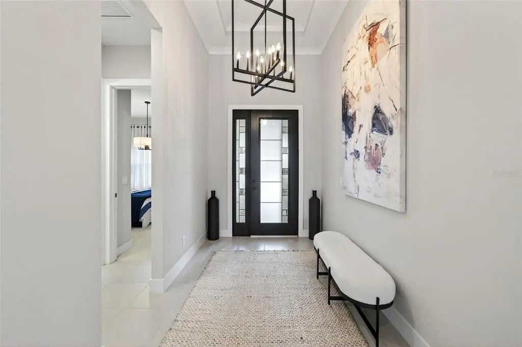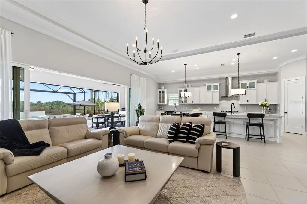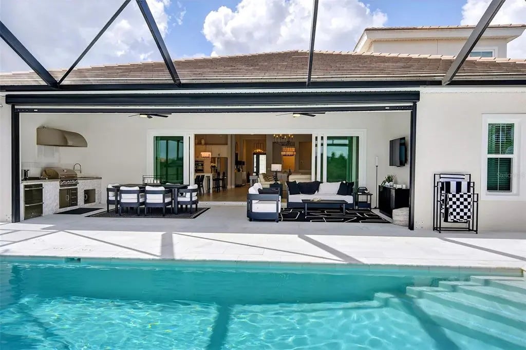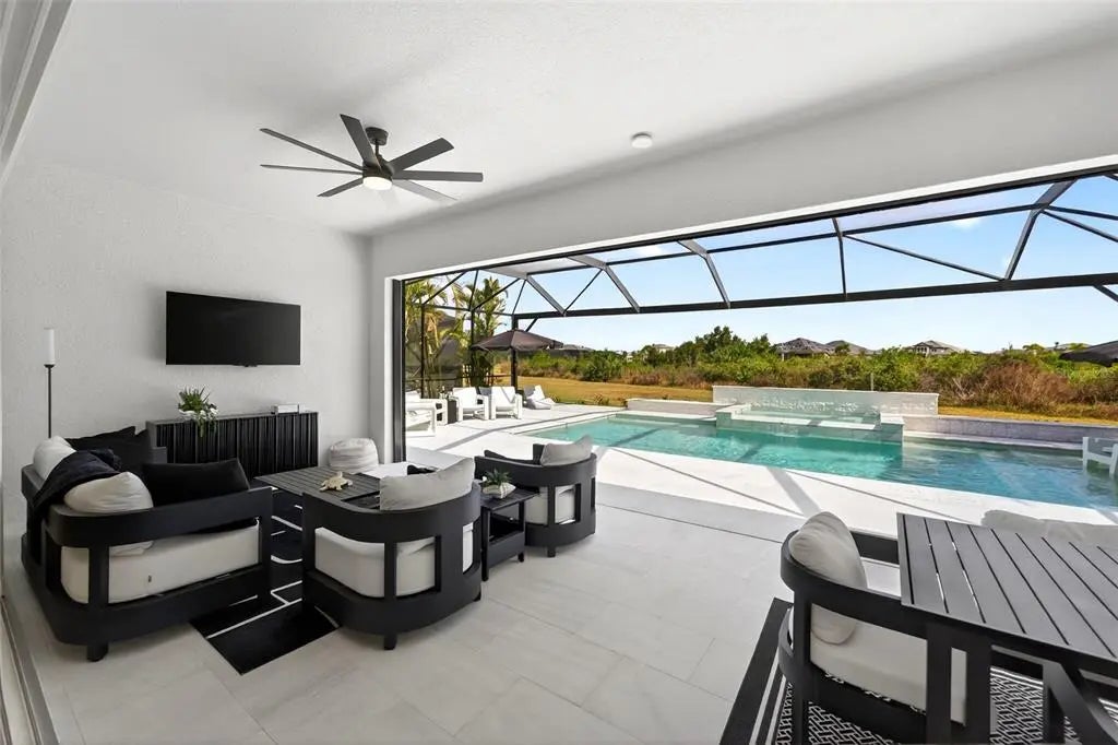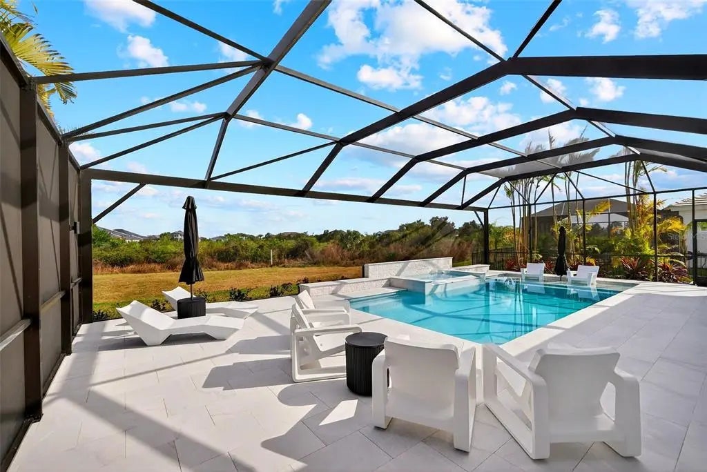 Modern design, natural light, and a seamless indoor–outdoor flow define this beautifully finished home in the gated community of Everly, in Wellen Park. The open-concept great room features tray ceilings, recessed lighting, and expansive views that draw your eye straight to the lanai and pool area. Soft tones and refined finishes create a warm, welcoming atmosphere throughout. The kitchen serves as the heart of the home, offering a large quartz-topped island, stainless steel appliances, and generous cabinetry. Its open layout makes gathering effortless, whether you’re entertaining or enjoying a quiet evening in. The primary suite provides a peaceful retreat with a spa-inspired ensuite and a spacious walk-in closet. Additional bedrooms are bright and versatile, perfect for guests or flexible living needs. Step outside to your private sanctuary: a gorgeous 15x31.5 heated salt-water pool with spa, surrounded by lush landscaping and a covered lanai ideal for lounging, dining, or unwinding after a long day. The outdoor space transforms everyday living into a resort-style experience. Set within the vibrant community Wellen Park, you’ll enjoy access to trails, amenities, dining, shopping, and the lively atmosphere of Downtown Wellen—everything you need for year-round enjoyment.