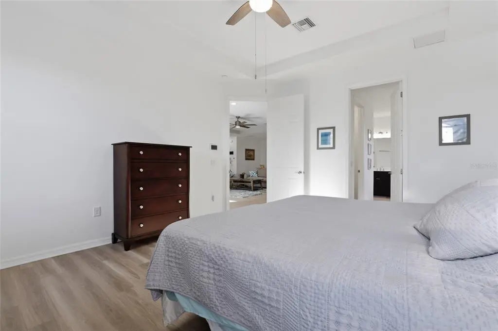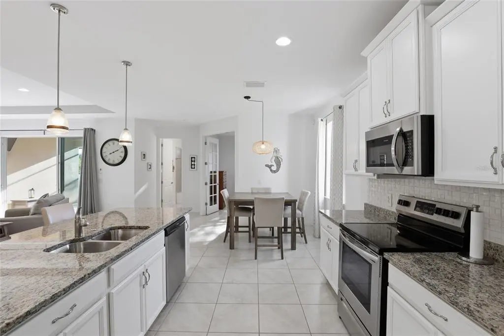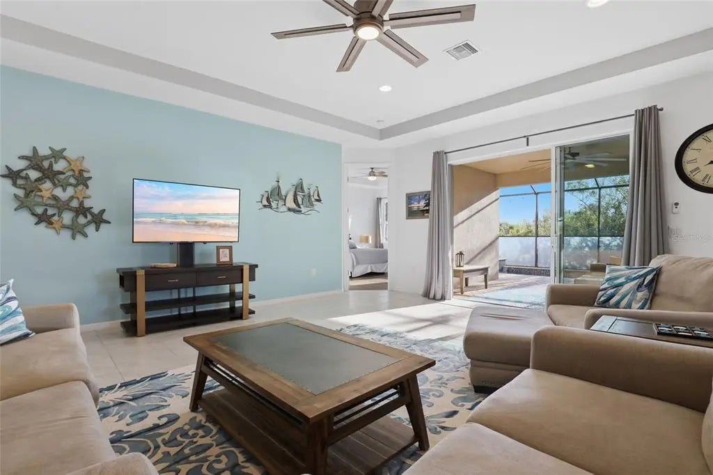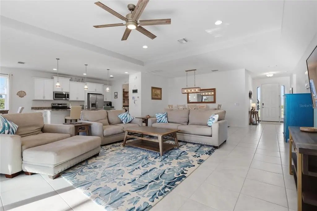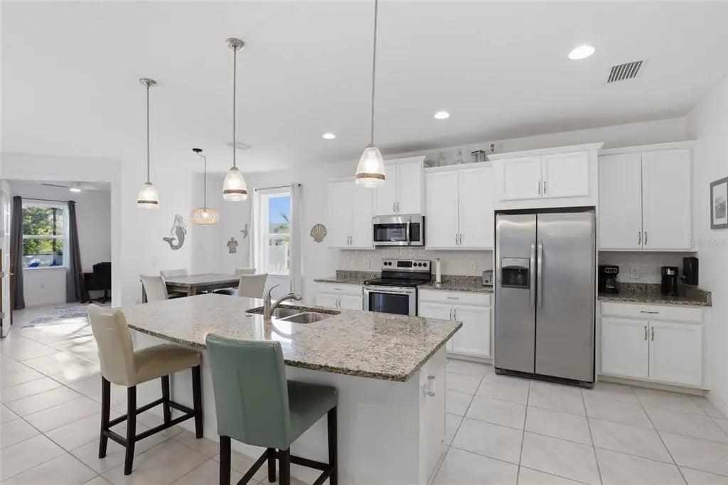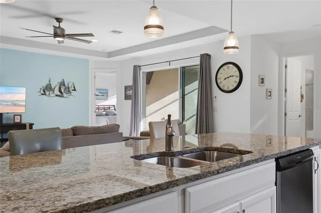 Located in the highly desirable waterfront and boating community of South Gulf Cove, this 3 bedroom + office, 3 bathroom pool home at 14879 Wichita Road in Port Charlotte, Florida offers nearly 2,400 square feet of well-designed living space, a 3-car garage, and the ultimate Florida indoor-outdoor lifestyle just minutes from Boca Grande and the Gulf beaches. Designed with an open concept layout and soaring tray ceilings, the main living area flows seamlessly into the kitchen and outdoor living space, creating the ideal setting for both everyday living and entertaining. The chef’s kitchen features a large granite island, stainless steel appliances, pantry, and ample cabinet space, all positioned at the heart of the home. The split floor plan provides privacy, with two guest bedrooms and a full bathroom at the front of the home, while the spacious primary suite is tucked away in the rear, offering dual walk-in closets, double vanities, a garden tub, separate shower, and private water closet. A dedicated office or flex room with an adjacent full bath provides the perfect setup for a home office, guest suite, or additional bedroom. Step outside to your private resort-style lanai where a 35-foot heated saltwater pool with a beach entry and an elevated spa with waterfall feature creates a true backyard oasis. The covered lanai and multiple lounging areas make this space ideal for relaxing or hosting year-round. Additional features include a large 3-car garage with room for vehicles, storage, or hobbies, an interior laundry room with additional storage, and a turnkey furnished option for immediate enjoyment or seasonal use. South Gulf Cove is a growing waterfront community offering a public boat ramp, parks, and easy access to the Myakka River, Charlotte Harbor, and the Gulf of Mexico, making it a prime location for boating and fishing enthusiasts. Conveniently located near Englewood Beach, Boca Grande, multiple golf courses, shopping, dining, and entertainment, this home places you in the center of everything Southwest Florida has to offer. If you're searching for a move-in ready pool home in Port Charlotte with space, functionality, and access to Florida’s best coastal lifestyle, this property stands out as one of the best values in South Gulf Cove. LOW ASSUMABLE FLOOD POLICY