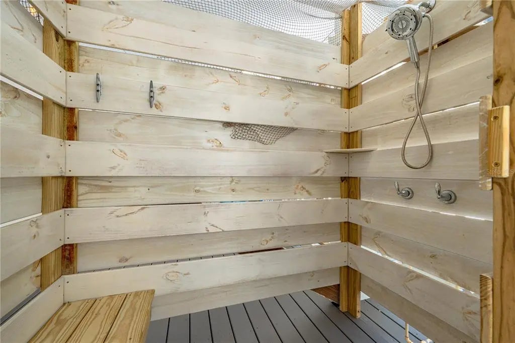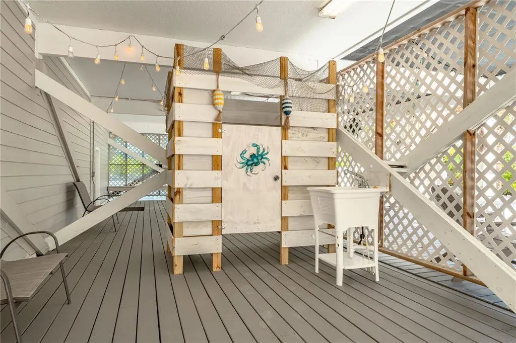 - Exterior FeaturesBalcony, French Doors, Hurricane Shutters, Lighting, Outdoor Shower