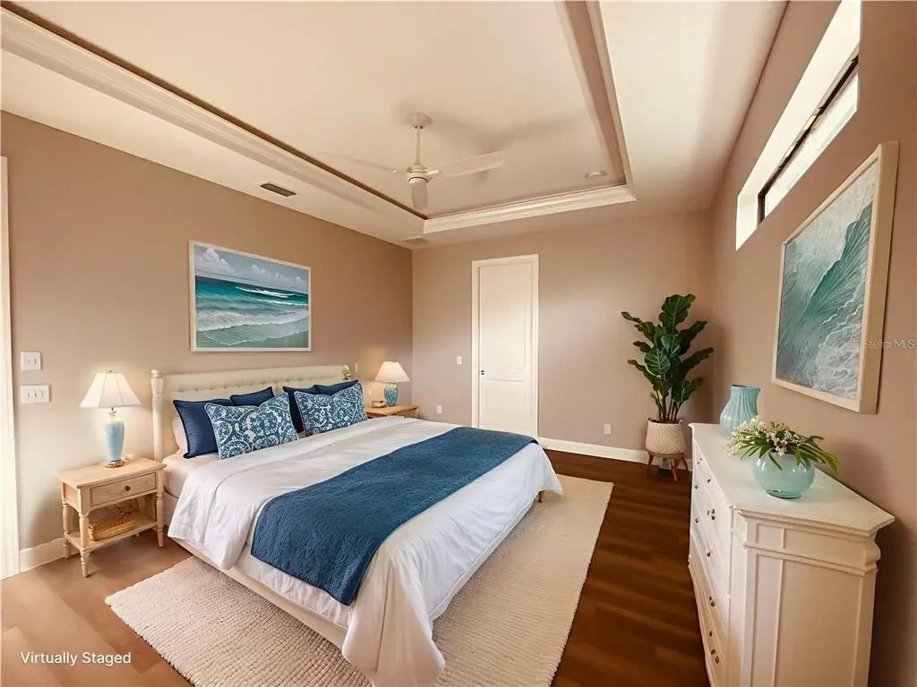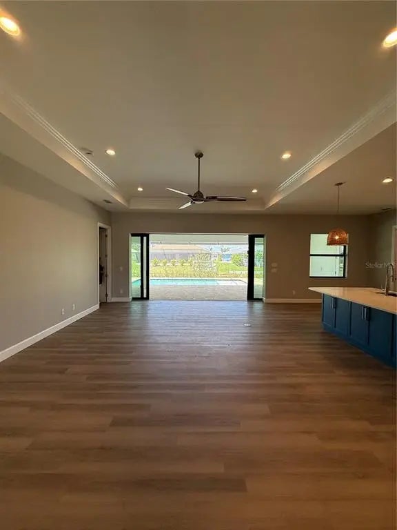 - Interior FeaturesCeiling Fan(s), Coffered Ceiling(s), Eating Space In Kitchen, High Ceilings, Open Floorplan, Solid Surface Counters, Split Bedroom, Tray Ceiling(s), Walk-In Closet(s)