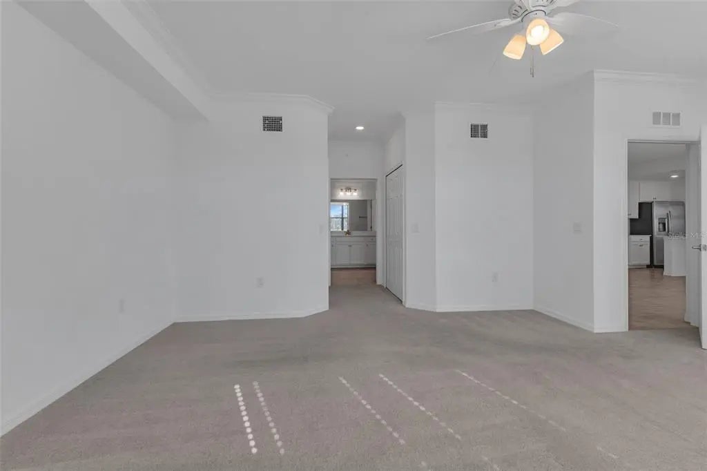 - Interior FeaturesCeiling Fan(s), Crown Molding, High Ceilings, Living Room/Dining Room Combo, Open Floorplan, Primary Bedroom Main Floor, Solid Surface Counters, Split Bedroom, Walk-In Closet(s), Window Treatments
