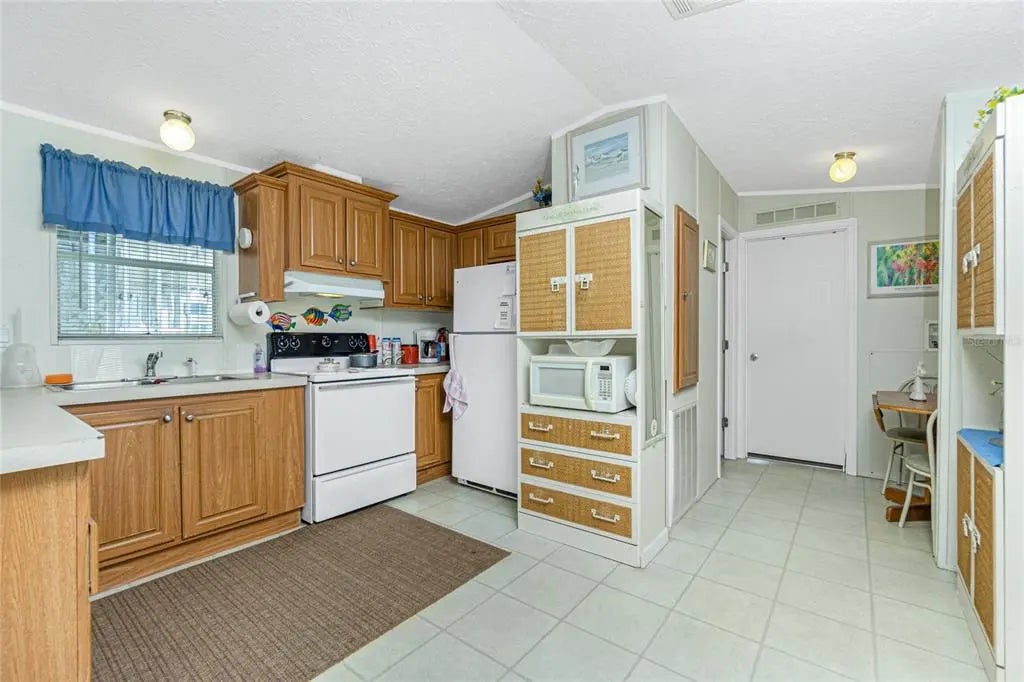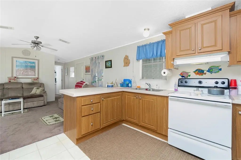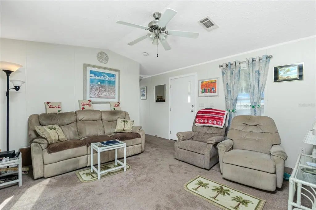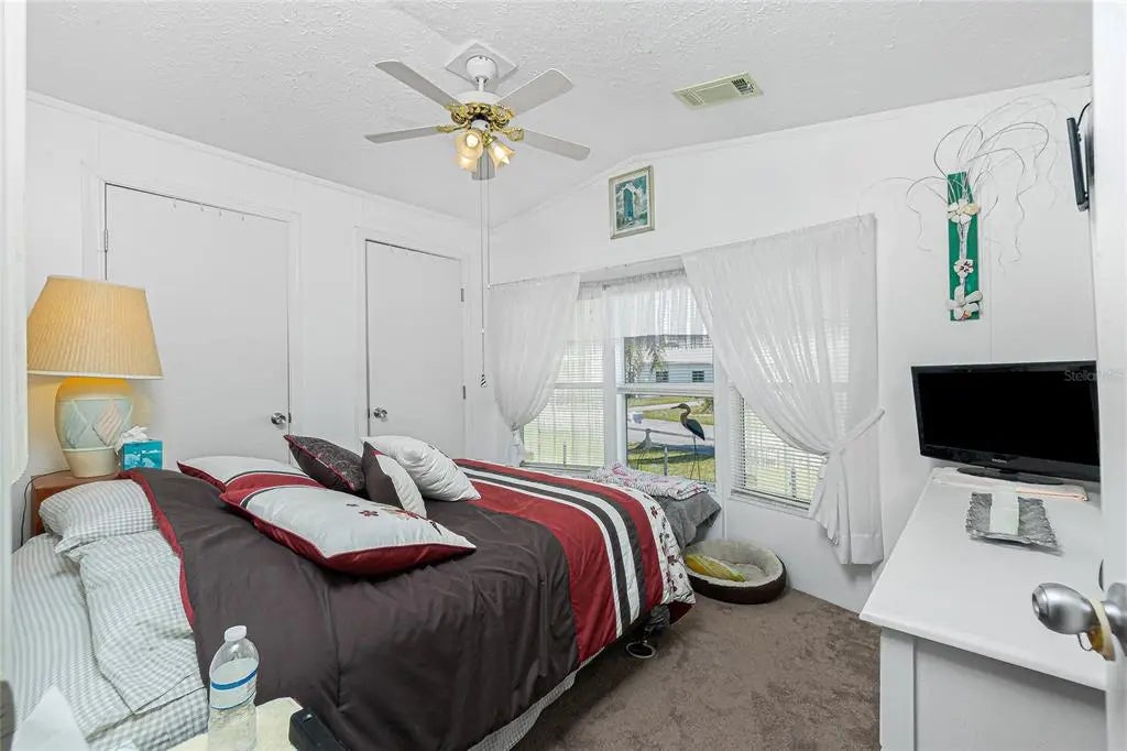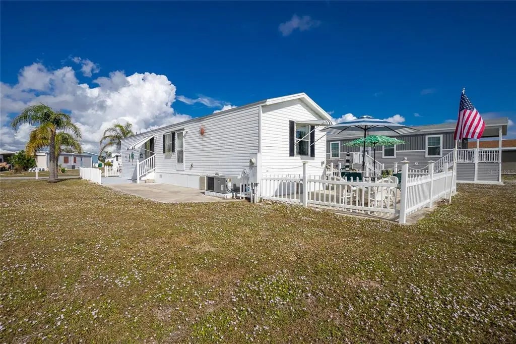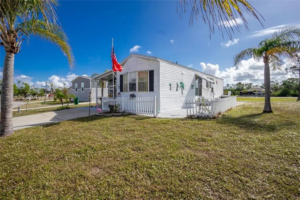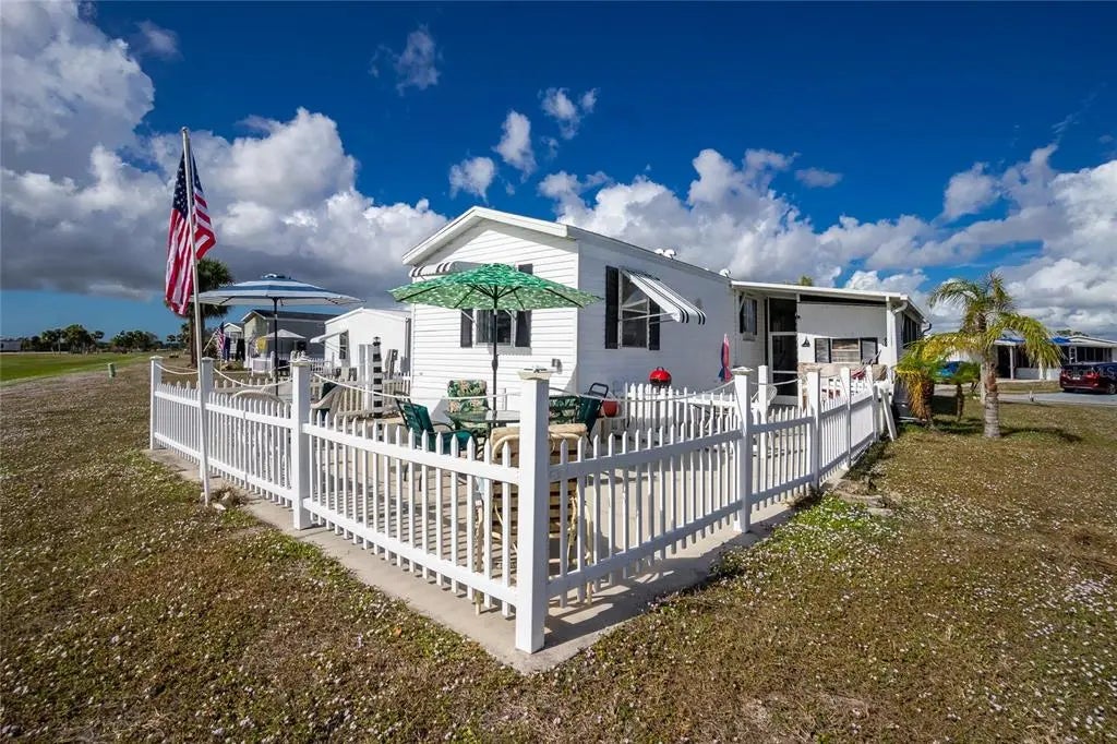 MOTIVATED SELLER PRICE REDUCED ON THIS 2005 Manufactured Home! Welcome to the friendly WATERFRONT COMMUNITY, the Village of Holiday Lake. This WATERVIEW PROPERTY is a 2 bedroom / 2 bath, SPLIT FLOOR PLAN with CATHEDRAL CEILINGS. The kitchen offers plenty of cabinets and counterspace for the cook and is open to the living room. Step out to the back patio you will get that feeling that it is the perfect place for enjoying morning coffee or afternoon cocktails while watching the boats go by or the evening sun set. This home is light and bright inside and comes TURNKEY, FURNISHED, all you need is your cloths and toothbrush! The ROOF is a 2022 and the AC is 2023. The Village of Holiday Lake boasts 25+ boat slips providing water access to the Gulf, beautiful pool area with 2 POOLS and BBQ area. There is always something going on at the large recreation hall with full kitchen, craft room, FITNESS CENTER, laundry facility along with areas for woodworking, tennis, PICKLEBALL, shuffleboard and more. GOLF CARTS WELCOME. The outdoor enthusiast in you will love the closeness of boating and fishing from the community docks and boat ramp. You will also find several Gulf Shore Beaches close by. The foodie in you will love the local delights like Gerry’s Tiki Hut, TT’s Tiki on the Water and the Sandbar Tiki & Grill all of which can be accessed by boat or by car. The Village is perfect for year round living or a winter get away spot.