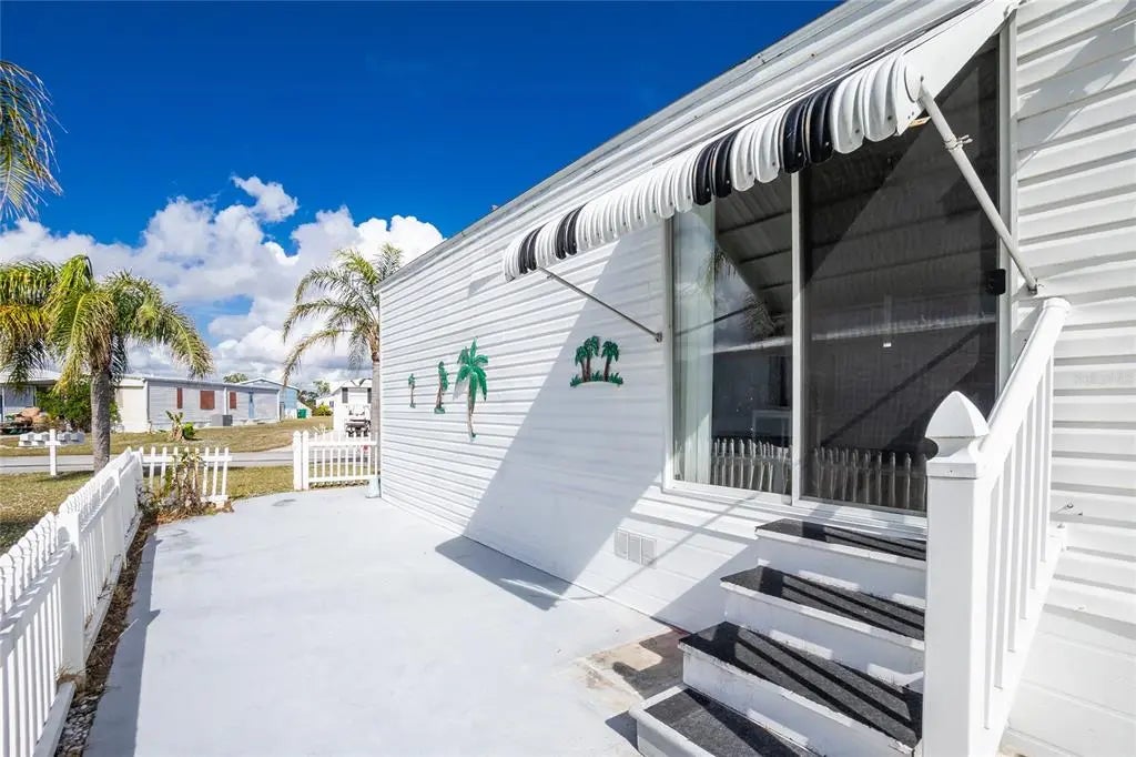 - Exterior FeaturesAwning(s), Hurricane Shutters, Lighting, Sliding Doors, Storage
