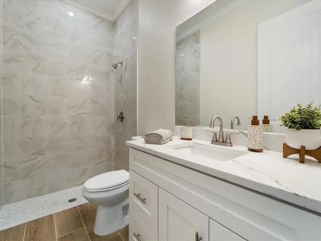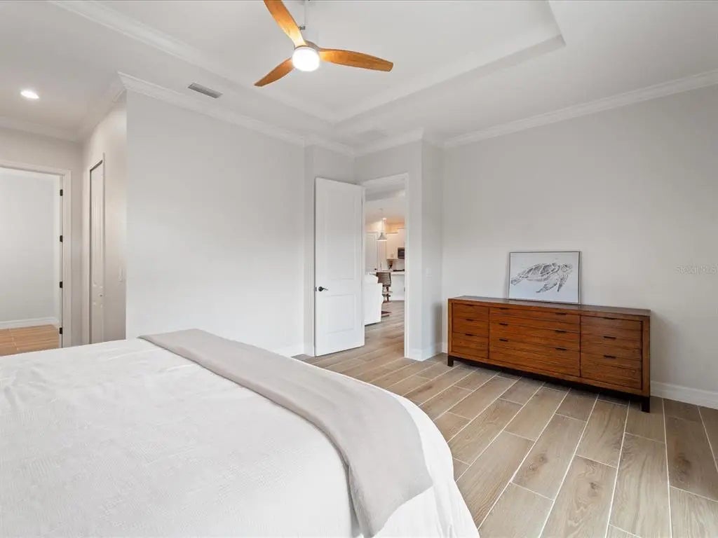 - Interior FeaturesCeiling Fan(s), Crown Molding, High Ceilings, Open Floorplan, Primary Bedroom Main Floor, Split Bedroom, Stone Counters, Tray Ceiling(s), Walk-In Closet(s)