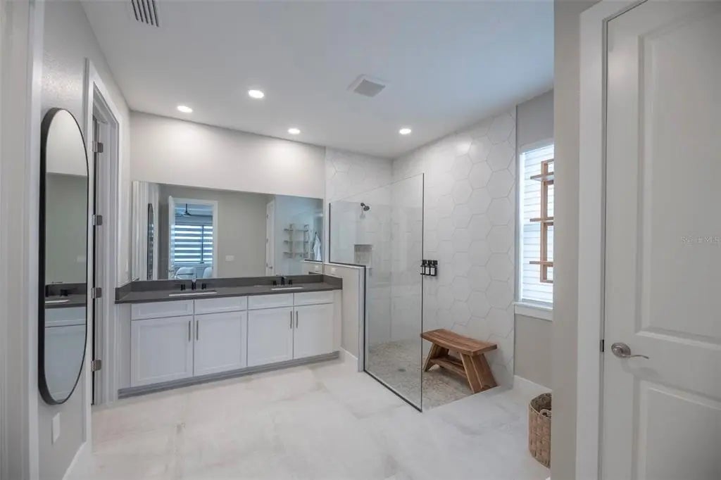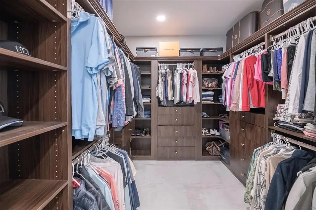 - Interior FeaturesCrown Molding, High Ceilings, In Wall Pest System, Kitchen/Family Room Combo, Open Floorplan, Primary Bedroom Main Floor, Smart Home, Solid Surface Counters, Solid Wood Cabinets, Thermostat, Tray Ceiling(s), Walk-In Closet(s), Wet Bar