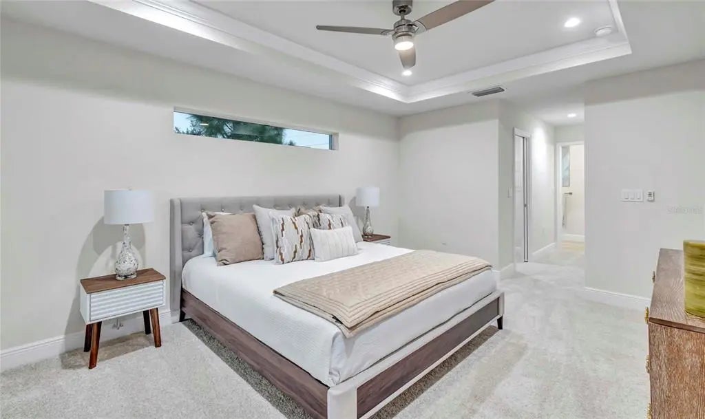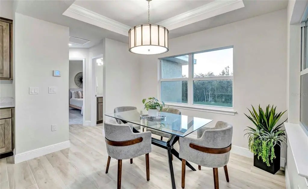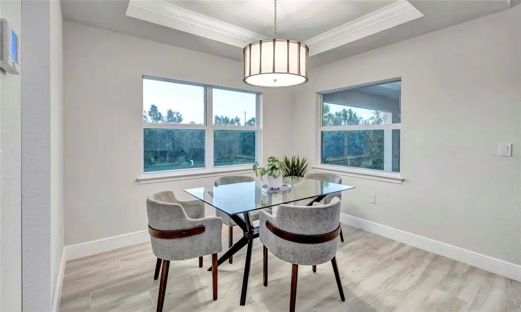 - Interior FeaturesCoffered Ceiling(s), In Wall Pest System, Open Floorplan, Primary Bedroom Main Floor, Solid Surface Counters, Solid Wood Cabinets, Split Bedroom, Tray Ceiling(s)
