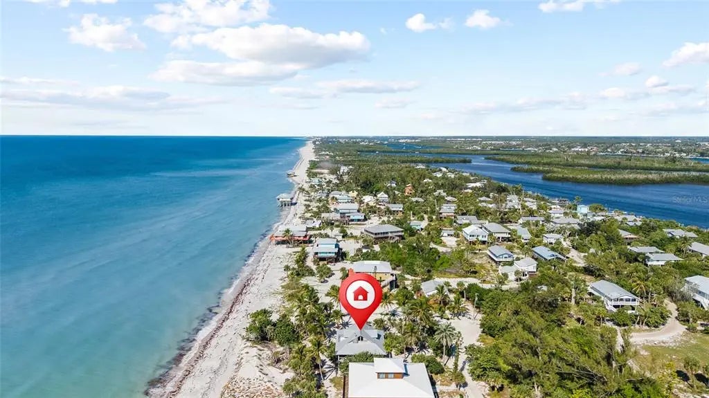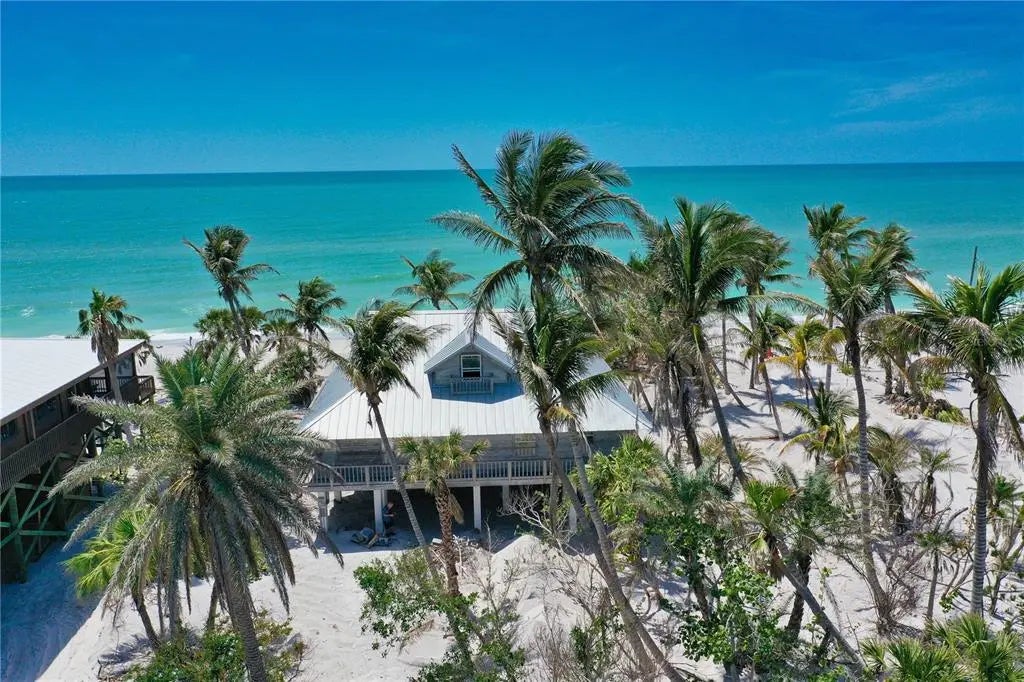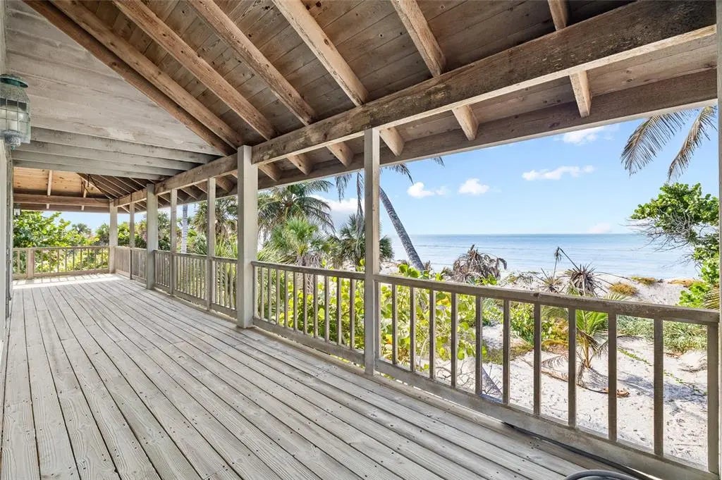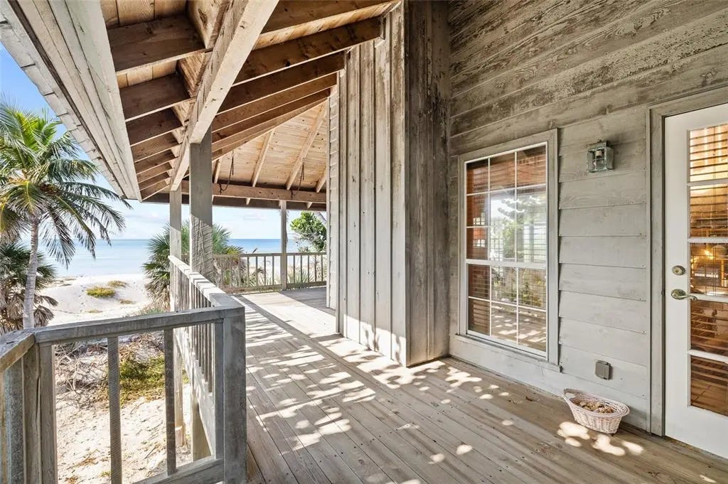 Under contract-accepting backup offers. Private Beachfront Bungalow on Little Gasparilla Island – Your Island Paradise Awaits! Escape to your own slice of heaven with this stunning gulf-front 3 bedroom, 3 bathroom bungalow on a sprawling ½-acre lot on car-free Little Gasparilla Island. Accessible only by private boat or water taxi, this is your exclusive island retreat where tranquility meets adventure. Step inside to the warm, inviting interior featuring enticing wood plank walls, sleek tile floors, and a soaring open beam vaulted ceiling in the large central great room highlighted by knotty pine tounge and groove walls. A wood-burning fireplace sets the perfect ambiance, while expansive windows frame breathtaking beach and Gulf views. The full kitchen boasts custom wood cabinets, with full laundry room adding convenience. This home comes fully furnished—ready for you to move in and start living your island dream. Outside, a full wrap-around deck invites you to soak in incredible sunsets and listen to the soothing waves. Watch the Gulf sparkle from the upper deck or stroll the pristine beach collecting shells and shark’s teeth. Dive into endless activities—swimming, snorkeling, boating, kayaking, fishing, paddle boarding, and more—all from your private oasis. With no cars to disturb the peace, this bungalow offers unmatched serenity and natural beauty. Don’t miss your chance to own this furnished island getaway—schedule your private tour today and claim your piece of paradise!