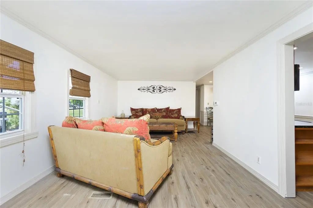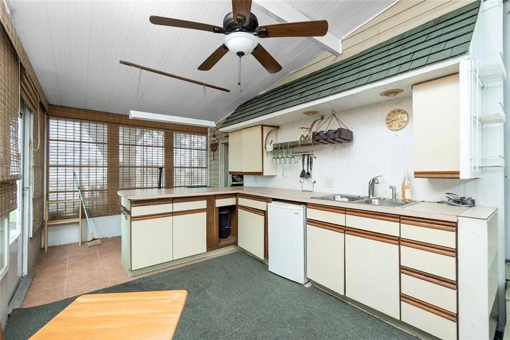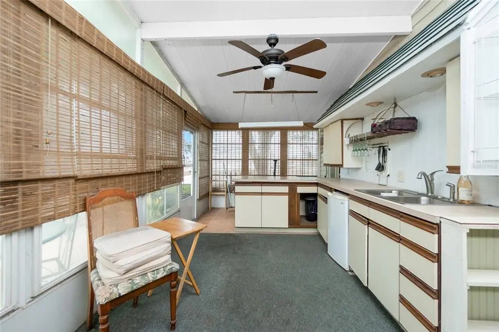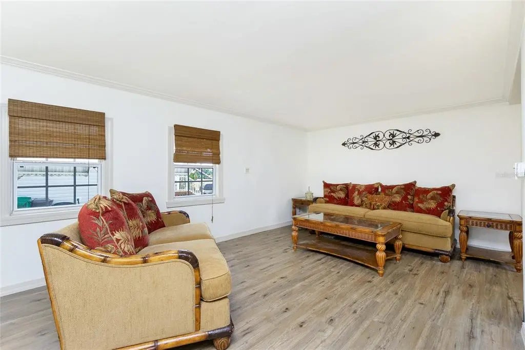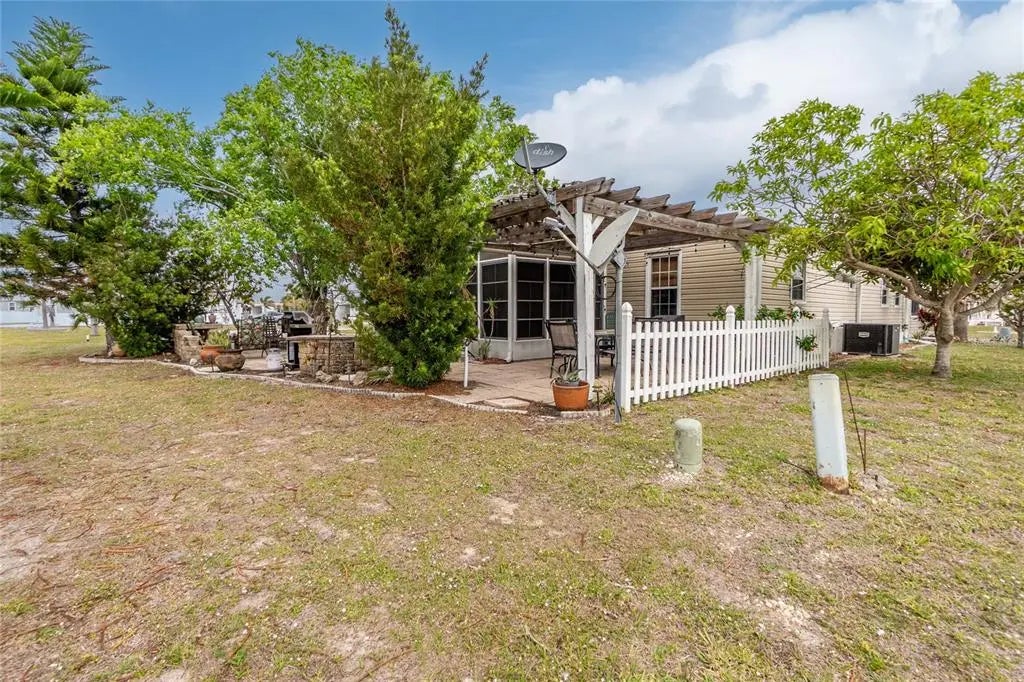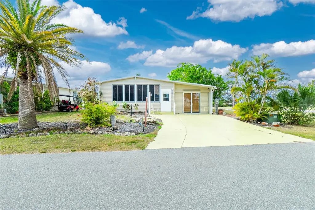 This gem offers an exquisite blend of comfort, style, and convenience. This home offers 2 bedrooms, 2 baths, 2 KITCHENS and in addition to the living room you have a FAMILY ROOM and a DEN. The high ceilings create a sense of spaciousness, making your home feel grand and open. The KITCHEN OFFERS MODERN UPGRADES that enhance both style and functionality which include a decorative backsplash, modest breakfast counter, lots of cabinets for storage, GRANITE COUNTERTOPS and STAINLESS STEEL APPLIANCES, PANTRY CLOSET. Here you will have your choice of sitting areas between a formal living room, family room or den area. The large master suite has a large closet and an ensuite bathroom with shower. The spacious guest bedroom has double wall closets and offers a private exit to the Lanai and patio which is sure to please visiting friends and family. The guest bath has a vanity with a sufficient amount of counter space and a step-up shower. There is an attached utility room that houses the laundry facility, separate workshop, den and storage areas. The possibilities are endless whether you’re looking for a workshop, craft room, storage area or den, here you will find plenty of options to make it your own space. Furniture in the home will stay. Experience unparalleled peace and privacy at this one-of-a-kind lanai and outdoor space featuring a second kitchen giving you the ability to prep, cook and host at the same time making your backyard and lanai much more usable. Having this type of kitchen area makes entertaining more fun for both you and your guests. Instead of having to prepare food indoors while guests enjoy the outdoors, you can be a part of fun. OTHER UPDATES INCLUDE: ROOF (2023), some new SUBFLOORS, LAMANITE FLOORING, VAPOR BARRIER ( 3 Years Old). FINISHED WALLS & CROWN MOLDING. The Village of Holiday Lake offers an array of resort-style amenities. The expansive clubhouse with a full kitchen serves as the focal point for community gatherings, dinners and dances. The Village boasts 25+ boat slips, beautiful pool area with 2 pools and BBQ area. In addition you will find a craft room, FITNESS CENTER and laundry facility along with areas for woodworking, tennis, PICKLEBALL, shuffleboard and more. GOLF CARTS WELCOME. The outdoor enthusiast in you will love the closeness of boating and fishing from the COMMUNITY DOCKS and BOAT RAMP. You will also find several Gulf Shore Beaches close by. The foodie in you will love the local delights like Gerry’s Tiki Hut, TT’s Tiki on the Water and the Sandbar Tiki & Grill all of which can be accessed by boat or by car. The Village is perfect for year round living or a winter get away spot.