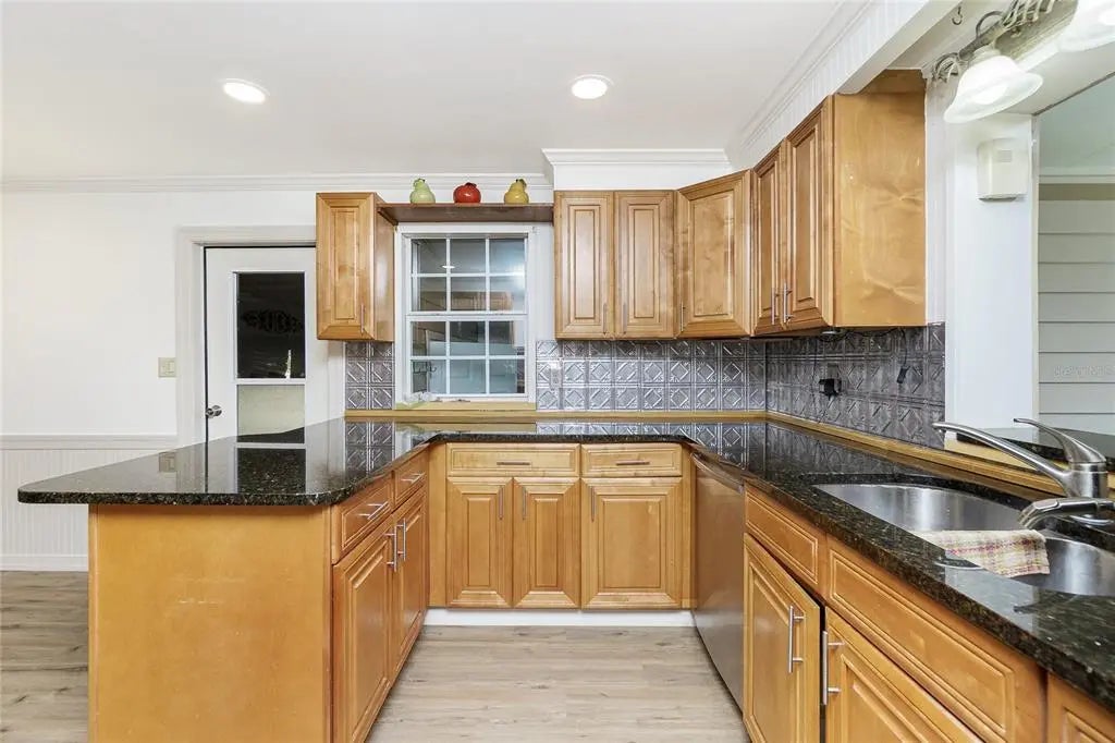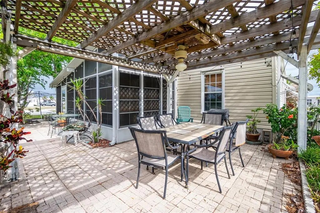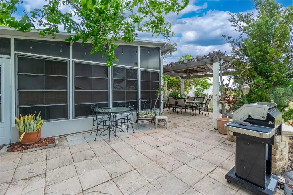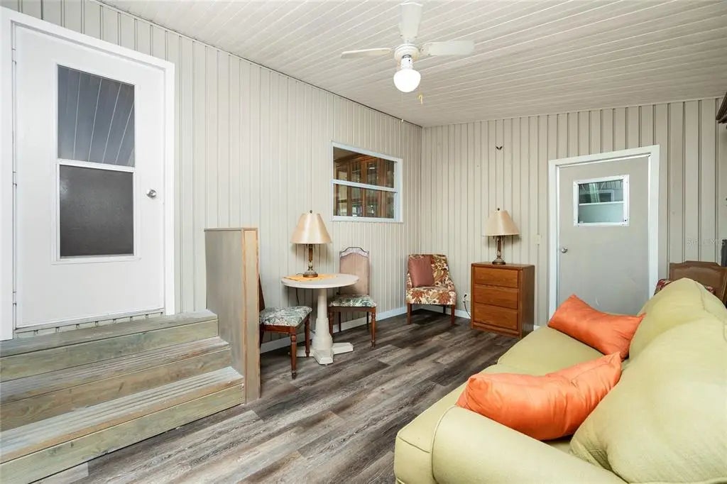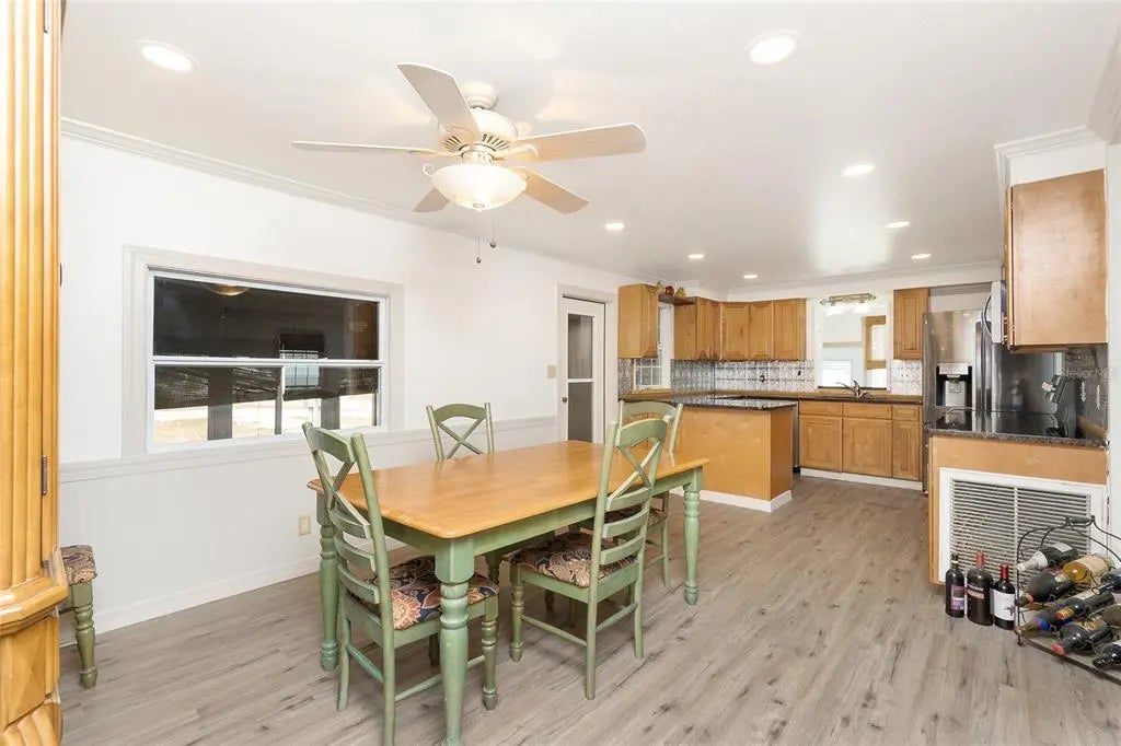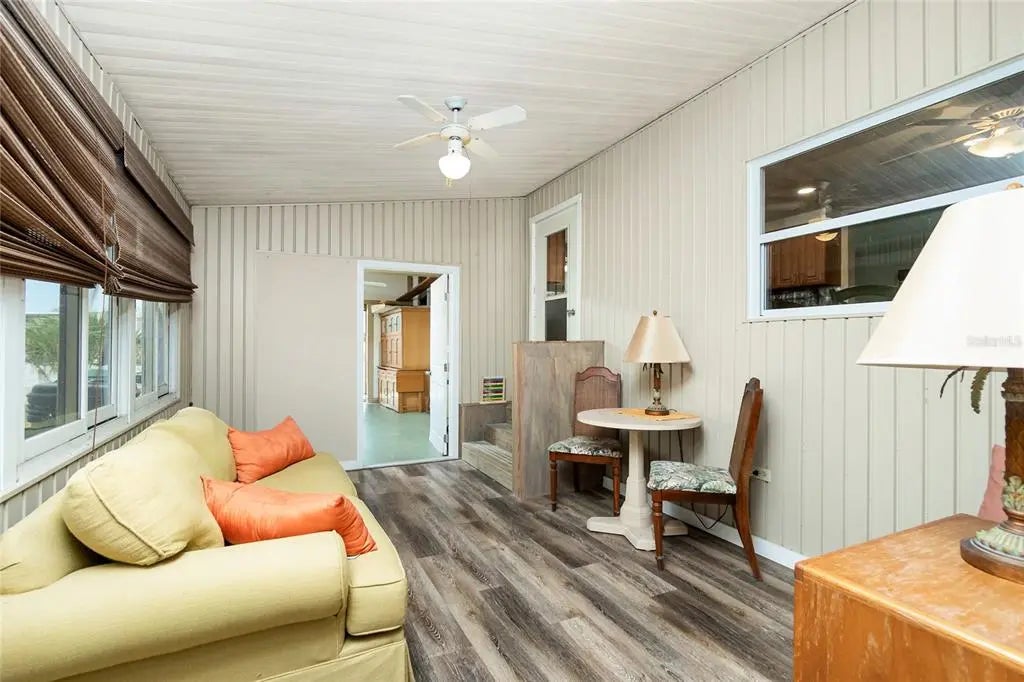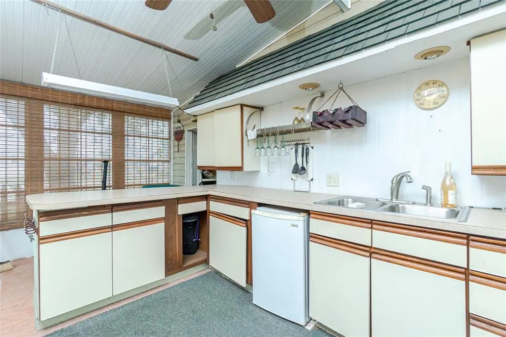 This gem offers an exquisite blend of comfort, style, and convenience. This home offers 2 bedrooms, 2 baths, 2 KITCHENS and in addition to the living room you have a FAMILY ROOM and a DEN. The high ceilings create a sense of spaciousness, making your home feel grand and open. The KITCHEN OFFERS MODERN UPGRADES that enhance both style and functionality which include a decorative backsplash, modest breakfast counter, lots of cabinets for storage, GRANITE COUNTERTOPS and STAINLESS STEEL APPLIANCES, PANTRY CLOSET. Here you will have your choice of sitting areas between a formal living room, family room or den area. The large master suite has a large closet and an ensuite bathroom with shower. The spacious guest bedroom has double wall closets and offers a private exit to the Lanai and patio which is sure to please visiting friends and family. The guest bath has a vanity with a sufficient amount of counter space and a step-up shower. There is an attached utility room that houses the laundry facility, separate workshop, den and storage areas. The possibilities are endless whether you’re looking for a workshop, craft room, storage area or den, here you will find plenty of options to make it your own space. Furniture in the home will stay. Experience unparalleled peace and privacy at this one-of-a-kind lanai and outdoor space featuring a second kitchen giving you the ability to prep, cook and host at the same time making your backyard and lanai much more usable. Having this type of kitchen area makes entertaining more fun for both you and your guests. Instead of having to prepare food indoors while guests enjoy the outdoors, you can be a part of fun. OTHER UPDATES INCLUDE: ROOF (2023), some new SUBFLOORS, LAMANITE FLOORING, VAPOR BARRIER ( 3 Years Old). FINISHED WALLS & CROWN MOLDING. The Village of Holiday Lake offers an array of resort-style amenities. The expansive clubhouse with a full kitchen serves as the focal point for community gatherings, dinners and dances. The Village boasts 25+ boat slips, beautiful pool area with 2 pools and BBQ area. In addition you will find a craft room, FITNESS CENTER and laundry facility along with areas for woodworking, tennis, PICKLEBALL, shuffleboard and more. GOLF CARTS WELCOME. The outdoor enthusiast in you will love the closeness of boating and fishing from the COMMUNITY DOCKS and BOAT RAMP. You will also find several Gulf Shore Beaches close by. The foodie in you will love the local delights like Gerry’s Tiki Hut, TT’s Tiki on the Water and the Sandbar Tiki & Grill all of which can be accessed by boat or by car. The Village is perfect for year round living or a winter get away spot.