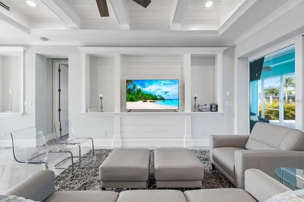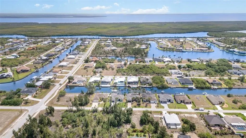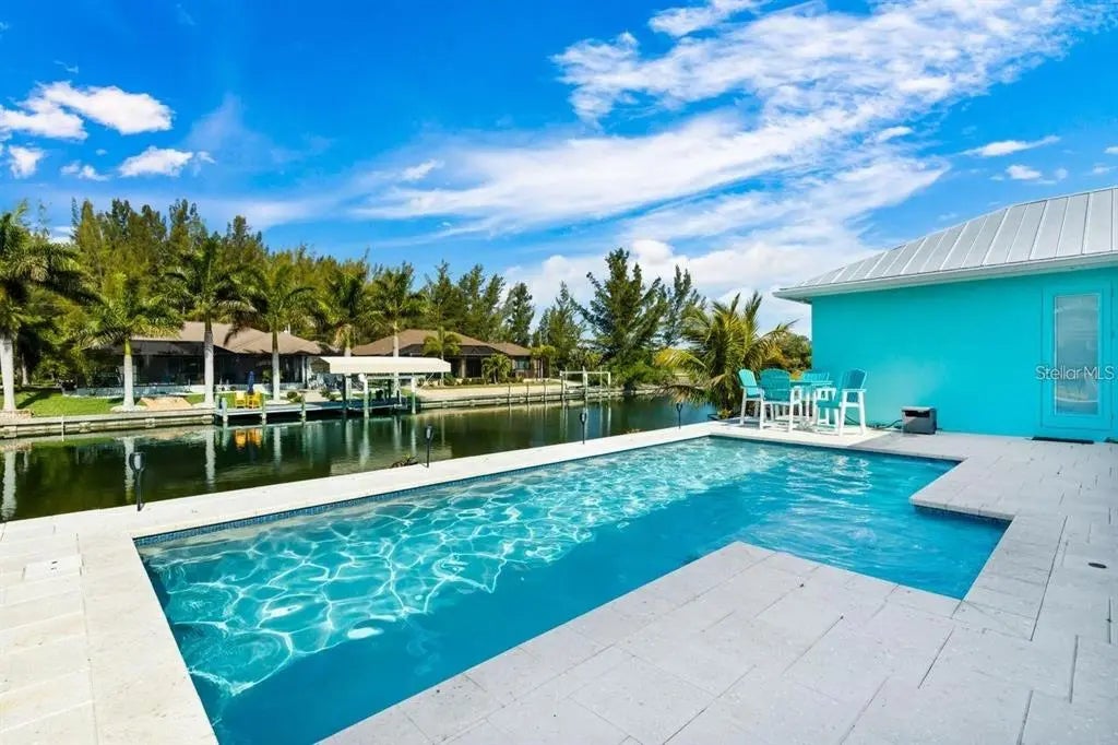 Welcome to your dream coastal retreat in the highly desirable boating community of South Gulf Cove. This immaculate, fully renovated 3-bedroom, 3-bath waterfront home is being sold fully furnished and turn-key—ready for immediate move-in or rental income. Designed with an open-concept layout, the home features soaring ceilings, elegant, coffered details, custom woodwork, crown molding, soffit lighting, and premium ceiling fans throughout. The gourmet kitchen is a chef’s delight, equipped with stainless steel appliances, an induction cooktop, wine refrigerator, tile backsplash, and an oversized island perfect for entertaining and family gatherings. The spacious master suite offers dual walk-in closets and convenient bedside USB charging ports, while the luxurious en-suite bath boasts dual shower heads, Roman tile, and built-in seating for a spa-like experience. A versatile den or office space is located just off the kitchen, ideal for remote work or accommodating guests. Step outside through pocket sliding glass doors to a screened-in lanai overlooking a serene saltwater pool and canal. A paver walkway leads to a stunning 42x14 tiered waterfront sun deck, perfect for relaxing or enjoying sunset views. The home also features a durable metal roof, hurricane shutters, and a circular paver driveway for added curb appeal and peace of mind. Boaters will appreciate direct access to the Myakka River and the Gulf of Mexico with no bridges, making this a true waterfront paradise. Located just minutes from world-class fishing, championship golf courses, pristine Gulf beaches, shopping, and fine dining, this property offers the ultimate Florida lifestyle. All furniture and appliances convey with the sale, and the home has a strong rental history with proven income potential. Security cameras are installed and operational, and all measurements are approximate.