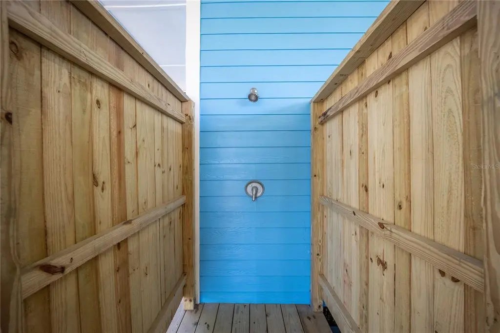 - Exterior FeaturesLighting, Outdoor Shower, Sliding Doors, Storage
