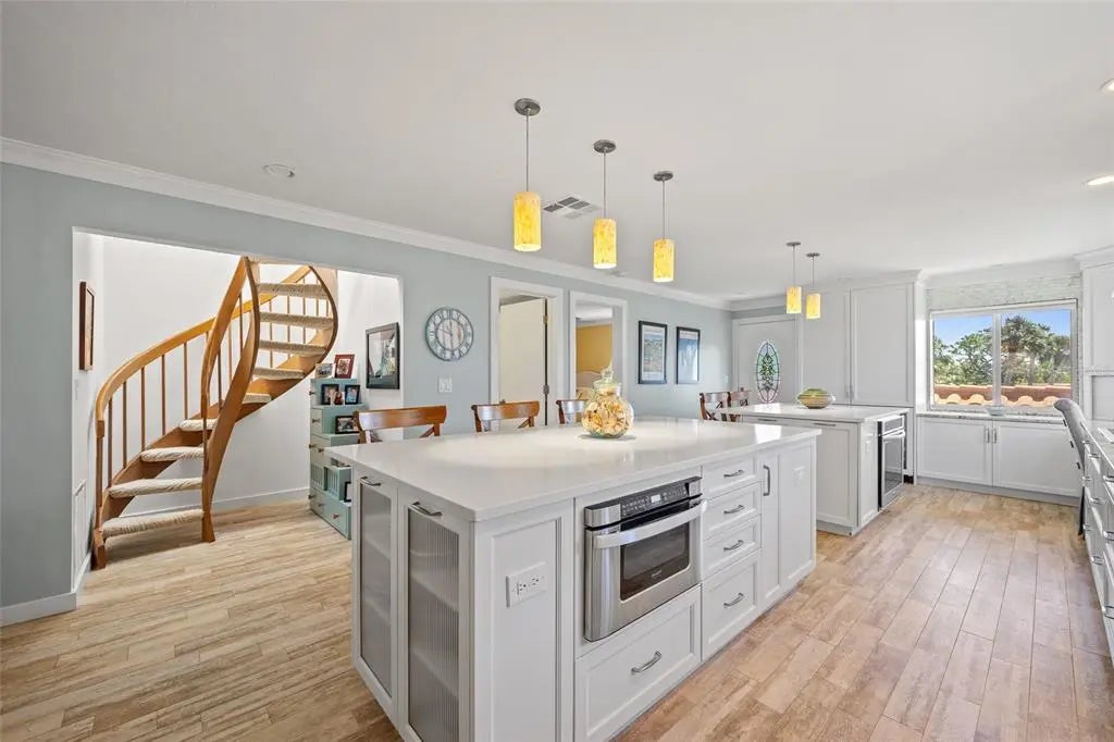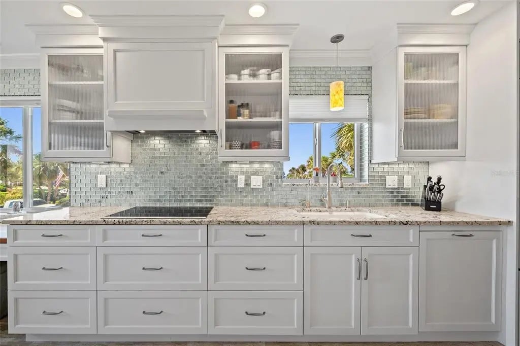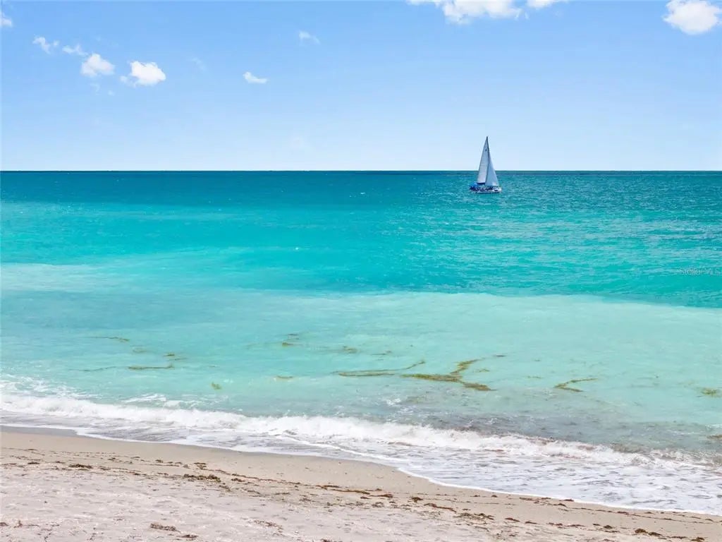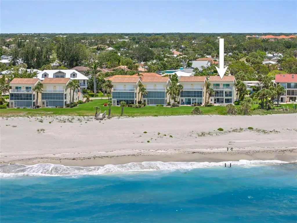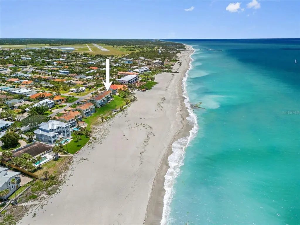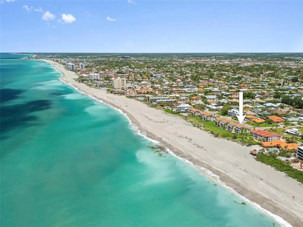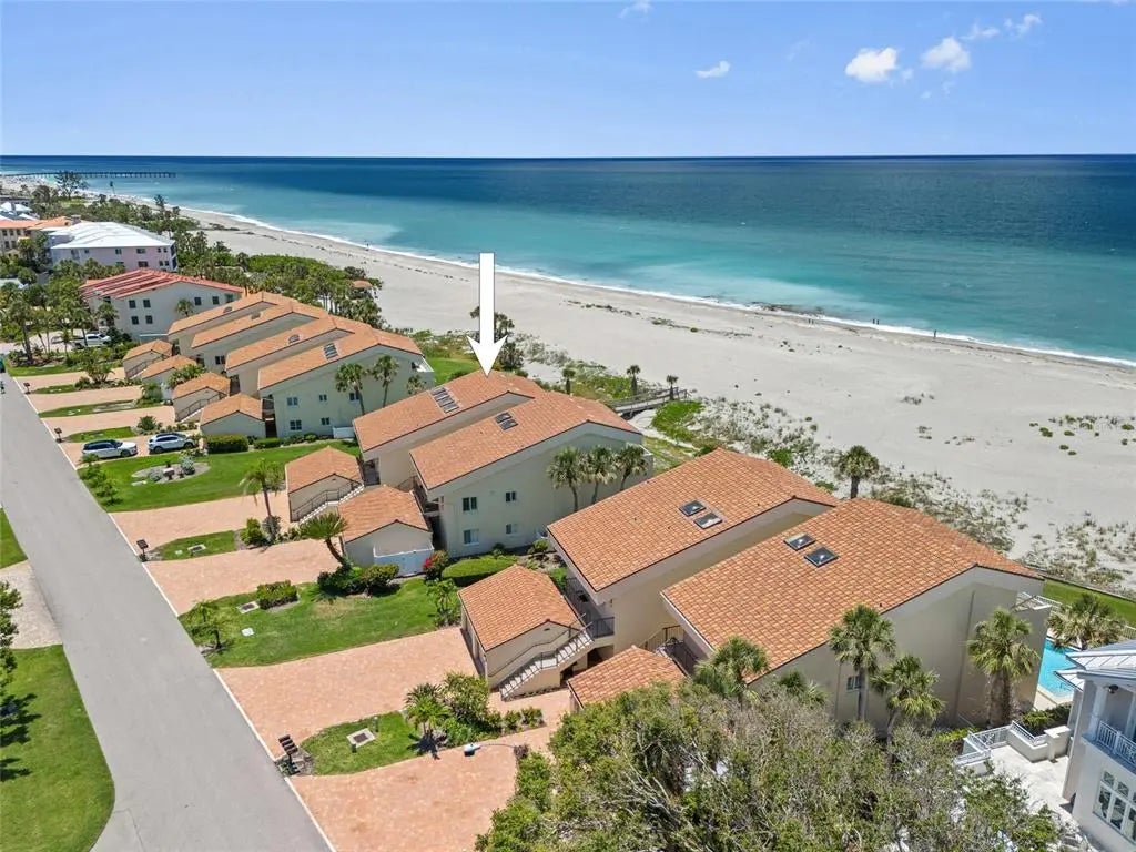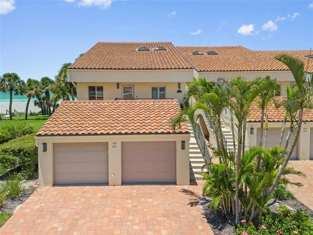 Under contract-accepting backup offers. RARE FIND! STUNNING BEACHFRONT 3 BEDROOM, 3 BATH, 1 CAR GARAGE TOWNHOME ON VENICE ISLAND! Just steps to the beach plus enjoy breathtaking Southwest Florida sunsets from two west-facing lanais. This beautiful home features 2 levels and 2,156 square feet of living space that has been meticulously updated to blend modern luxury with ultimate views! The open floor plan is accentuated by contemporary lighting and decor featuring newer light fixtures, crown molding, white cabinetry, exquisite tile backsplash and granite countertops. The gourmet kitchen is a dream with two large center islands perfect for entertaining. Gather in the family room with its amazing water views or retreat to the generous primary suite upstairs, which offers lanai access, great room, large walk-in closet, and luxurious bath with dual sinks and tiled walk-in shower. The split floor plan ensures privacy with two additional bedrooms each with their own en-suite full bath perfect for hosting guests. Step outside to either lanai where you can enjoy the lush landscaping and breathtaking beach views. Additional features include a laundry closet, porcelain tile on main floor, spiral staircase, hurricane shutters, exceptionally managed association plus no structural damage from recent storms. Fantastic location minutes from downtown Venice with fine dining, shopping, entertainment plus much more. Enjoy biking, fishing, boating and strolling on the beach for sharks teeth! Experience luxury living at its finest and schedule your private showing today!