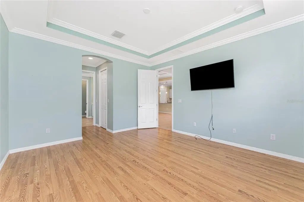 - Interior FeaturesCeiling Fan(s), Crown Molding, High Ceilings, Living Room/Dining Room Combo, Open Floorplan, Primary Bedroom Main Floor, Solid Wood Cabinets, Stone Counters, Tray Ceiling(s), Vaulted Ceiling(s), Walk-In Closet(s), Window Treatments