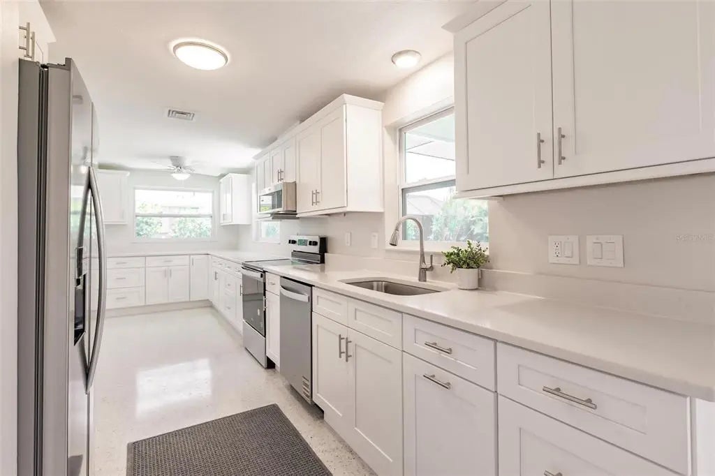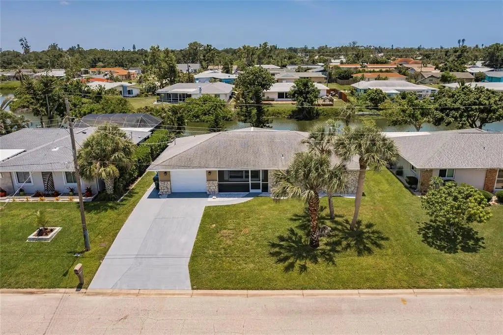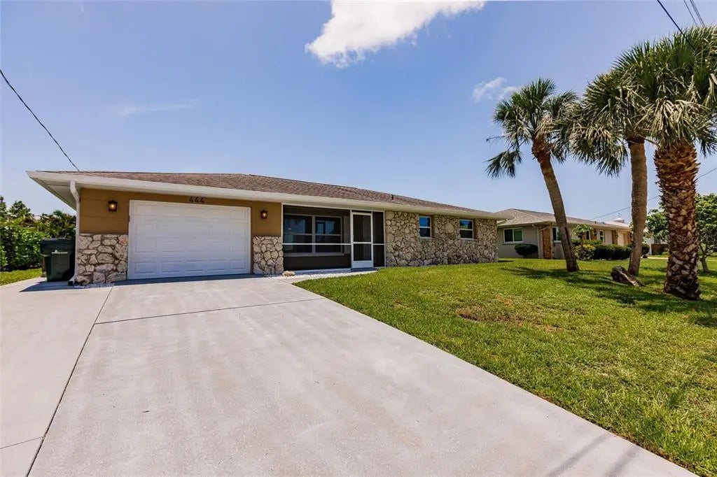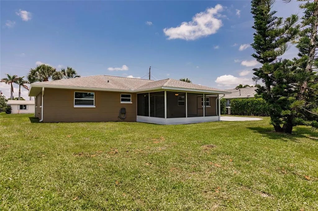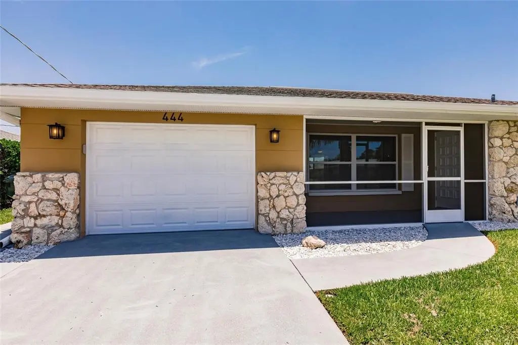 Step into this beautifully remodeled 2-bedroom, 2-bathroom home with 1,944 square feet of thoughtfully designed living space and a 1-car garage, just 10 minutes from the beach. You’ll want to bring your kayaks and paddle boards to enjoy the sunny Florida weather from your very own backyard, freshwater canal. Best of all, this property is located in an X flood zone, so flood insurance is not required, providing additional savings. Fully painted inside and out, this home boasts all-new hurricane windows, electric, lighting, and door locks, offering both style and peace of mind. Inside, the bright and open layout of the living and dining areas is enhanced by large windows that fill the space with natural light. The completely updated kitchen features upgraded stainless steel appliances, a garbage disposal, quartz countertops, spacious, slow-closing cabinetry with a pantry, and plenty of counter and cabinet space for cooking, entertaining, and storage. The spacious primary suite offers a walk-in closet and a luxurious en-suite bathroom with a brand-new walk-in shower. The second bedroom also includes a generous walk-in closet and access to another fully renovated bathroom. The garage includes a built-in workbench, sink, and washer/dryer hookup—perfect for projects or additional utility space. From the dining room, step into the screened Florida room and out onto the spacious patio with tranquil views of the freshwater canal. Additional upgrades include a state-of-the-art Bluetooth-enabled sprinkler system and fresh sod, as well as added foundation foam insulation—all backed by transferable guarantees for added value and peace of mind. This fully remodeled home offers the perfect blend of modern comfort, quality upgrades, and serene outdoor living.