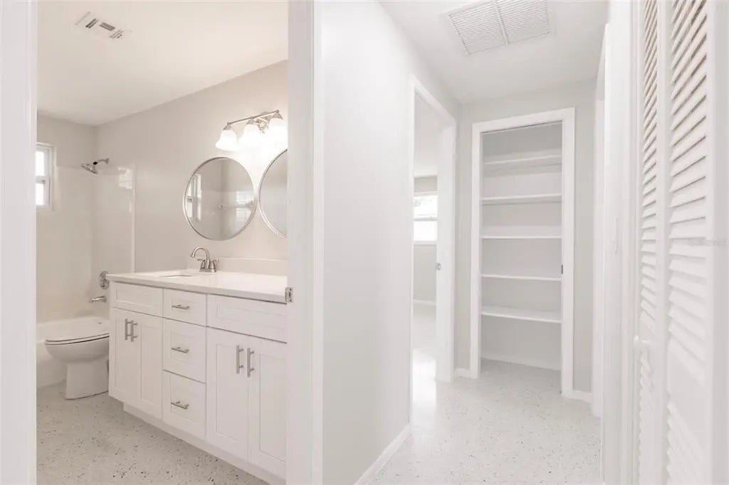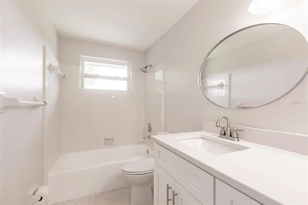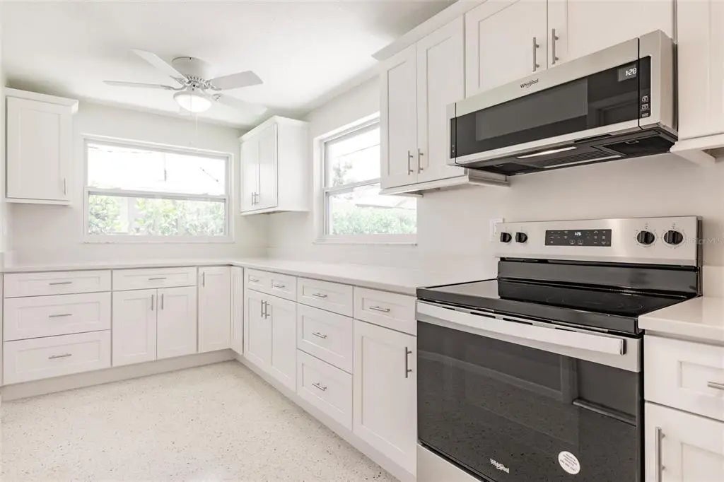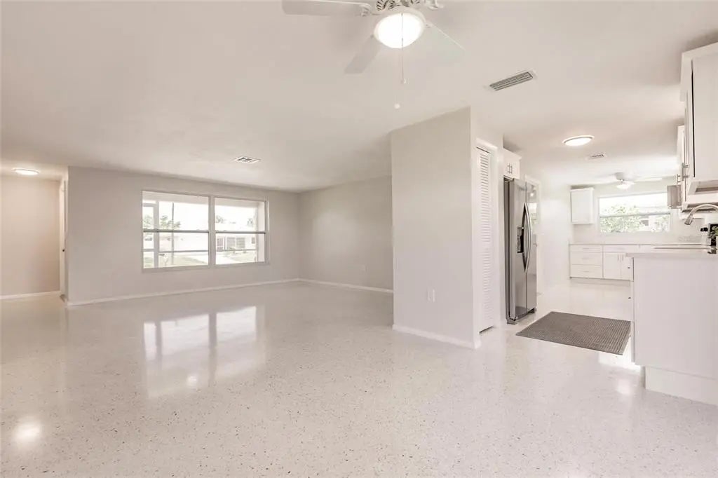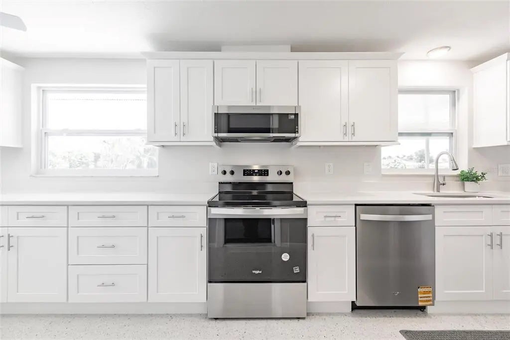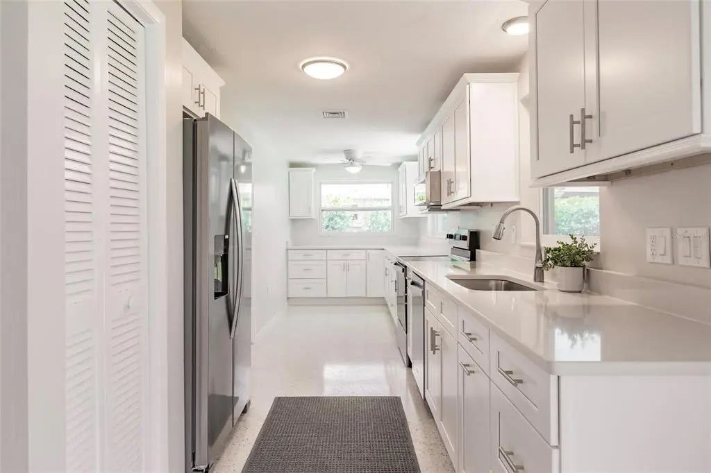 Step into this beautifully remodeled 2-bedroom, 2-bathroom home with 1,944 square feet of thoughtfully designed living space and a 1-car garage, just 10 minutes from the beach. You’ll want to bring your kayaks and paddle boards to enjoy the sunny Florida weather from your very own backyard, freshwater canal. Best of all, this property is located in an X flood zone, so flood insurance is not required, providing additional savings. Fully painted inside and out, this home boasts all-new hurricane windows, electric, lighting, and door locks, offering both style and peace of mind. Inside, the bright and open layout of the living and dining areas is enhanced by large windows that fill the space with natural light. The completely updated kitchen features upgraded stainless steel appliances, a garbage disposal, quartz countertops, spacious, slow-closing cabinetry with a pantry, and plenty of counter and cabinet space for cooking, entertaining, and storage. The spacious primary suite offers a walk-in closet and a luxurious en-suite bathroom with a brand-new walk-in shower. The second bedroom also includes a generous walk-in closet and access to another fully renovated bathroom. The garage includes a built-in workbench, sink, and washer/dryer hookup—perfect for projects or additional utility space. From the dining room, step into the screened Florida room and out onto the spacious patio with tranquil views of the freshwater canal. Additional upgrades include a state-of-the-art Bluetooth-enabled sprinkler system and fresh sod, as well as added foundation foam insulation—all backed by transferable guarantees for added value and peace of mind. This fully remodeled home offers the perfect blend of modern comfort, quality upgrades, and serene outdoor living.