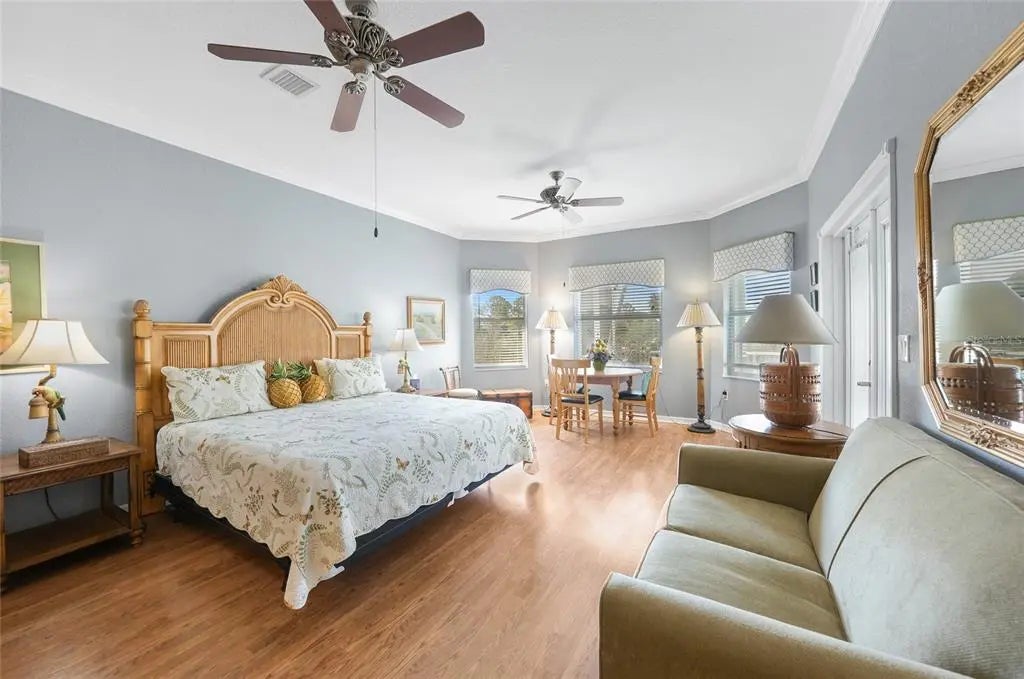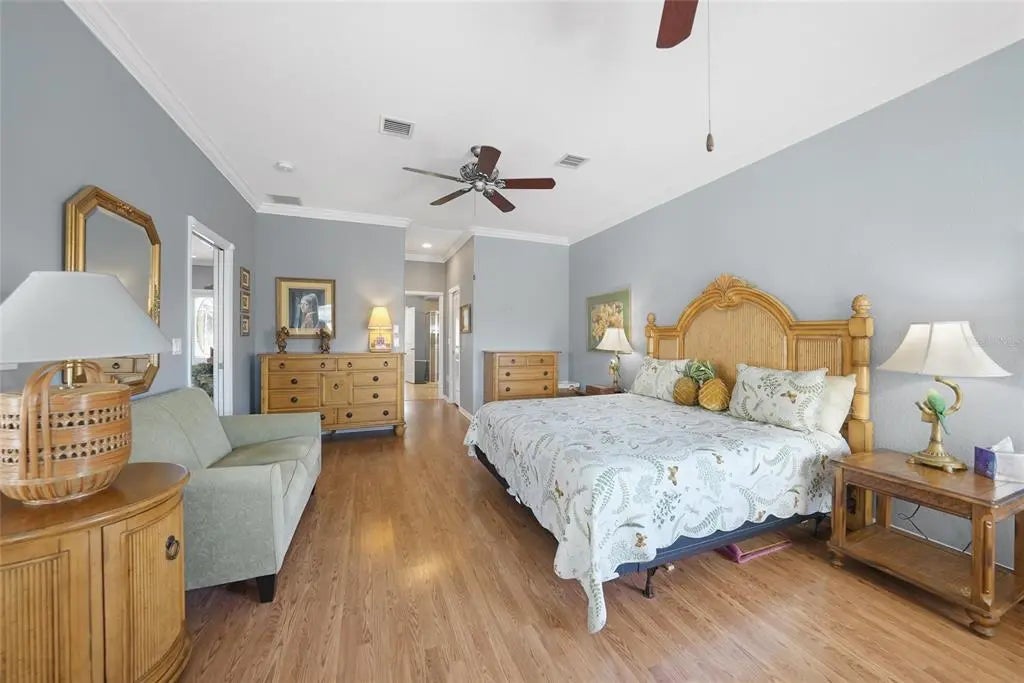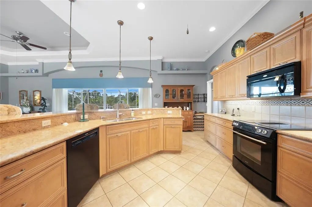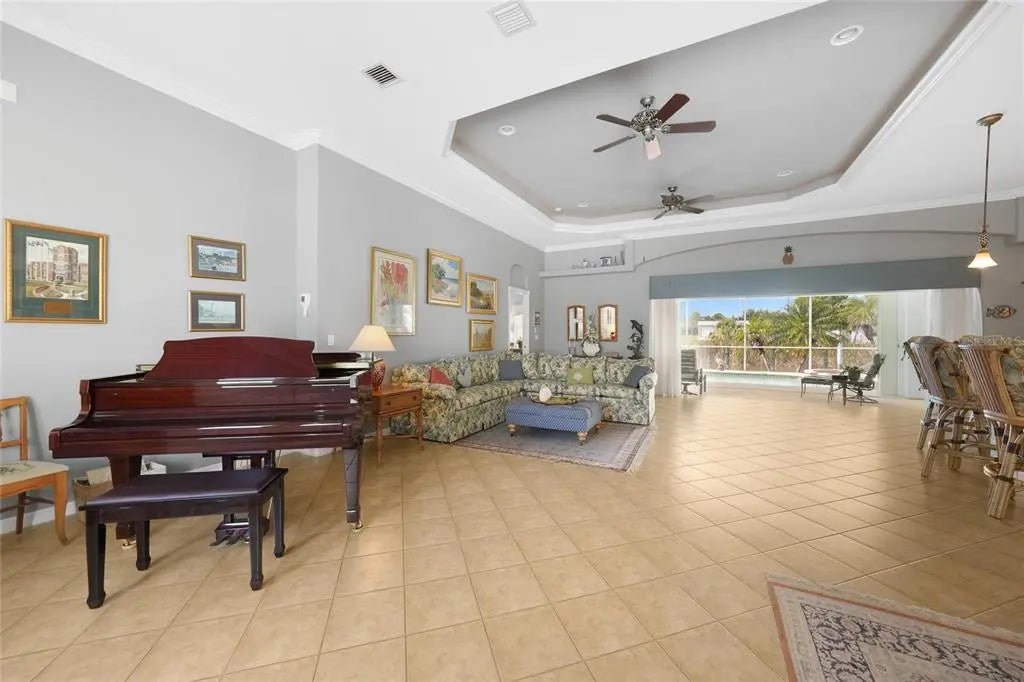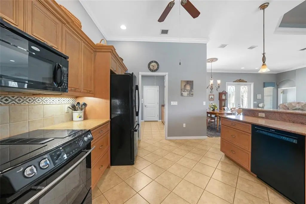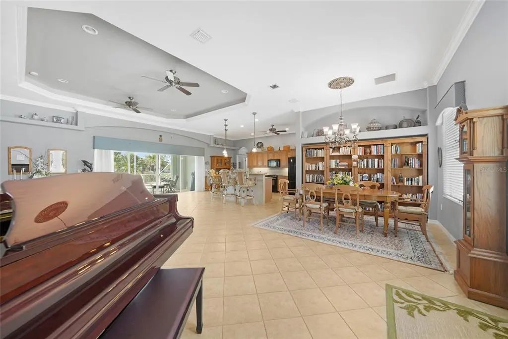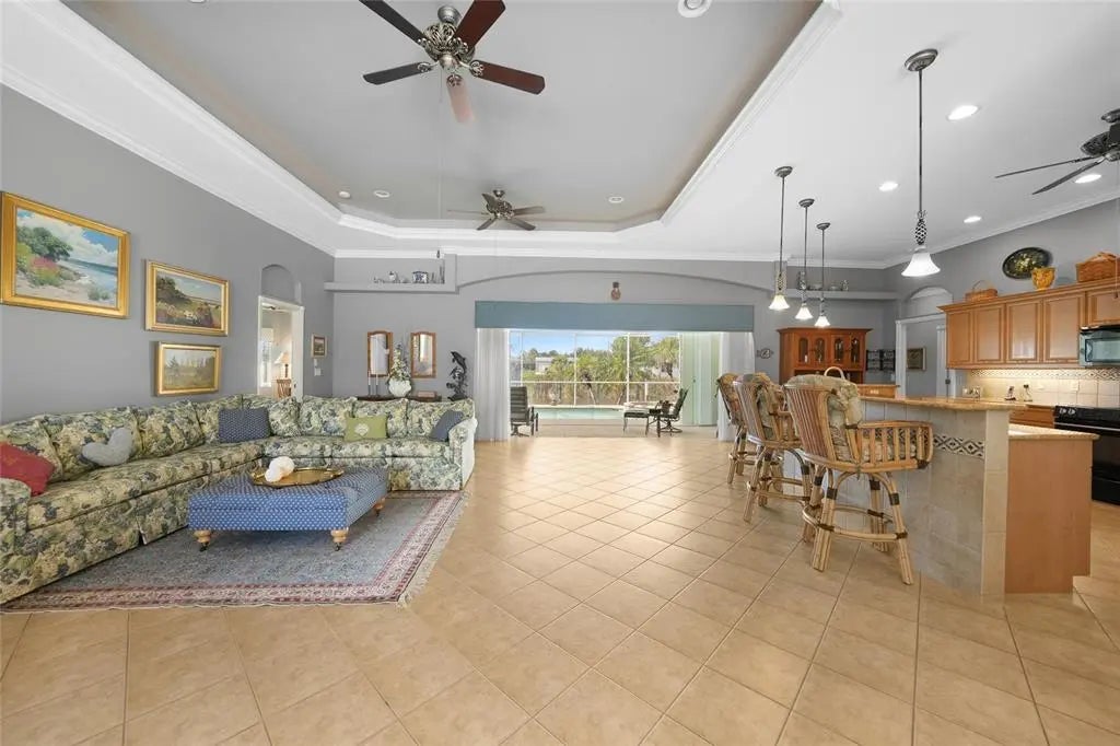 - Interior FeaturesAccessibility Features, Ceiling Fan(s), Central Vacuum, Crown Molding, Eating Space In Kitchen, High Ceilings, Kitchen/Family Room Combo, Living Room/Dining Room Combo, Open Floorplan, Pest Guard System, Solid Surface Counters, Split Bedroom, Stone Counters, Tray Ceiling(s), Walk-In Closet(s)
