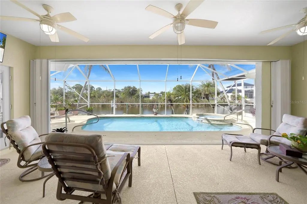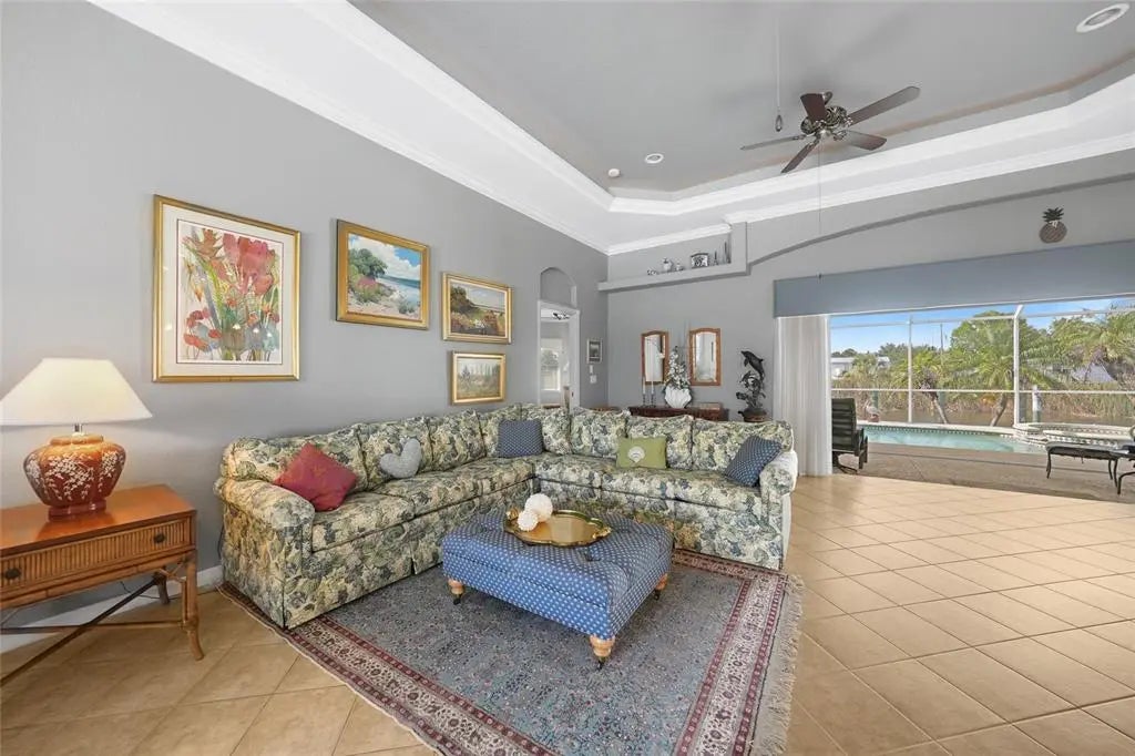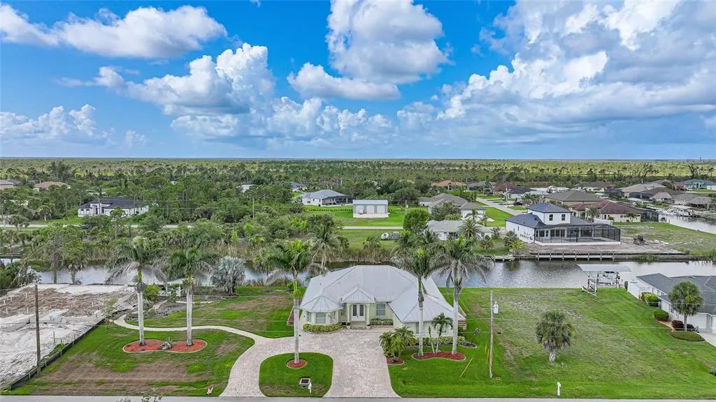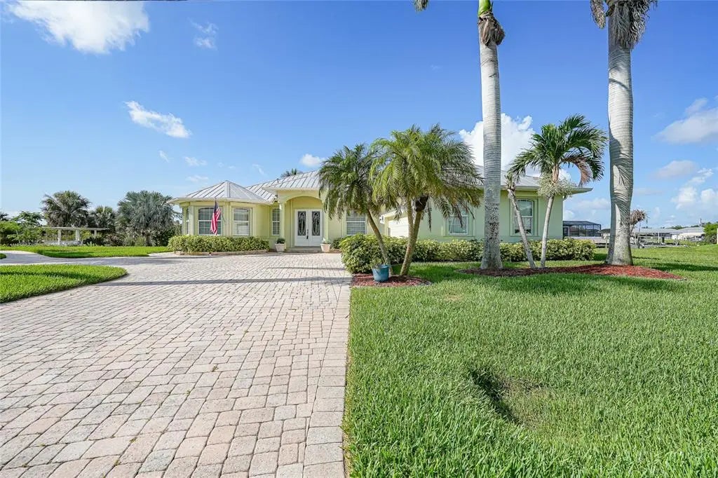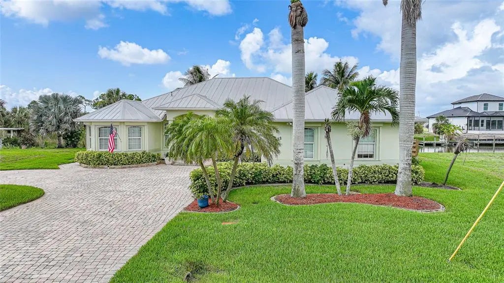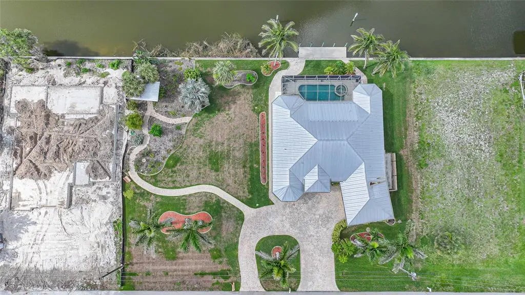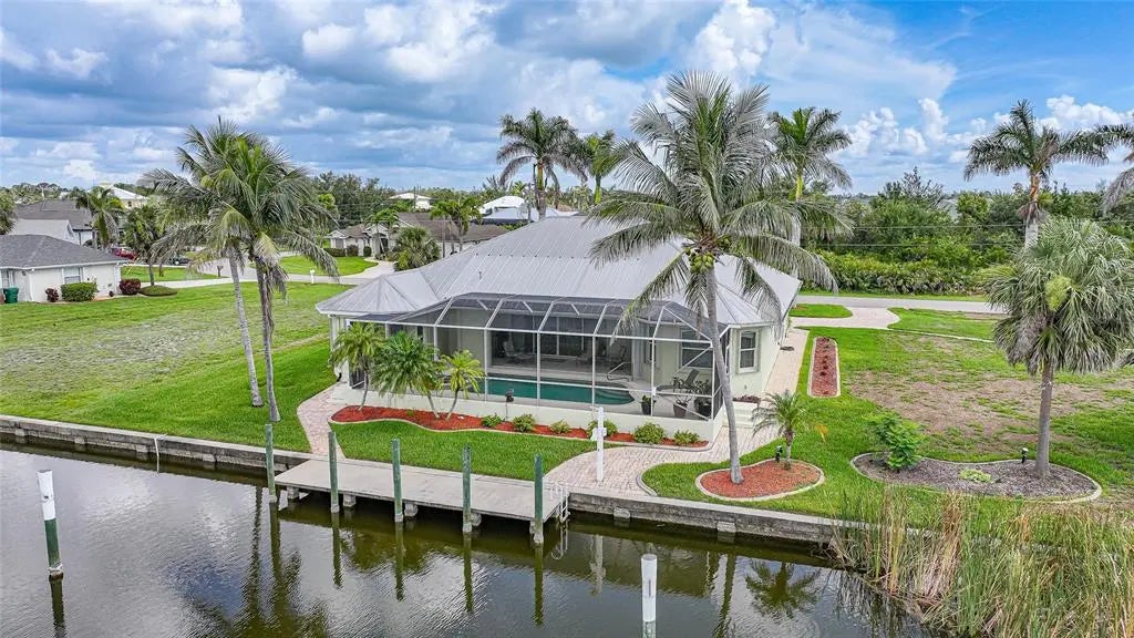 Waterfront Elegance with Sailboat Access & Private Oasis! Home priced well under recently appraised value. Tucked away in the highly sought-after South Gulf Cove boating community, this exceptional waterfront estate blends timeless elegance with modern sophistication. With an impressive 160 feet of sailboat-access waterfront, this home offers direct, bridge-free passage to open water, making it a true haven for yachting and boating enthusiasts. Every inch of this custom-built residence exudes quality and refinement. From the stately metal roof to the foam-insulated roofing system, no detail has been overlooked. Inside, you’ll find a beautifully appointed interior with granite countertops, crown molding, and a thoughtfully designed Jack and Jill-style primary suite—complete with dual sinks and access to the spacious den or dressing lounge—perfect for unwinding in your own sanctuary. A whole-house Generac generator, upgraded HVAC, high-efficiency water heater, and central vacuum system add practical luxury, while the home’s flood-free record ensures peace of mind even through Florida’s most intense storms. Outdoors, indulge in resort-style living with a sparkling pool, a waterfall-edge spa, outside access pool bath and a lush extra lot featuring a custom-designed gazebo accessed via an expansive pavered horseshoe driveway and a wide, elegant walkway. The spacious grounds offer plenty of room for your own personalized landscaping vision, allowing you to create a tropical paradise that reflects your style. The oversized garage includes a dedicated workshop space, ideal for hobbyists or craftsmen seeking functionality without compromising luxury. Located just minutes from the Gulf of Mexico, Boca Grande, and Englewood Beach, this home also provides easy access to Port Charlotte’s vibrant dining and shopping, as well as championship golf courses, nature preserves, and top-tier fishing destinations. Whether you’re entertaining guests or seeking tranquil waterfront serenity, this home delivers the ultimate Florida lifestyle with grace and grandeur. Your private waterfront masterpiece awaits—schedule your private tour today.