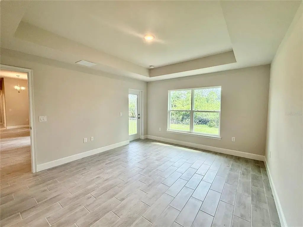 - Interior FeaturesHigh Ceilings, In Wall Pest System, Open Floorplan, Tray Ceiling(s), Walk-In Closet(s)