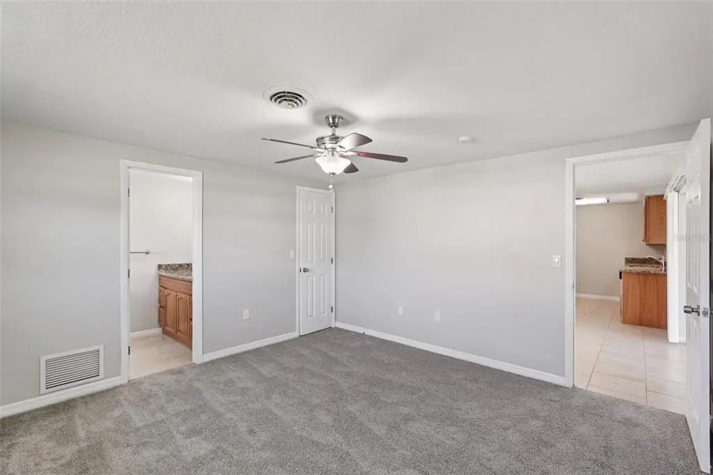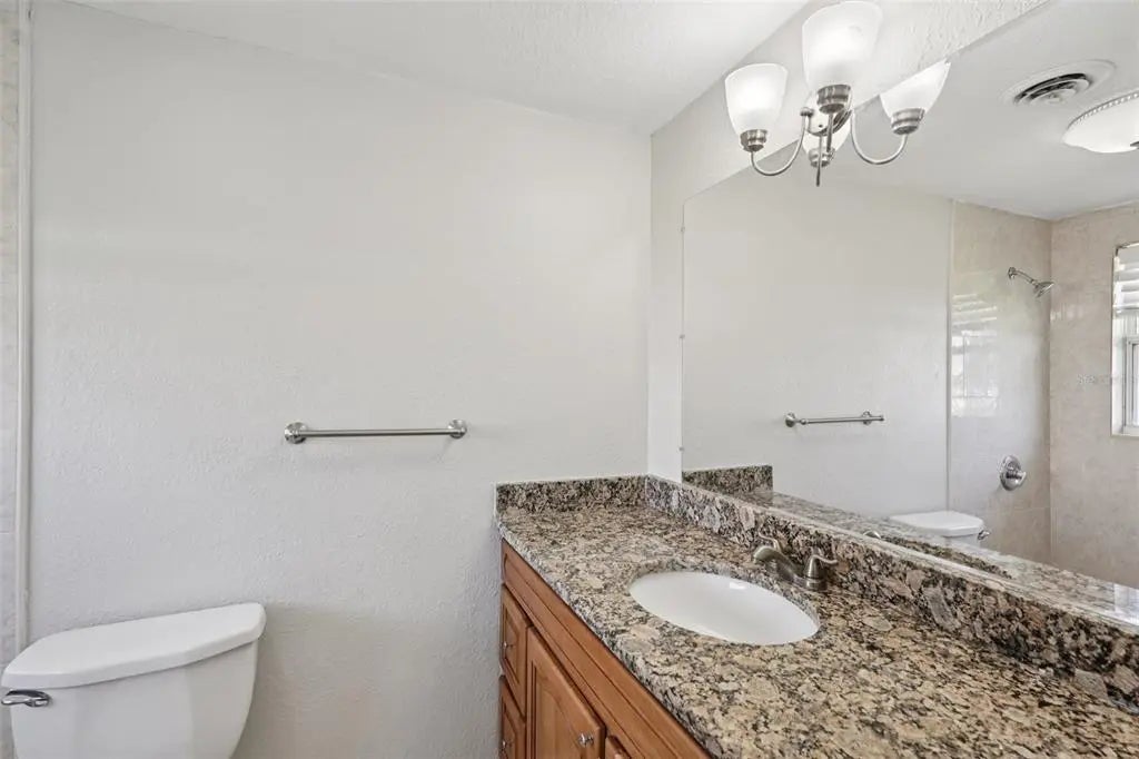 - Interior FeaturesCeiling Fan(s), Living Room/Dining Room Combo, Solid Wood Cabinets, Split Bedroom, Stone Counters, Window Treatments